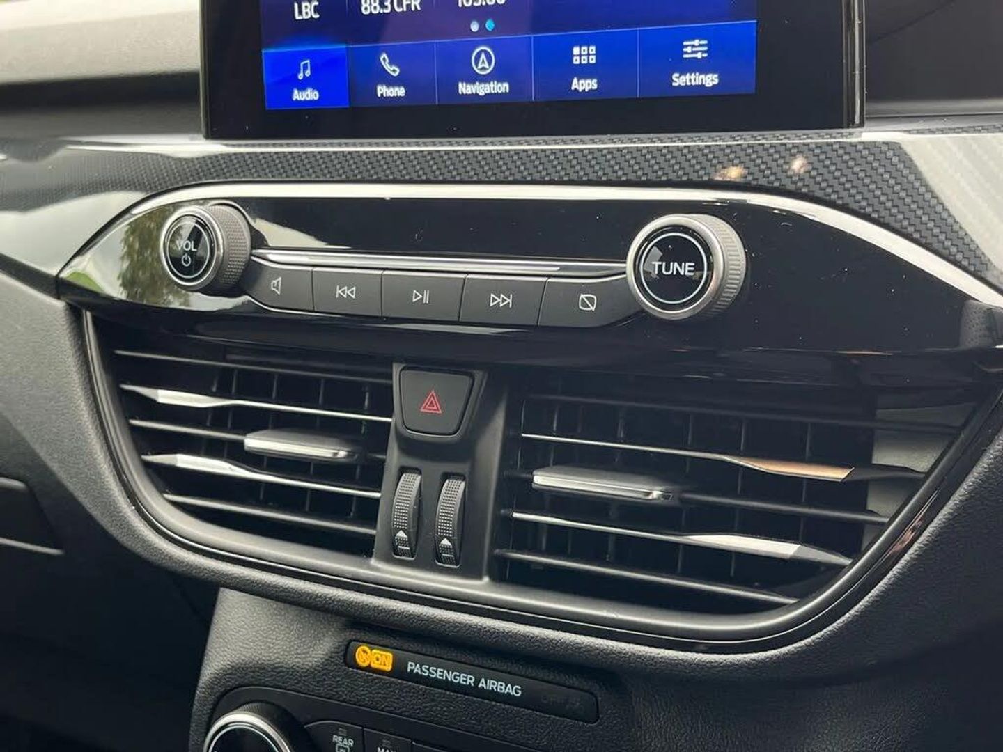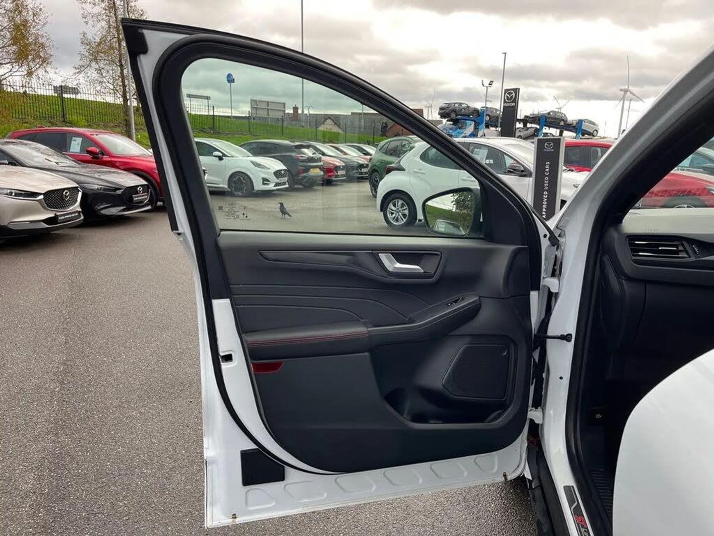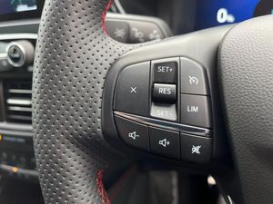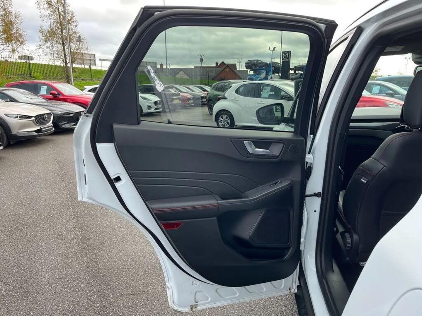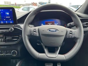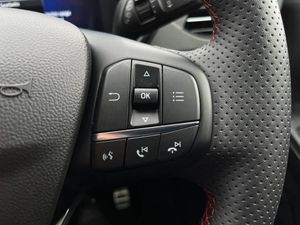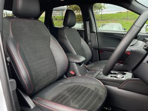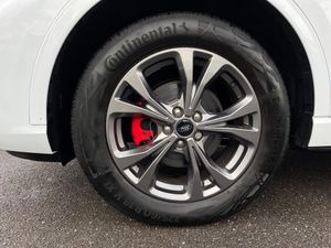 12.3" digital colour instrument cluster,Ford easy fuel,Ford SYNC 3 with 8" TFT LCD touchscreen, App Link, andriod auto/apple carPlay, emergency assistance and navigation with Ford pass connect,Front and rear parking sensors,Geo awareness,Hands free power tailgate,Lane keeping aid with lane departure warning,Power assist steering,Rear view camera,Selectable drive modes,Service interval indicator,3-Pin Home charge cable (230V/16A Domestic socket),3.7 kW monophase on board charger,Sports suspension,Twist beam rear suspension,B&O premium audio system with 10 speakers and subwoofer, 2 USB ports, DAB radio/CD,Auto headlamps with high and low beam,Black roof rails,Body colour bumpers,Day/night rear view mirror,Front LED fog lamps,Large rear roof spoiler,LED daytime running lights,LED rear lights,Power folding, electrically adjustable and heated door mirrors with puddle lights,Power front/rear windows with global close,Quickclear heated windscreen,Rain sensing wipers,Rear privacy glass,Rear side wing doors,Rear wiper,ST Line body styling kit with unique front and rear fascia and bumper, rear painted diffuser, front painted skid plates, dark mesh upper grille,ST Line front scuff plates,Third brake light,Twin exhausts,2nd row sliding seats with 60:40 split,Alloy pedals,Centre console with electronic parking brake,Dark headlining and pillars,Electronic automatic temperature control (EATC),Flat bottomed leather steering wheel in sensico with red stitching,Front and rear head restraints,Partial premium touch Sensico with black cloth inserts and red stitching,Rear centre head restraint,Single front passenger seat,Sports seats,ST Line front and rear floor mats,3x3 point rear seatbelts,Airbags - front driver/passenger, front and rear curtain,Drivers knee airbag,Electronic stability control (ESC) and ABS,Ford MyKey Gen 2 safety system,Manual child proof rear door locks,Post collision braking,Pre collision assist with autonomous emergency braking,Rear seat Occupancy alert,Red brake calipers,Tyre pressure monitoring system,Engine immobiliser,Keyless entry and Ford power start button (Keyless start),Locking wheel nuts,Remote powered central double locking doors,Thatcham category 1 alarm,Frozen White