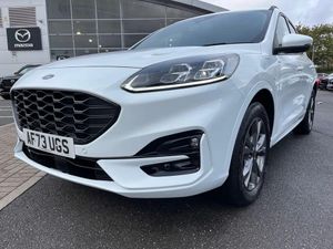 Sat Nav, Touchscreen, Apple CarPlay/Android Auto, Parking Sensor, DAB, Puddle Lights, Automatic Wipers, Alloys, Advanced Safety, Keyless Entry;EX FORD MANAGEMENT CAR + 225bhp PLUG IN HYBRID + VERY LOW MILES + FORD WARRANTY ++ This stunning ST-Line Edition plug in hybrid has been supplied by Ford Motor Company and is an ex Ford Management car. It has covered only 7k miles and as you would expect with an ex management car, it is in excellent condition inside and out. It comes with a huge list of features, charging cable, and 2 keys. We will service the car prior to sale, and with 2yr/18k intervals, the next service will not be due until November 2027 or 25k miles, whichever comes first ++ The Kuga Plug-in Hybrid (PHEV) combines a battery powered electric motor with its 2.5-litre Duratec petrol engine delivering a combined power output of 225 PS, together with outstanding fuel economy and CO2 emissions figures of just 32g CO2/km (WLTP). For added peace of mind, the hybrid battery comes with an 8-year or 100,000 miles warranty (whichever comes first). A choice of electric vehicle (EV) modes means you can decide whether to run your Kuga PHEV on power from the electric motor, petrol engine or via a combination of both. When using the mode EV Now the plug-in hybrid can travel up to 35 miles on electric power only. So, you can make easy work of any terrain, while keeping your city driving clean, quiet and refined. Drivers of electric and plug-in hybrid Ford models can now access more than 16,000 charge points in the UK, via the brands BlueOval charging network. +++