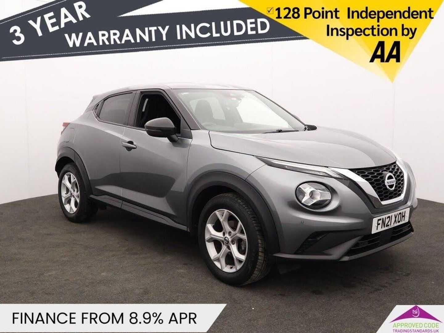 With only one previous owner and very low mileage for its age at 11082 miles, this 2021 Nissan Juke 1.0L Petrol DIG-T N-Connecta is a fantastic find. The N-Connecta trim comes equipped with an Intelligent Key with Start Push Button, including keyless entry for added convenience. Manoeuvring is made easy with the rear parking camera, which includes parking assistance. Stay comfortable with automatic air conditioning and climate control, and enjoy enhanced visibility with LED headlights. The vehicle is equipped with both Android Auto and Apple CarPlay, ensuring seamless smartphone integration. With it's valid MOT, this Euro 6 emission class vehicle is ready for the road. The fuel economy of 49 mpg and low CO2 emissions mean that this vehicle is more efficient than other similar vehicles. Oakwood Motor Company are an established family run dealership, home of the best used cars in Bury! We have hundreds of cars currently in stock from all your favourite brands including our specialist selection of Audi VW Group vehicles. Our fantastic rates are available on both HP and PCP finance, and we have extended warranties available for up to 3 years for complete peace of mind. Our experienced sales team are on hand to help you every step of the way, so give us a call today to reserve your new car with a refundable £100 deposit. Visit our used car dealership in Bury! We take all reasonable steps to ensure the accuracy of the information supplied in our advertising materials, however on occasion errors may occur. Images used are for illustrative purposes only. Please ensure you take the time to fully inspect your vehicle for specification/features which are important to you, and raise any queries with your Sales Executive.