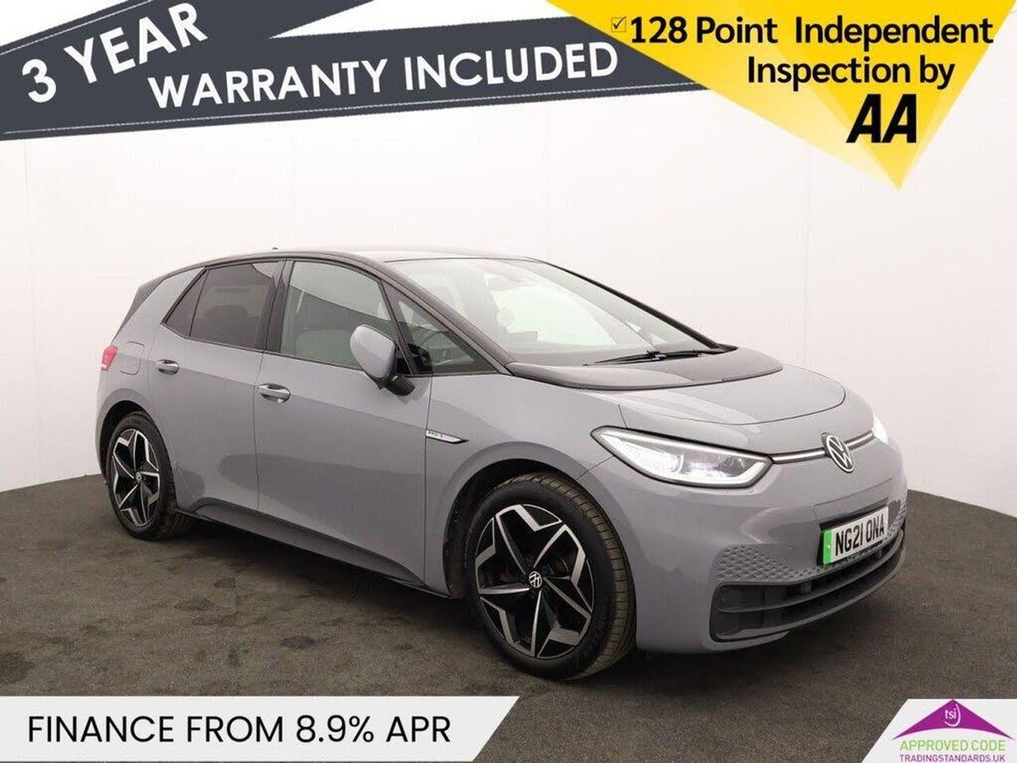 Oakwood Motor Company is proud to present this Volkswagen ID.3 Pro S 77kWh Tour, finished in Moonstone Grey with a contrasting Black Roof. This fully electric hatchback offers impressive range, advanced technology, and a sleek modern design. Equipped with a 10-inch infotainment system, DAB digital radio, Wireless App Connect, and the We Connect ID app, the ID.3 keeps you seamlessly connected. The digital dashboard, ID Light, and 10-colour interior ambient lighting create a high-tech and stylish driving experience. Featuring 19-inch Andoya alloy wheels, electric windows, and a heated rear window, this car is designed for both style and convenience. Comfort is enhanced with the Flow Art Velours interior and the Comfort Package Plus. For safety and assistance, it includes Adaptive Cruise Control with Front Assist, Lane Assist, Parking Sensors (front and rear), and the NCAP Pack with Forward Collision Warning and Pedestrian Protection. A fantastic electric vehicle with advanced features and a spacious interior. Contact our team today to arrange a viewing or test drive! Oakwood Motor Company are an established family run dealership, home of the best used cars in Bury! We have hundreds of cars currently in stock from all your favourite brands including our specialist selection of Audi VW Group vehicles. Our fantastic rates are available on both HP and PCP finance, and we have extended warranties available for up to 3 years for complete peace of mind. Our experienced sales team are on hand to help you every step of the way, so give us a call today to reserve your new car with a refundable £100 deposit. Visit our used car dealership in Bury! We take all reasonable steps to ensure the accuracy of the information supplied in our advertising materials, however on occasion errors may occur. Images used are for illustrative purposes only. Please ensure you take the time to fully inspect your vehicle for specification/features which are important to you, and raise any queries with your Sales Executive.