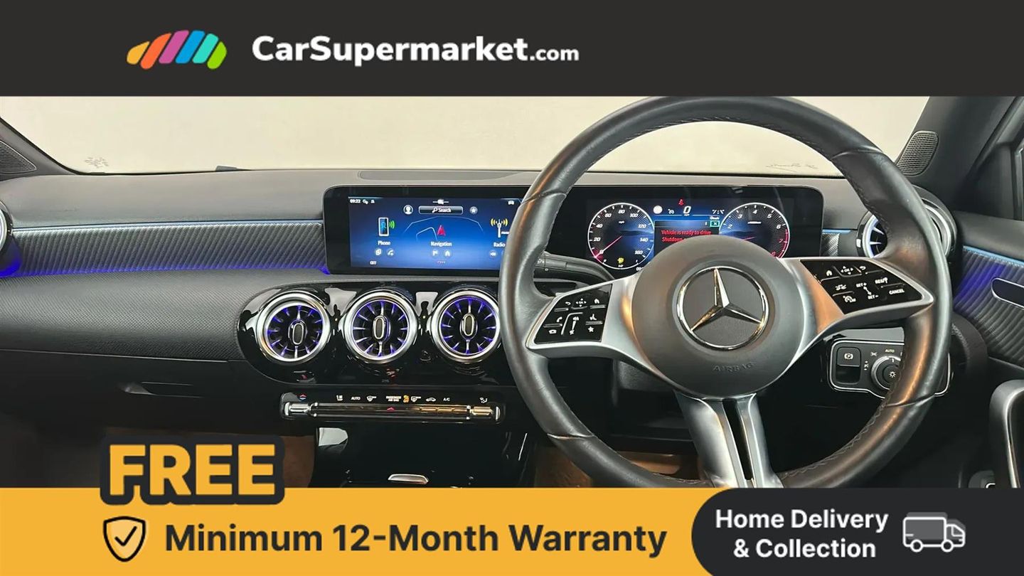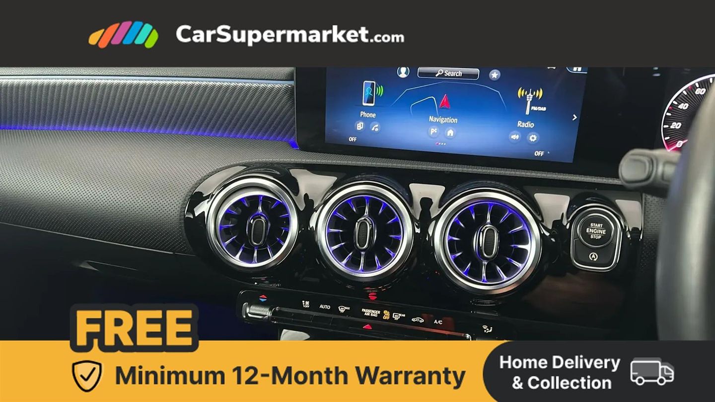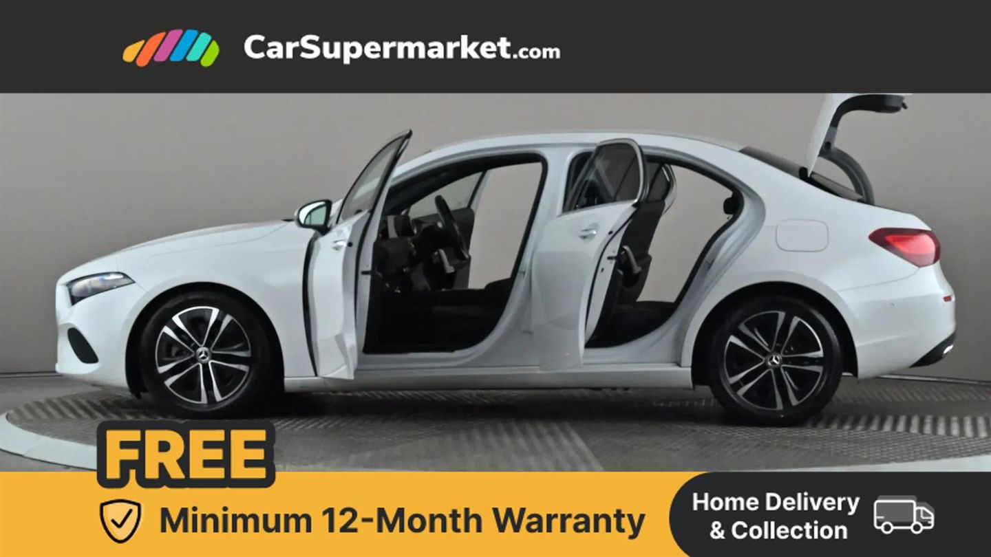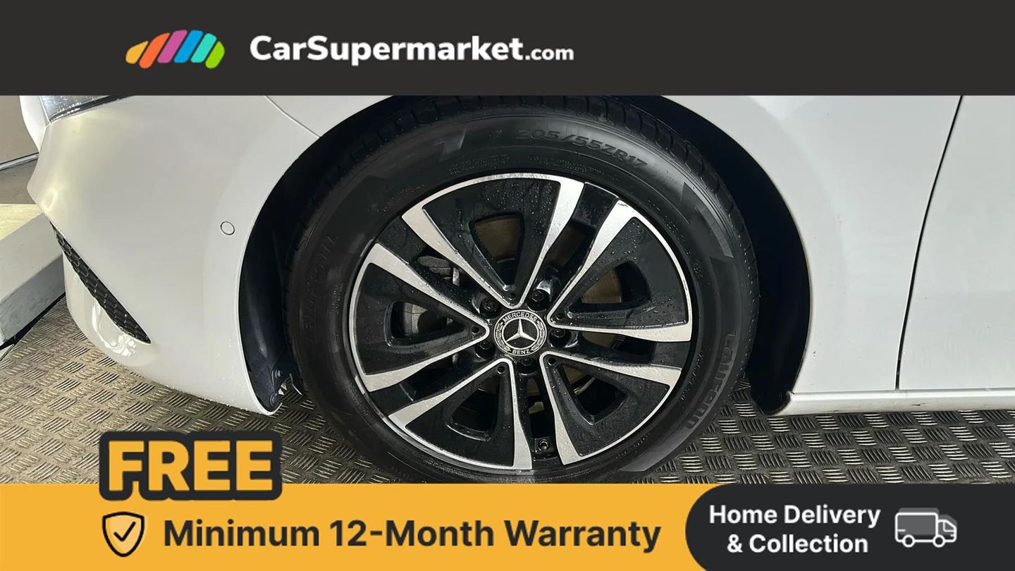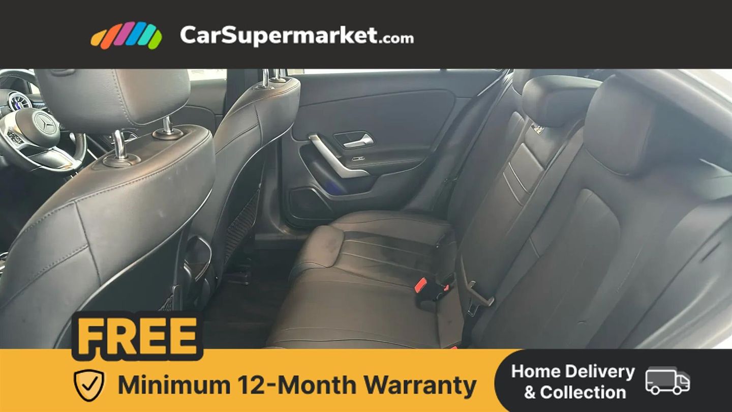 10.25 inch touchscreen central media display,10.25" Digital instrument cluster display screen,Attention assist,Brake pad wear indicator warning light,Car wash mode,Cruise control + speed limiter,Direct steering,Direction indicators with lane change function,Dual bluetooth interfaces,DYNAMIC SELECT with a choice of driving modes (ECO, Comfort, Sport and Individual),ECO start/stop function,Engine start/stop button,Fluid level warning indicator for fuel, oil, coolant and washer fluid,Hard-disk navigation,Hey Mercedes Voice activation,Lamp failure indicator,Lane keeping system,Mercedes me connect including emergency call system, accident recovery, breakdown and maintenance management,Mercedes me remote services,Outside temperature gauge,Owners manual in English,Pre-installation of private car share,Preinstallation for Mercedes Benz link,Remote boot closing,Service indicator (ASSYST),Speed limit assist,Speed sensitive power steering,Trip computer in multifunction display with current consumption indicator,Lowered comfort suspension,DAB Digital radio,MBUX multimedia system,Mercedes Benz sound system (100 W) with 6 speakers,4 Electric Front and Rear windows,Adaptive brake lights,Body colour bumpers,Body colour door handles with chrome inserts,Body colour side skirt,Body coloured door mirrors,Chrome beltline strips,Diamond radiator grille with pins in fine star pattern,Electric adjustable and heated door mirrors with integrated LED side indicators,Exhaust system with 2 visible tailpipe trim elements and rear apron,Headlamp assist automatic headlamp activation,Heat insulating dark tinted rear and rear side windows,Heated glass rear windscreen + timer control,LED High Performance headlamps including integral LED daytime running lamps and adaptive highbeam assist,LED tail lamp,Privacy glass,Radio aerial,Rain sensing windscreen wipers with two sensitivity settings,Rear boot,Rear fog lights,Rear side wing doors,Third brake light featuring LED technology,Window line trim strip in chrome,3 seat bench in 2nd row,3 spoke ARTICO man-made leather multifunction sports steering wheel,4 way lumbar support,40:20:40 split folding rear seats,Air conditioning - One zone thermatic automatic climate control with automatically controlled air distribution,Artico man-made leather upholstery,Automatic child seat recognition sensor,Black air vents with surround in silver chrome,Black roof lining,Front centre armrest with stowage,Front comfort seats with adjustable head restraints,Front door sills with Mercedes Benz lettering,Front seat backs luggage nets,Gearshift paddles on steering wheel,Height/reach adjustable steering column,Interior lighting - 64 colour Ambient lighting,Interior mirror with reading lamps in black and frameless,Rear armrest with 2 cupholders,Rear head restraints,Seat occupancy sensor for front passenger seat,Single front passenger seat,Stowage compartment in centre console with retractable cover,Sunvisors with illuminated vanity mirrors,Twin front cupholders,Keyless go comfort pack - A Class,Light and sight pack - A Class,Mirror package - A Class,Parking pack - A Class,Seat comfort pack - A Class,USB pack plus - A Class,3 rear 3 point seatbelts,ABS with Brake Assist,Active bonnet,Active brake assist includes forward collision warning system with autonomous braking,Adaptive brake assist with hold function and hill start assist,Black seatbelts,Bonnet with power domes,Childproof locks manually operated for rear doors and electrically operated for rear power windows,Crash responsive emergency lighting,Driver and passenger head and side airbags,Drivers knee airbag,Dual stage driver/passenger airbags,Electronic parking brake,ESP curve dynamic assist,ESP with ASR,Front and rear seatbelt reminder,ISOFIX and top tether child seat fixing points in two outer rear seats,Tyre pressure monitoring system,Warning triangle and first aid kit,Window airbags,Alarm system/interior protection/immobiliser,Guard 360 degree vehicle protection,Remote central locking and crash sensor with emergency opening function,Dark carbon fibre interior trim,17" 5 spoke light alloy wheels, aerodynamically optimised, painted in black with high sheen finish,Summer tyres,Tirefit sealant kit