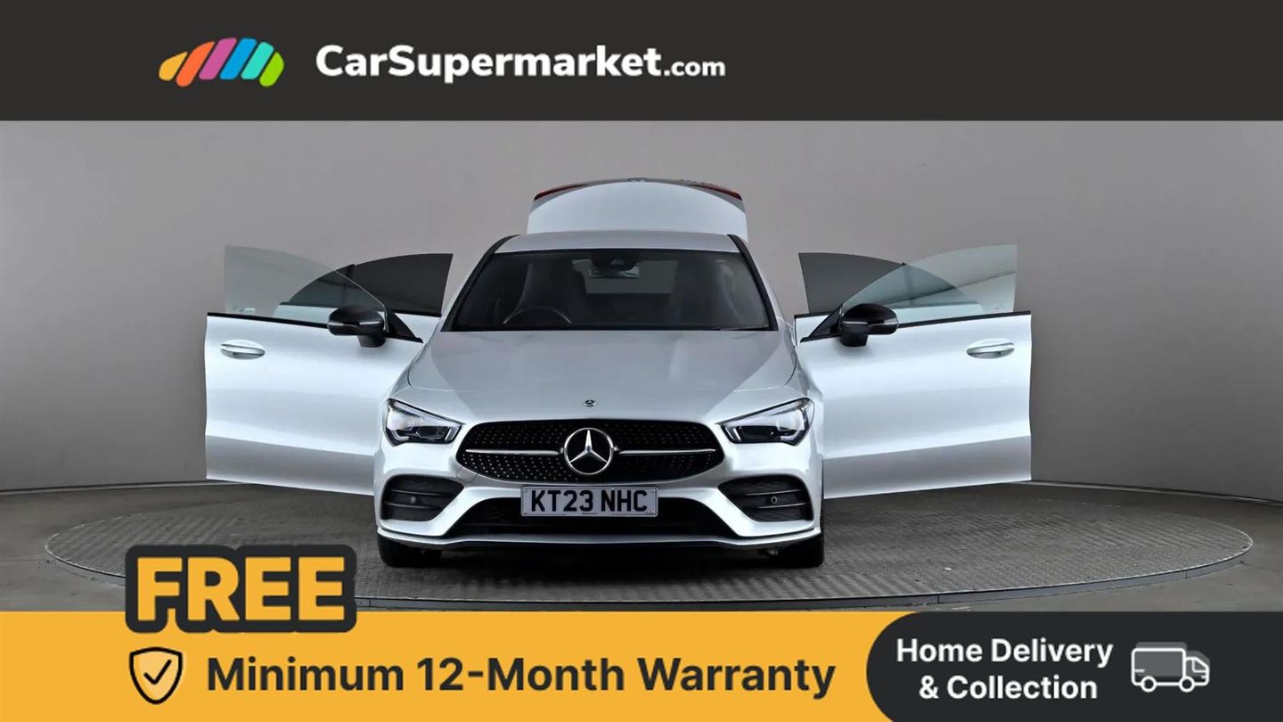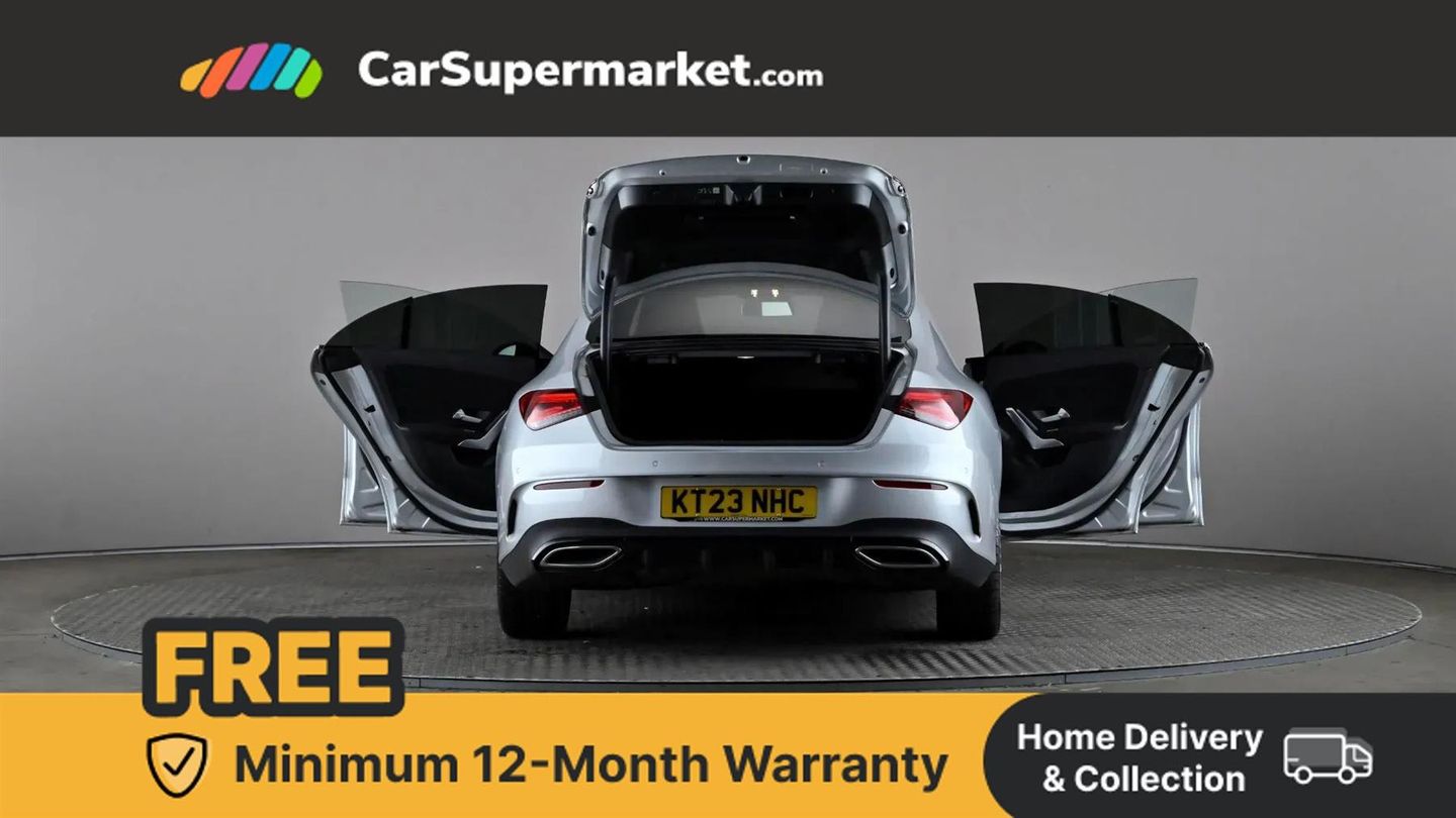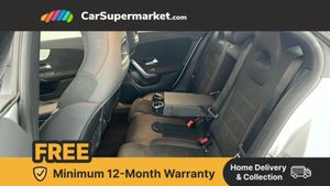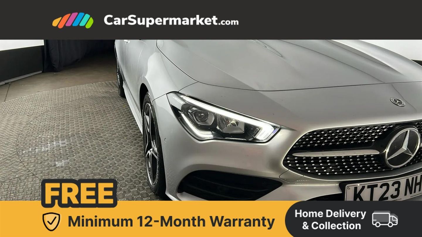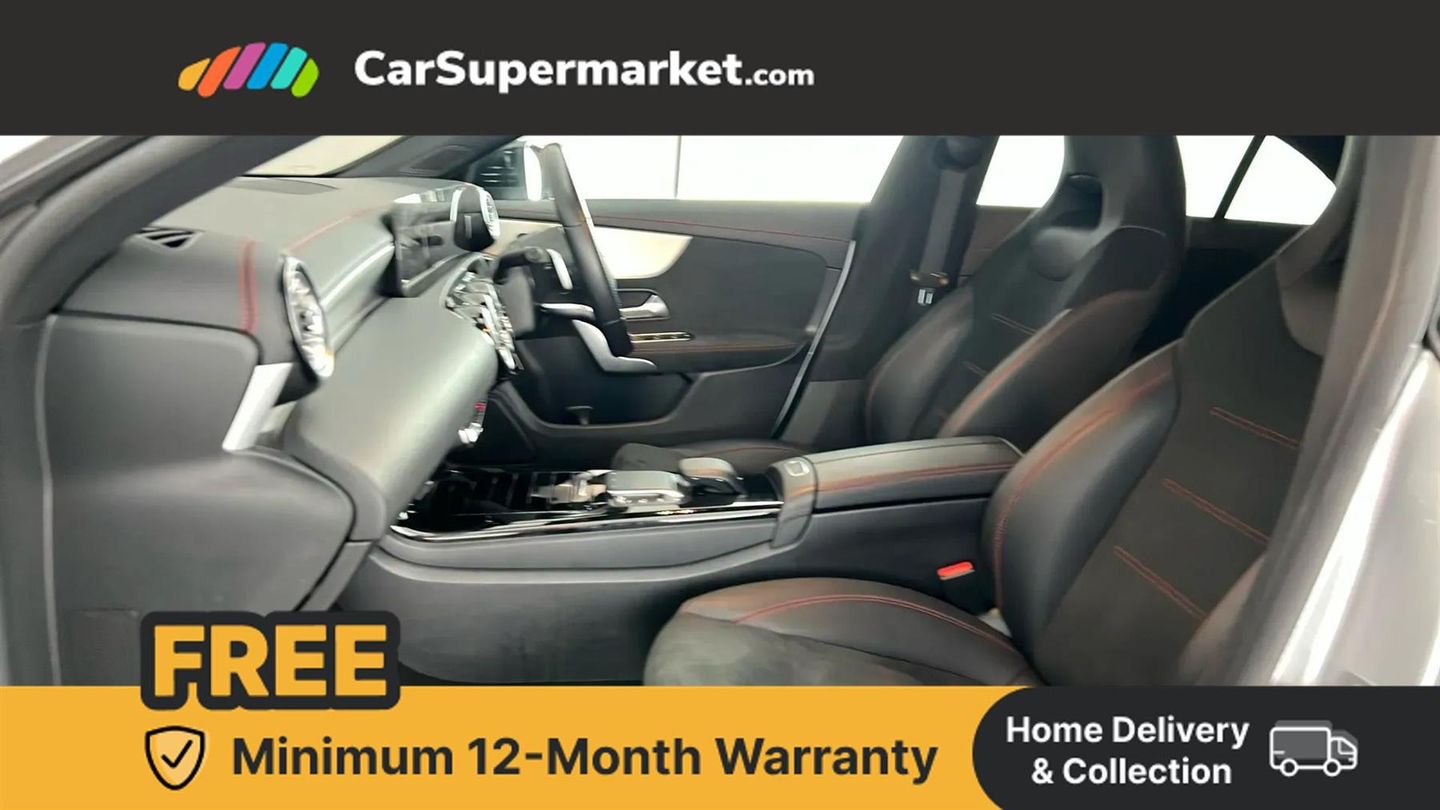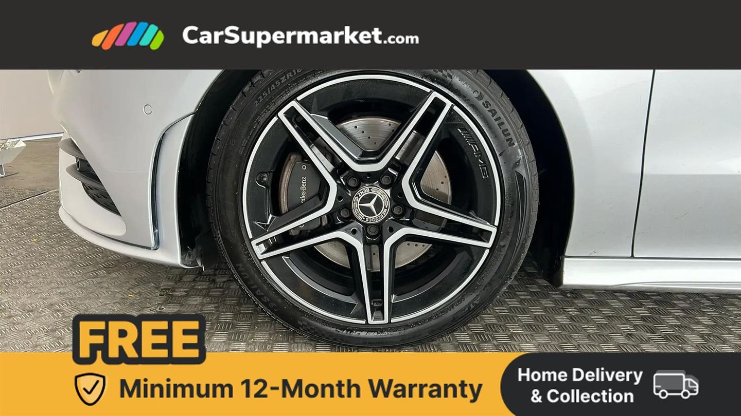 10.25 inch Instrument display with digital cockpit,10.25 inch touchscreen central media display,Active lane keeping assist,Attention assist - Monitors steering behaviour and long journey fatigue,Bluetooth connection,Car wash mode,Cruise control with limiter,Direct steer system with speed sensitive power steering,DYNAMIC SELECT with a choice of driving modes (ECO, Comfort, Sport and Individual),ECO start/stop function,Fluid level warning indicator for fuel, oil, coolant and washer fluid,Hard-disk navigation,Hey Mercedes Voice activation,Lamp failure indicator,Mercedes me connect including emergency call system, accident recovery, breakdown and maintenance management,Mercedes me remote services,Outside temperature gauge,Owners manual and service booklet in English,Pre-installation of private car share,Preinstallation for Mercedes Benz link,Radio aerial integrated into front and rear windshields,Service indicator (ASSYST),Smartphone integration with Apple CarPlay and Android auto,Speed limit assist,Trip computer in multifunction display with current consumption indicator,Lowered comfort suspension,Rear axle multi-link,DAB digital radio tuner,MBUX multimedia system,Mid-range sound system,USB (type C) ports (2) in stowage compartment and 1 in front of centre console,Adaptive brake lights,AMG body styling with AMG front apron and rear apron and visible exhaust tailpipe in chrome trim elements,AMG bodystyling side skirts,Body colour bumpers,Body colour door handles,Chrome beltline strips,Diamond radiator grille pins in chrome,Electric windows,Electrically adjustable and heated door mirrors with integrated LED indicators,Exhaust system with 2 Visible tailpipe trim elements and rear apron with trim in chrome,Headlamp assist automatic headlamp activation,Heated glass rear windscreen + timer control,High level LED third brake light,Interior mirror with black reading lamps and frameless,LED high performance headlamps with integrated LED daytime running lights,LED tail lamp,Privacy glass with dark tinting on rear side windows and rear window,Rain sensing windscreen wipers with two sensitivity settings,Rear boot,Rear fog lamp,Rear side wing doors,Variable front intermittent wipers,Window line trim strip in chrome,3 seat bench in 2nd row,3 spoke flattened bottom nappa leather multifunction steering wheel with perforated leather in grip area,40:20:40 split folding rear seat backrests,Air conditioning - Two zone thermotronic luxury automatic climate control with display,Air vents with surround in silver chrome,Artico man-made leather upholstery,Automatic child seat recognition sensor,Black roof lining,Brushed stainless steel sports pedals with rubber studs,Front centre armrest with stowage,Galvanished gear shift paddles on steering wheel,Heated front seats,Illuminated front door sills with changeable cover,Illuminated glove compartment stowage,Interior lighting - 64 colour Ambient lighting,Luggage net on driver/front passenger seat backrest,Manually adjustable front seats,Manually height and reach adjustable steering column,Rear armrest with two integral cup holders for drinks,Rear head restraints,Single front passenger seat,Sport seats with fixed head restraints,Stowage compartment in centre console with retractable cover,Sunvisors with illuminated vanity mirrors,Touchpad on center console,Twin front cupholders,Two outer rear seat isofix and top tether child seat fixing points,Keyless go comfort pack - CLA,Light and sight pack - CLA,Mirror pack - CLA,Night package - CLA,Parking package - CLA,Seat comfort pack - CLA,Active bonnet pedestrain safety measure which detects an impact and raises bonnet by 65mm,Active brake assist includes forward collision warning system with autonomous braking,Adaptive brake assist with hold function and hill start assist,Anti lock braking system (ABS) with brake assist,Black seat belts,Bonnet with power domes,Brake pad wear warning indicator,Childproof locks manually operated for rear doors and electrically operated for rear power windows,Crash responsive emergency lighting,Driver and front passenger head and sidebags,Driver and front passenger windowbags,Drivers knee airbag,Dual stage driver and front passenger airbags,Electric parking brake,Electronic stability programme with acceleration skid control,ESP curve dynamic assist,Front and rear seatbelt reminder,Front passenger seat occupancy sensor,Three point rear seat belts,Tyre pressure monitoring system,Warning triangle and first aid kit,Guard 360 degree guard vehicle protection system with immobiliser and interior protection,Remote central locking and crash sensor with emergency opening function,Light aluminium with longitudinal grain interior trim,18" AMG 5 twin spoke light alloy wheels painted in black with high sheen finish,Summer tyres,Tirefit tyre sealant kit,ARTICO Man-Made Leather - Sage Grey-Black,Iridium Silver