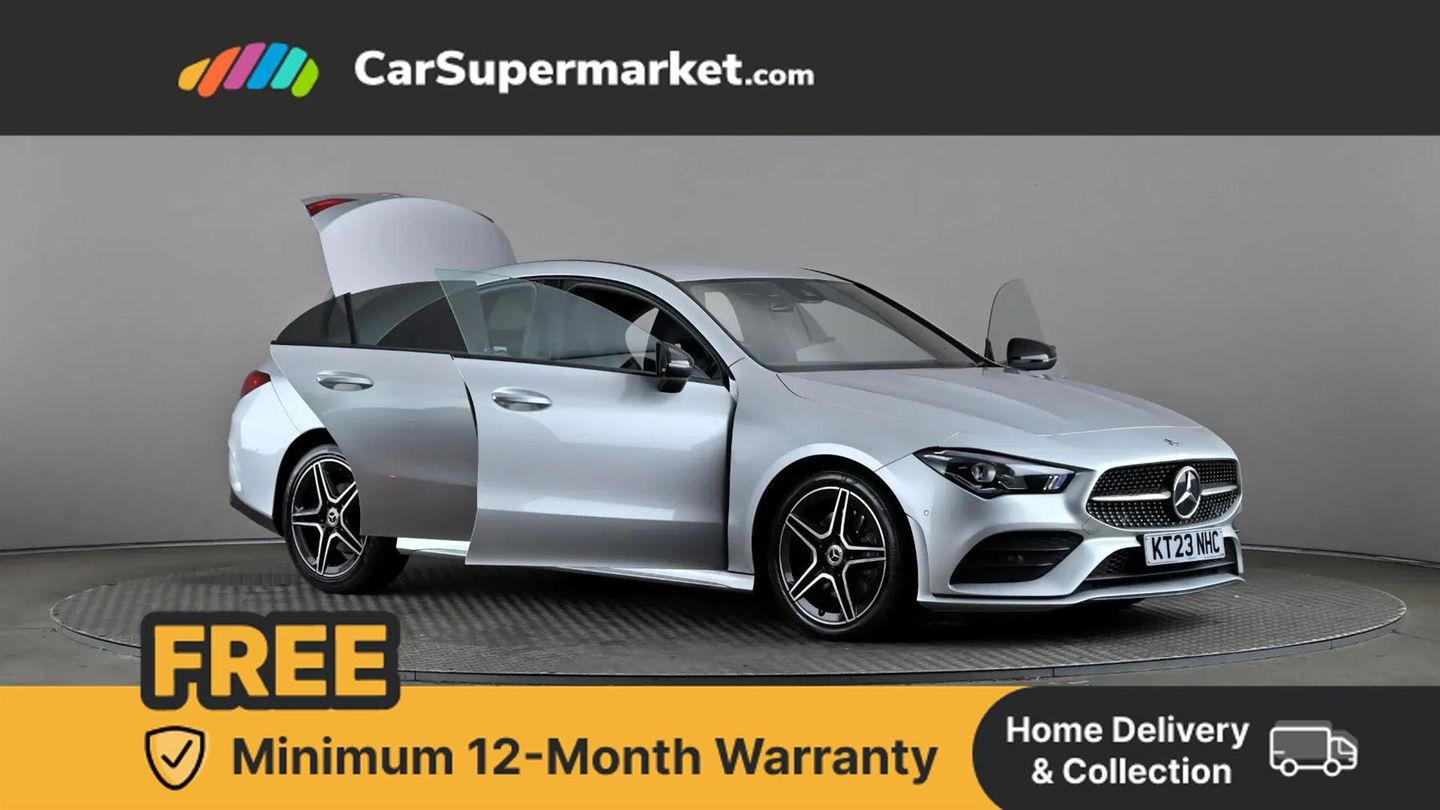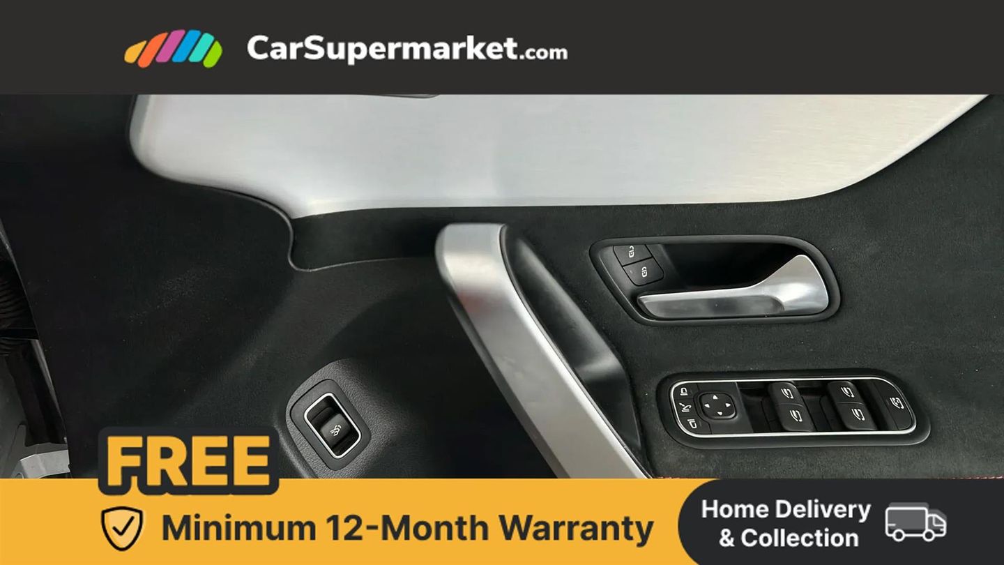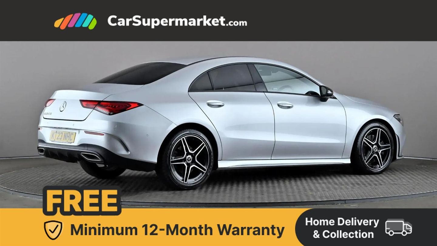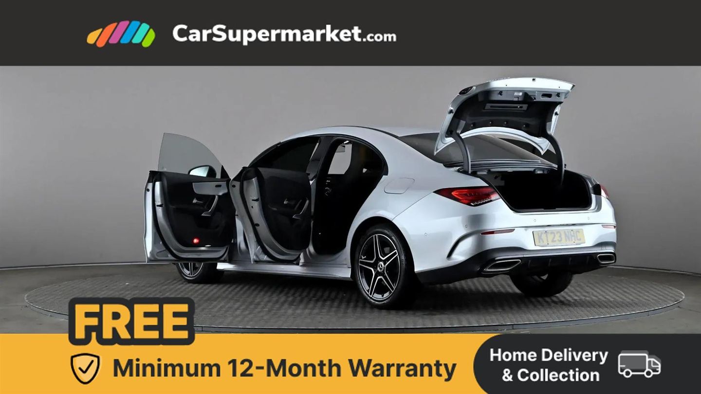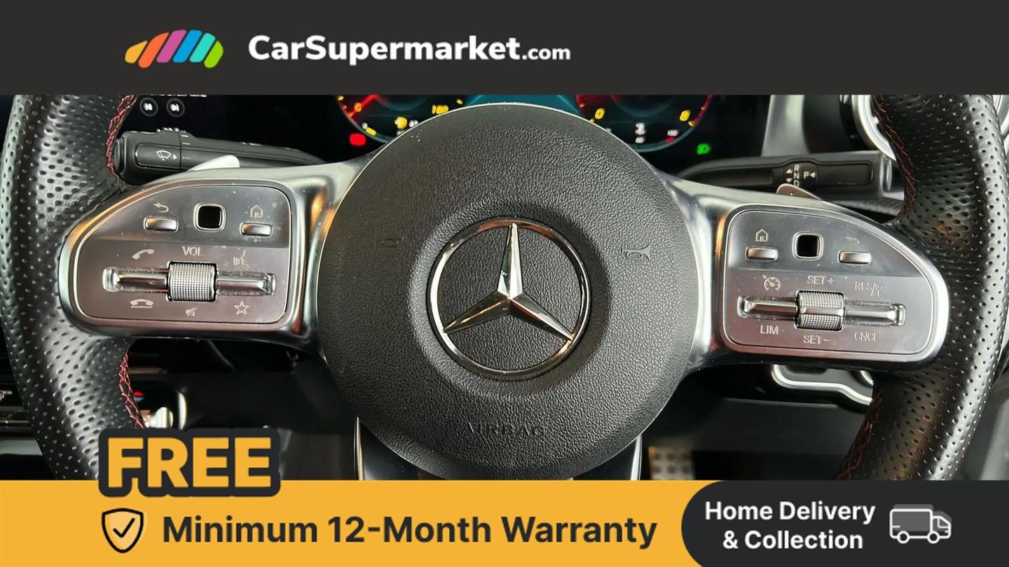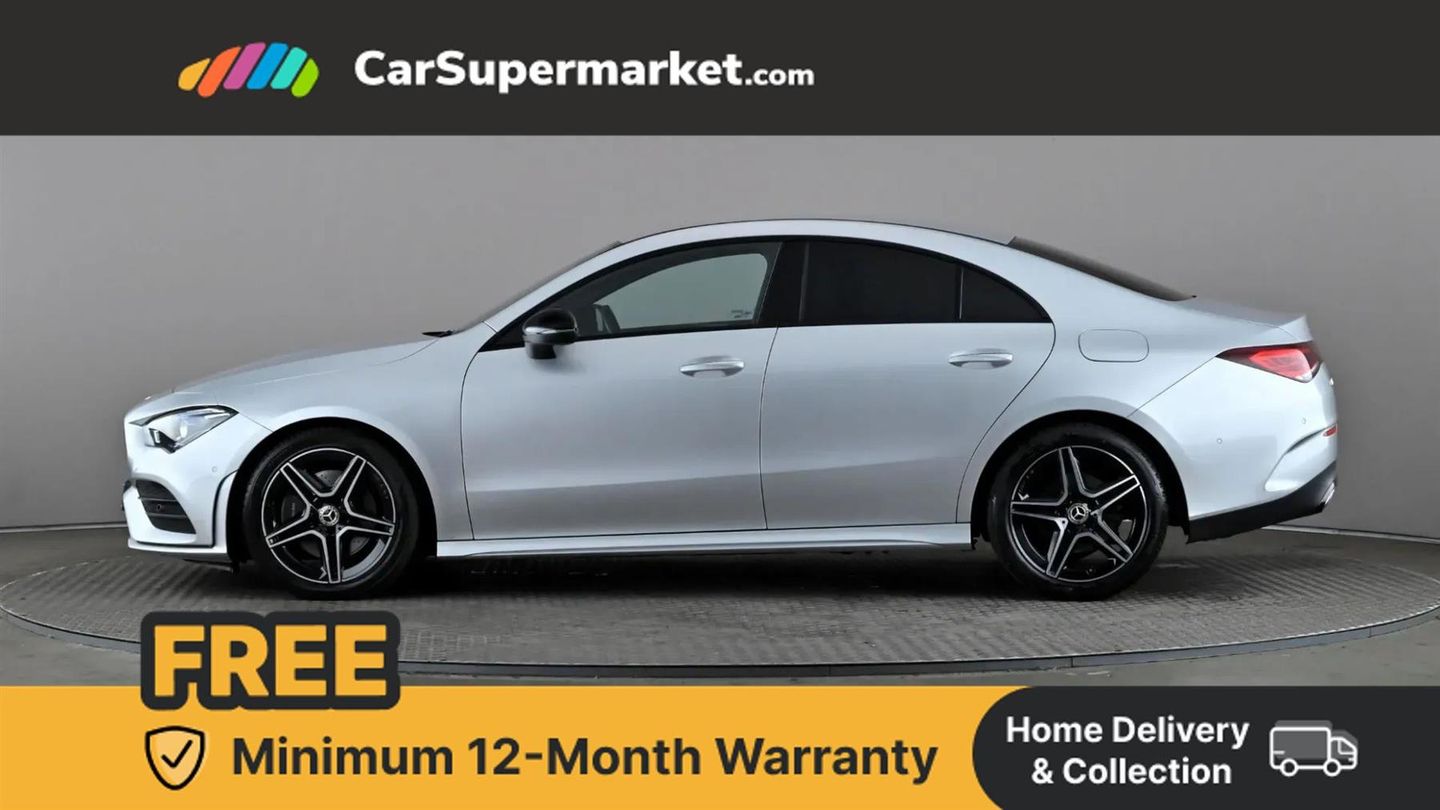 10.25 inch Instrument display with digital cockpit,10.25 inch touchscreen central media display,Active lane keeping assist,Attention assist - Monitors steering behaviour and long journey fatigue,Bluetooth connection,Car wash mode,Cruise control with limiter,Direct steer system with speed sensitive power steering,DYNAMIC SELECT with a choice of driving modes (ECO, Comfort, Sport and Individual),ECO start/stop function,Fluid level warning indicator for fuel, oil, coolant and washer fluid,Hard-disk navigation,Hey Mercedes Voice activation,Lamp failure indicator,Mercedes me connect including emergency call system, accident recovery, breakdown and maintenance management,Mercedes me remote services,Outside temperature gauge,Owners manual and service booklet in English,Pre-installation of private car share,Preinstallation for Mercedes Benz link,Radio aerial integrated into front and rear windshields,Service indicator (ASSYST),Smartphone integration with Apple CarPlay and Android auto,Speed limit assist,Trip computer in multifunction display with current consumption indicator,Lowered comfort suspension,Rear axle multi-link,DAB digital radio tuner,MBUX multimedia system,Mid-range sound system,USB (type C) ports (2) in stowage compartment and 1 in front of centre console,Adaptive brake lights,AMG body styling with AMG front apron and rear apron and visible exhaust tailpipe in chrome trim elements,AMG bodystyling side skirts,Body colour bumpers,Body colour door handles,Chrome beltline strips,Diamond radiator grille pins in chrome,Electric windows,Electrically adjustable and heated door mirrors with integrated LED indicators,Exhaust system with 2 Visible tailpipe trim elements and rear apron with trim in chrome,Headlamp assist automatic headlamp activation,Heated glass rear windscreen + timer control,High level LED third brake light,Interior mirror with black reading lamps and frameless,LED high performance headlamps with integrated LED daytime running lights,LED tail lamp,Privacy glass with dark tinting on rear side windows and rear window,Rain sensing windscreen wipers with two sensitivity settings,Rear boot,Rear fog lamp,Rear side wing doors,Variable front intermittent wipers,Window line trim strip in chrome,3 seat bench in 2nd row,3 spoke flattened bottom nappa leather multifunction steering wheel with perforated leather in grip area,40:20:40 split folding rear seat backrests,Air conditioning - Two zone thermotronic luxury automatic climate control with display,Air vents with surround in silver chrome,Artico man-made leather upholstery,Automatic child seat recognition sensor,Black roof lining,Brushed stainless steel sports pedals with rubber studs,Front centre armrest with stowage,Galvanished gear shift paddles on steering wheel,Heated front seats,Illuminated front door sills with changeable cover,Illuminated glove compartment stowage,Interior lighting - 64 colour Ambient lighting,Luggage net on driver/front passenger seat backrest,Manually adjustable front seats,Manually height and reach adjustable steering column,Rear armrest with two integral cup holders for drinks,Rear head restraints,Single front passenger seat,Sport seats with fixed head restraints,Stowage compartment in centre console with retractable cover,Sunvisors with illuminated vanity mirrors,Touchpad on center console,Twin front cupholders,Two outer rear seat isofix and top tether child seat fixing points,Keyless go comfort pack - CLA,Light and sight pack - CLA,Mirror pack - CLA,Night package - CLA,Parking package - CLA,Seat comfort pack - CLA,Active bonnet pedestrain safety measure which detects an impact and raises bonnet by 65mm,Active brake assist includes forward collision warning system with autonomous braking,Adaptive brake assist with hold function and hill start assist,Anti lock braking system (ABS) with brake assist,Black seat belts,Bonnet with power domes,Brake pad wear warning indicator,Childproof locks manually operated for rear doors and electrically operated for rear power windows,Crash responsive emergency lighting,Driver and front passenger head and sidebags,Driver and front passenger windowbags,Drivers knee airbag,Dual stage driver and front passenger airbags,Electric parking brake,Electronic stability programme with acceleration skid control,ESP curve dynamic assist,Front and rear seatbelt reminder,Front passenger seat occupancy sensor,Three point rear seat belts,Tyre pressure monitoring system,Warning triangle and first aid kit,Guard 360 degree guard vehicle protection system with immobiliser and interior protection,Remote central locking and crash sensor with emergency opening function,Light aluminium with longitudinal grain interior trim,18" AMG 5 twin spoke light alloy wheels painted in black with high sheen finish,Summer tyres,Tirefit tyre sealant kit,ARTICO Man-Made Leather - Sage Grey-Black,Iridium Silver