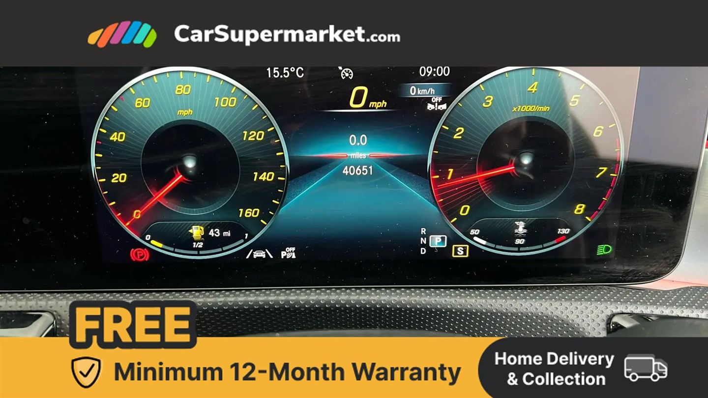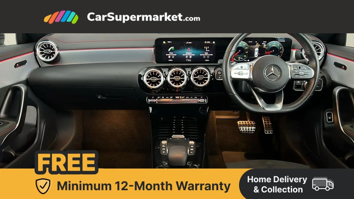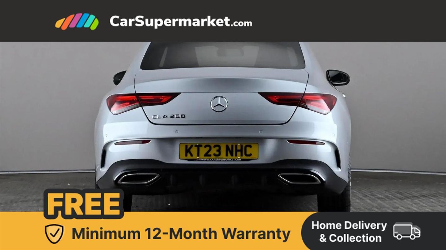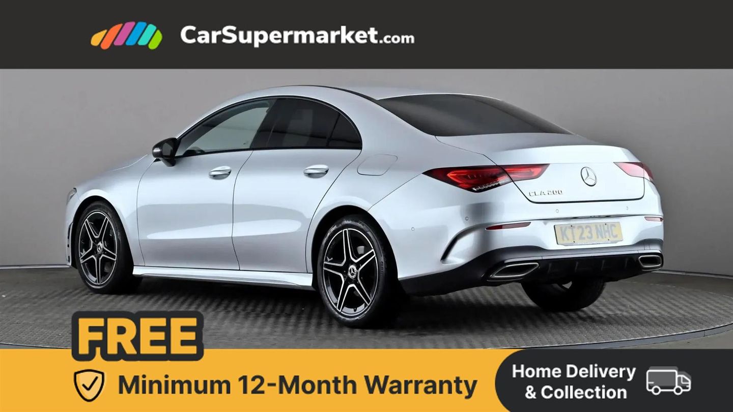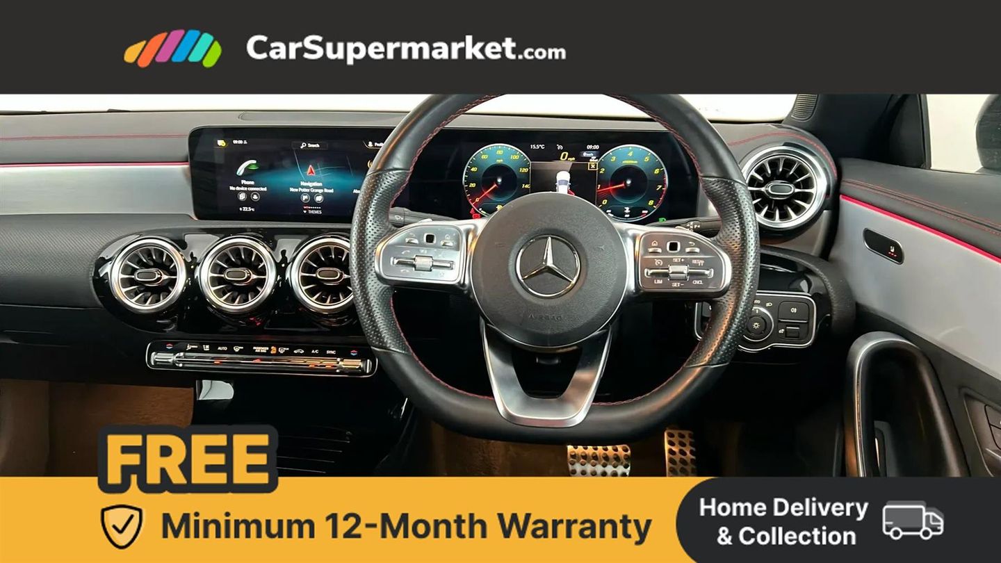 10.25 inch Instrument display with digital cockpit,10.25 inch touchscreen central media display,Active lane keeping assist,Attention assist - Monitors steering behaviour and long journey fatigue,Bluetooth connection,Car wash mode,Cruise control with limiter,Direct steer system with speed sensitive power steering,DYNAMIC SELECT with a choice of driving modes (ECO, Comfort, Sport and Individual),ECO start/stop function,Fluid level warning indicator for fuel, oil, coolant and washer fluid,Hard-disk navigation,Hey Mercedes Voice activation,Lamp failure indicator,Mercedes me connect including emergency call system, accident recovery, breakdown and maintenance management,Mercedes me remote services,Outside temperature gauge,Owners manual and service booklet in English,Pre-installation of private car share,Preinstallation for Mercedes Benz link,Radio aerial integrated into front and rear windshields,Service indicator (ASSYST),Smartphone integration with Apple CarPlay and Android auto,Speed limit assist,Trip computer in multifunction display with current consumption indicator,Lowered comfort suspension,Rear axle multi-link,DAB digital radio tuner,MBUX multimedia system,Mid-range sound system,USB (type C) ports (2) in stowage compartment and 1 in front of centre console,Adaptive brake lights,AMG body styling with AMG front apron and rear apron and visible exhaust tailpipe in chrome trim elements,AMG bodystyling side skirts,Body colour bumpers,Body colour door handles,Chrome beltline strips,Diamond radiator grille pins in chrome,Electric windows,Electrically adjustable and heated door mirrors with integrated LED indicators,Exhaust system with 2 Visible tailpipe trim elements and rear apron with trim in chrome,Headlamp assist automatic headlamp activation,Heated glass rear windscreen + timer control,High level LED third brake light,Interior mirror with black reading lamps and frameless,LED high performance headlamps with integrated LED daytime running lights,LED tail lamp,Privacy glass with dark tinting on rear side windows and rear window,Rain sensing windscreen wipers with two sensitivity settings,Rear boot,Rear fog lamp,Rear side wing doors,Variable front intermittent wipers,Window line trim strip in chrome,3 seat bench in 2nd row,3 spoke flattened bottom nappa leather multifunction steering wheel with perforated leather in grip area,40:20:40 split folding rear seat backrests,Air conditioning - Two zone thermotronic luxury automatic climate control with display,Air vents with surround in silver chrome,Artico man-made leather upholstery,Automatic child seat recognition sensor,Black roof lining,Brushed stainless steel sports pedals with rubber studs,Front centre armrest with stowage,Galvanished gear shift paddles on steering wheel,Heated front seats,Illuminated front door sills with changeable cover,Illuminated glove compartment stowage,Interior lighting - 64 colour Ambient lighting,Luggage net on driver/front passenger seat backrest,Manually adjustable front seats,Manually height and reach adjustable steering column,Rear armrest with two integral cup holders for drinks,Rear head restraints,Single front passenger seat,Sport seats with fixed head restraints,Stowage compartment in centre console with retractable cover,Sunvisors with illuminated vanity mirrors,Touchpad on center console,Twin front cupholders,Two outer rear seat isofix and top tether child seat fixing points,Keyless go comfort pack - CLA,Light and sight pack - CLA,Mirror pack - CLA,Night package - CLA,Parking package - CLA,Seat comfort pack - CLA,Active bonnet pedestrain safety measure which detects an impact and raises bonnet by 65mm,Active brake assist includes forward collision warning system with autonomous braking,Adaptive brake assist with hold function and hill start assist,Anti lock braking system (ABS) with brake assist,Black seat belts,Bonnet with power domes,Brake pad wear warning indicator,Childproof locks manually operated for rear doors and electrically operated for rear power windows,Crash responsive emergency lighting,Driver and front passenger head and sidebags,Driver and front passenger windowbags,Drivers knee airbag,Dual stage driver and front passenger airbags,Electric parking brake,Electronic stability programme with acceleration skid control,ESP curve dynamic assist,Front and rear seatbelt reminder,Front passenger seat occupancy sensor,Three point rear seat belts,Tyre pressure monitoring system,Warning triangle and first aid kit,Guard 360 degree guard vehicle protection system with immobiliser and interior protection,Remote central locking and crash sensor with emergency opening function,Light aluminium with longitudinal grain interior trim,18" AMG 5 twin spoke light alloy wheels painted in black with high sheen finish,Summer tyres,Tirefit tyre sealant kit,ARTICO Man-Made Leather - Sage Grey-Black,Iridium Silver