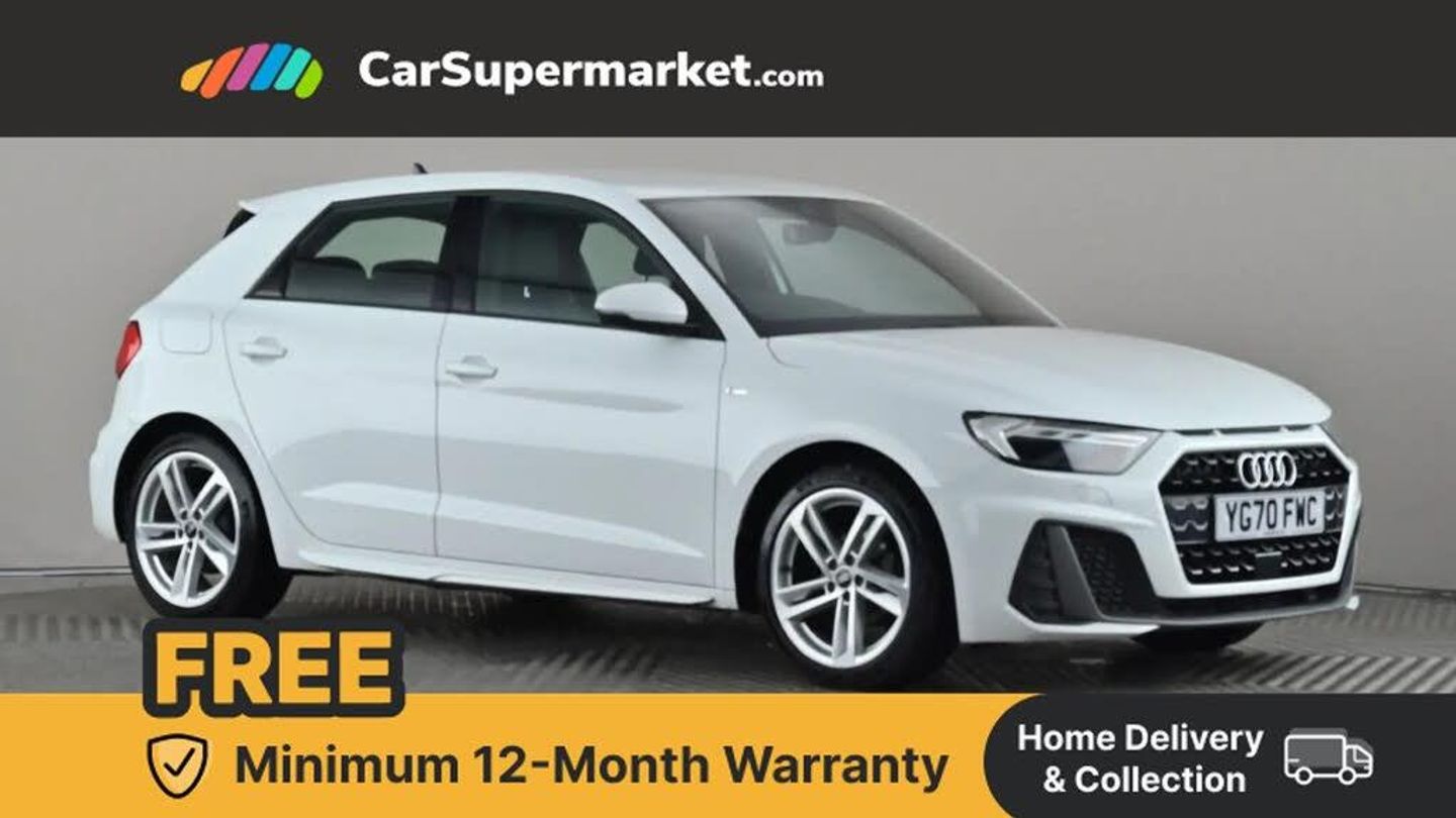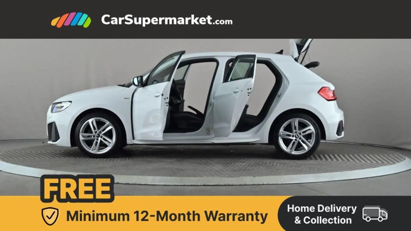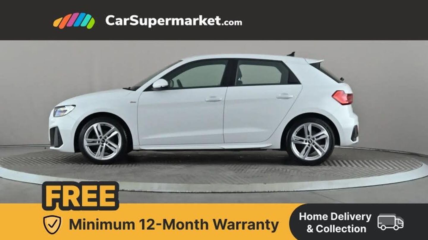 10.25" Digital instrument cluster display classis style instrument dials + speed,odometer,time,outside temperature,telephone menu + fuel level warning,Audi connect safety emergency and service including E-call,Audi smartphone interface with connect compatible smartphone via USB directly MMI display + Nav,music, third party apps controlled via MMI controller,Automatic start/stop system,Bluetooth interface,Driver's information system,Electromechanical power steering,Lane departure warning system,Service interval indicator,Speed limiter,Voice control system,Washer fluid level indicator,Sports suspension,1 x SDXC card reader,2 x USB type C connection points,DAB Digital radio,MMI radio plus with 8.8" colour MMI display screen and MMI touch,Auto dimming rear view mirror,Body coloured door mirrors,Door sills with aluminium inlays and S Line logo,Electric front and rear windows,Electrically adjustable, heated, folding door mirrors with integrated LED side indicator,Front side air inlets in grained matt black and C frame in titanium black,Heat insulating glass windscreen and side windows,Heated rear windscreen,LED headlights with LED rear lights + dynamic rear indicators + headlight adjustment and high beam, turning light + LED daytime running lights,Radiator grille and rear diffuser in matt titanium black,Radiator protective grille frame in matt aluminium silver,Rain and light sensors,Rear fog lights,Rear wiper,S line badges on front wings,Side front spoiler lips in grained matt black,12V socket in centre console with two cup holders,3 rear seats with headrests,40:60 Split folding rear seat or folded fully,Black cloth headlining,Driver and passenger seat with manual height adjust with forward and backwards adjustment,Front head restraints,Height and reach adjustable steering wheel,ISOFIX child seat mounting for front passenger and outer rear seats including top tether attachment point of outer rear seats,Leather gear knob with aluminium trim,Luggage compartment light with front and rear reading lights,Manually adjustable lumbar support in front seats,Stainless steel pedals,LED interior lighting pack - A1,Luggage compartment pack - A1,S line exterior styling pack - A1 Sportback,3x3 point rear seatbelts,Audi pre-sense front with pedestrain and cyclist recognition,Brake assist function,Driver and front passenger airbag with front side and head airbags,Electronic Stability Control including ABS, EBD, ASR and EDL,Front and rear seatbelt reminder,Front passenger airbag deactivation switch,Hill hold assist,Seatbelt height adjustment for front seats,Seatbelt monitoring,Tyre pressure warning light,Warning triangle and first aid kit,Anti theft alarm,Anti theft wheel bolts and loose wheel warning,Immobiliser,Aluminium trim for control switches, air vents and digital instrument cluster,Silver grey inlays polygon structure in diamond paint finish,Structured grey accent areas including air vents, door handle recesses and centre console in quartz paint finish,Glacier White