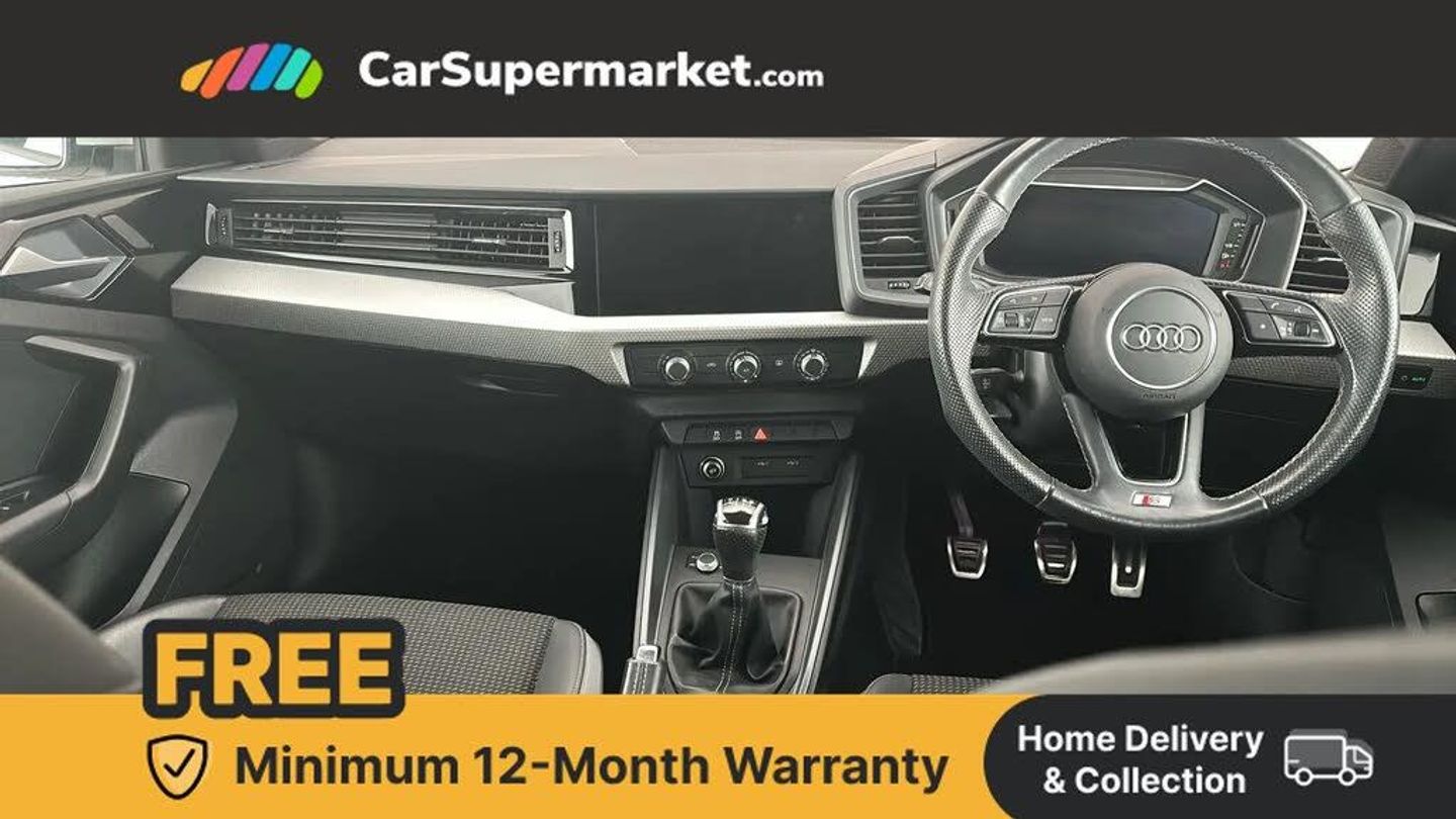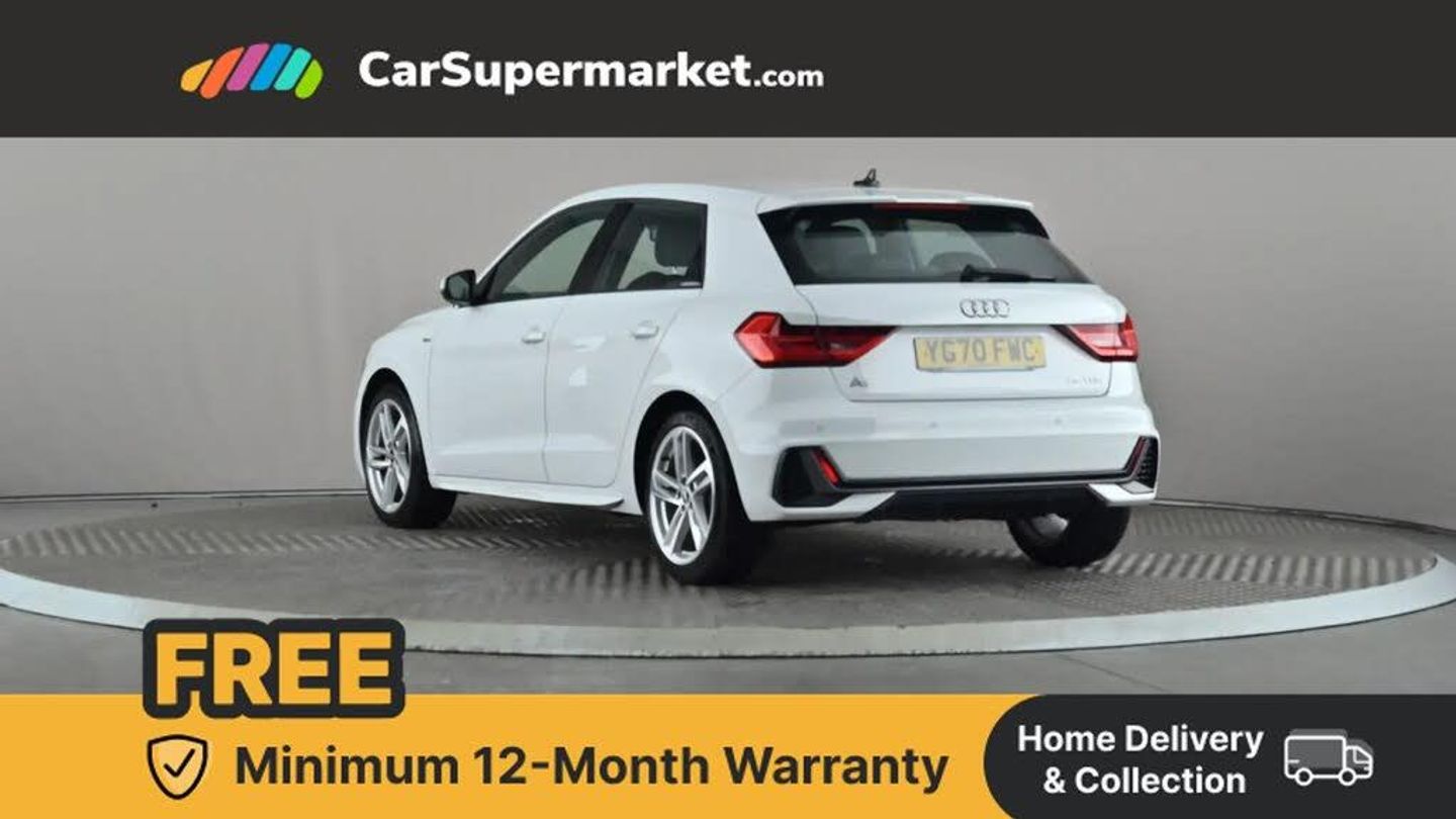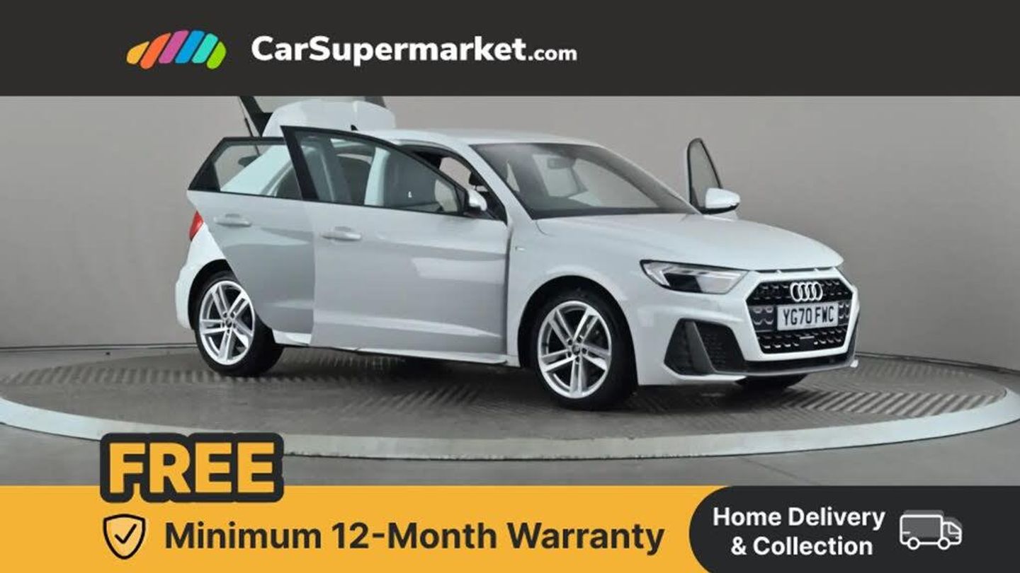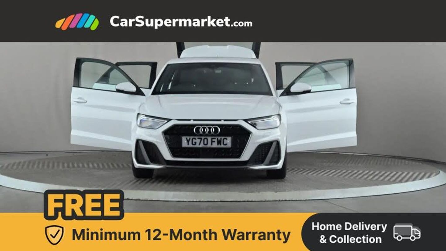 10.25" Digital instrument cluster display classis style instrument dials + speed,odometer,time,outside temperature,telephone menu + fuel level warning,Audi connect safety emergency and service including E-call,Audi smartphone interface with connect compatible smartphone via USB directly MMI display + Nav,music, third party apps controlled via MMI controller,Automatic start/stop system,Bluetooth interface,Driver's information system,Electromechanical power steering,Lane departure warning system,Service interval indicator,Speed limiter,Voice control system,Washer fluid level indicator,Sports suspension,1 x SDXC card reader,2 x USB type C connection points,DAB Digital radio,MMI radio plus with 8.8" colour MMI display screen and MMI touch,Auto dimming rear view mirror,Body coloured door mirrors,Door sills with aluminium inlays and S Line logo,Electric front and rear windows,Electrically adjustable, heated, folding door mirrors with integrated LED side indicator,Front side air inlets in grained matt black and C frame in titanium black,Heat insulating glass windscreen and side windows,Heated rear windscreen,LED headlights with LED rear lights + dynamic rear indicators + headlight adjustment and high beam, turning light + LED daytime running lights,Radiator grille and rear diffuser in matt titanium black,Radiator protective grille frame in matt aluminium silver,Rain and light sensors,Rear fog lights,Rear wiper,S line badges on front wings,Side front spoiler lips in grained matt black,12V socket in centre console with two cup holders,3 rear seats with headrests,40:60 Split folding rear seat or folded fully,Black cloth headlining,Driver and passenger seat with manual height adjust with forward and backwards adjustment,Front head restraints,Height and reach adjustable steering wheel,ISOFIX child seat mounting for front passenger and outer rear seats including top tether attachment point of outer rear seats,Leather gear knob with aluminium trim,Luggage compartment light with front and rear reading lights,Manually adjustable lumbar support in front seats,Stainless steel pedals,LED interior lighting pack - A1,Luggage compartment pack - A1,S line exterior styling pack - A1 Sportback,3x3 point rear seatbelts,Audi pre-sense front with pedestrain and cyclist recognition,Brake assist function,Driver and front passenger airbag with front side and head airbags,Electronic Stability Control including ABS, EBD, ASR and EDL,Front and rear seatbelt reminder,Front passenger airbag deactivation switch,Hill hold assist,Seatbelt height adjustment for front seats,Seatbelt monitoring,Tyre pressure warning light,Warning triangle and first aid kit,Anti theft alarm,Anti theft wheel bolts and loose wheel warning,Immobiliser,Aluminium trim for control switches, air vents and digital instrument cluster,Silver grey inlays polygon structure in diamond paint finish,Structured grey accent areas including air vents, door handle recesses and centre console in quartz paint finish,Glacier White