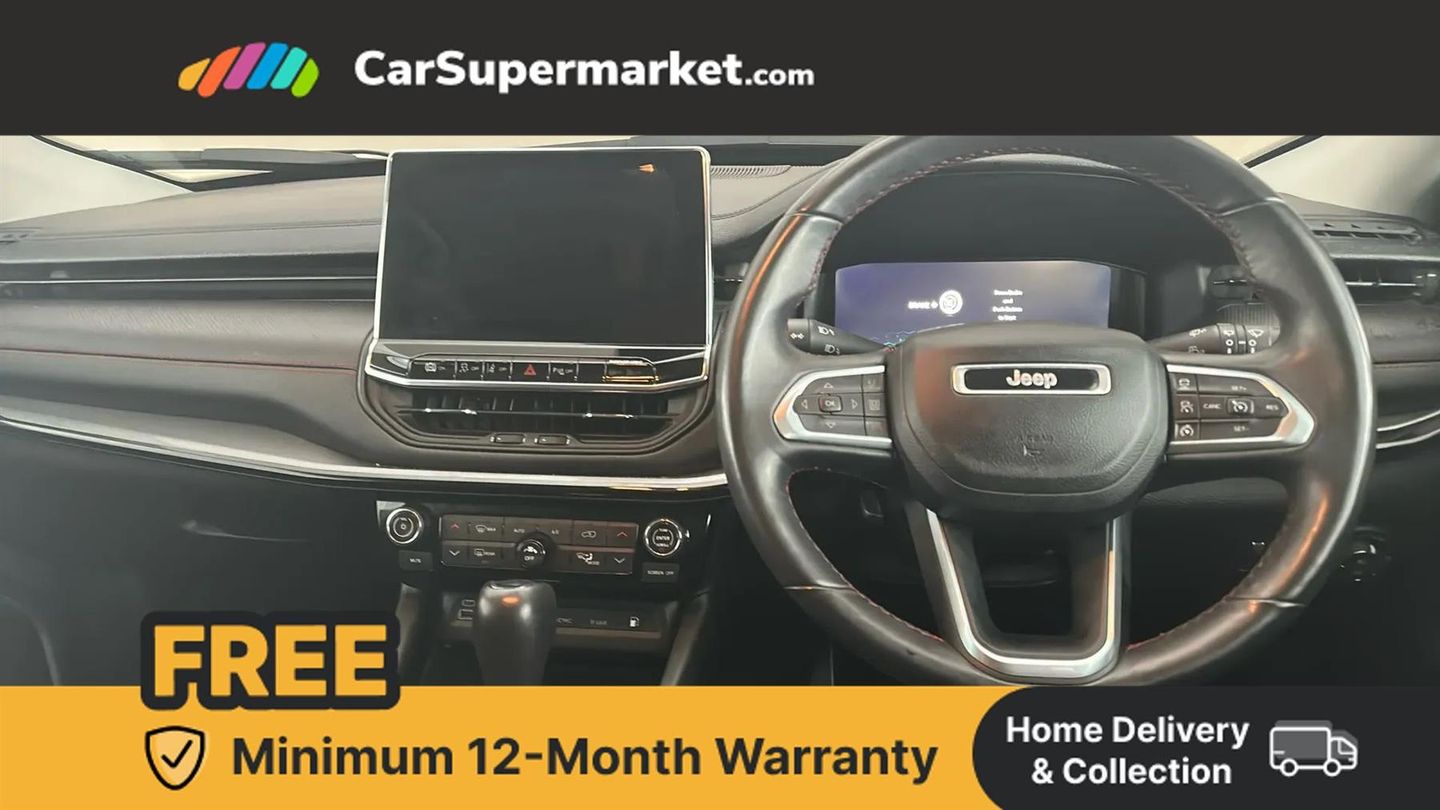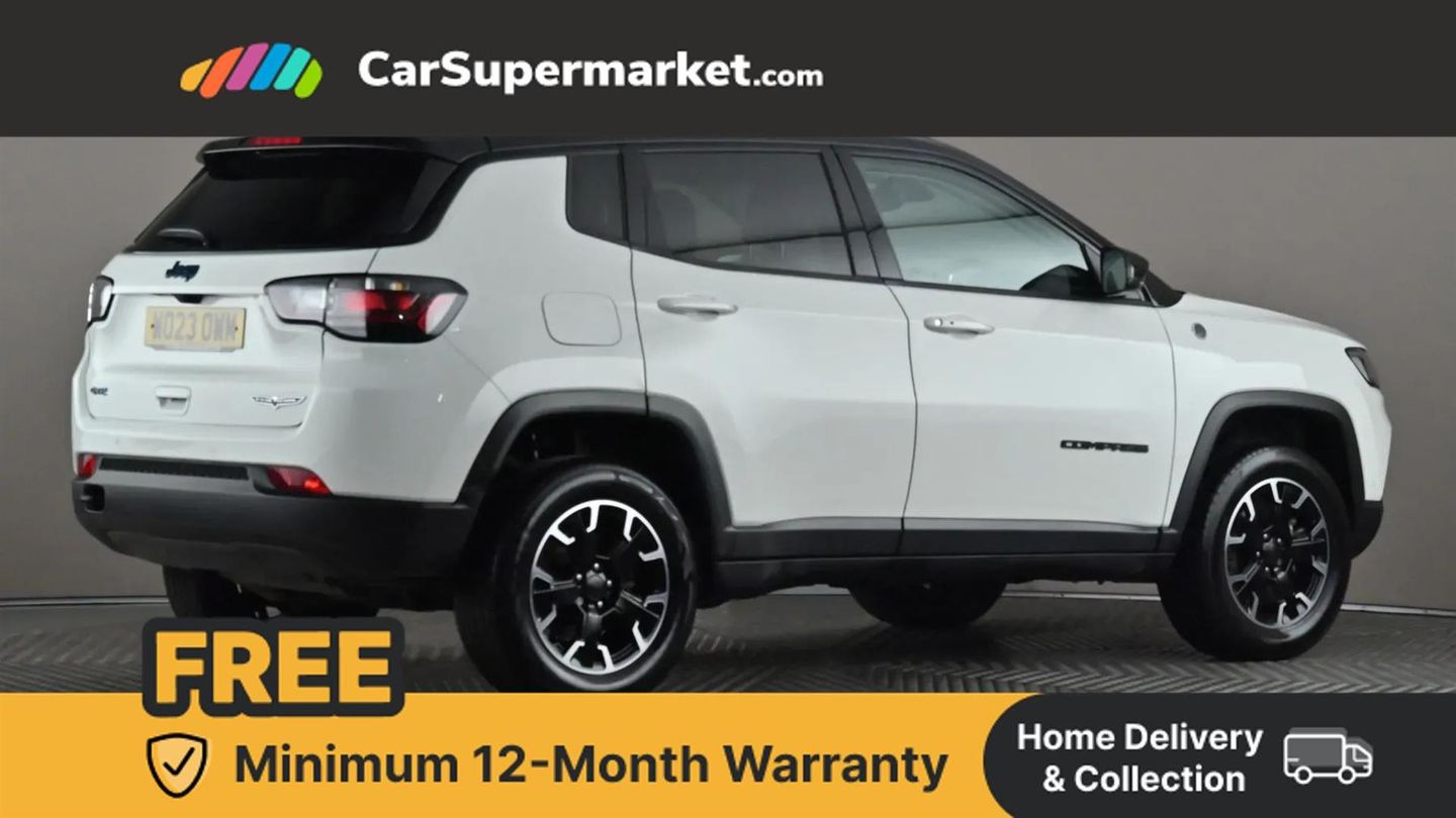 Cruise Control, Adaptive Cruise Control, Traffic Sign Recognition, Wireless Phone Charging, Bluetooth, Digital Radio, Sat Nav, Privacy Glass, Heated Front Seats, Heated Steering Wheel, 17" Alloy Wheels;This 2023 Jeep Compass GSE T4 Trailhawk is a superb example, having had only one owner from new and boasting an MOT valid until July 2026, with a clear vehicle history check. This Four Wheel Drive, Euro 6 compliant plug in hybrid petrol model offers an efficient and capable driving experience. Inside, you'll find a host of convenient features designed to enhance your journeys, including Adaptive Cruise Control with Stop and Go functionality, a Wireless Charging Pad for your devices, and for added comfort during colder months, Heated Front Seats and a Heated Steering Wheel. The Trailhawk trim level signifies a higher specification, indicating this Jeep Compass is equipped to offer a superior experience compared to other similar vehicles. Its advanced plug in hybrid technology combined with the robust Four Wheel Drive system makes it a versatile choice for both daily commutes and more adventurous outings. The inclusion of features like Adaptive Cruise Control demonstrates a commitment to driver comfort and safety, while the heated elements ensure a pleasant environment regardless of the weather.