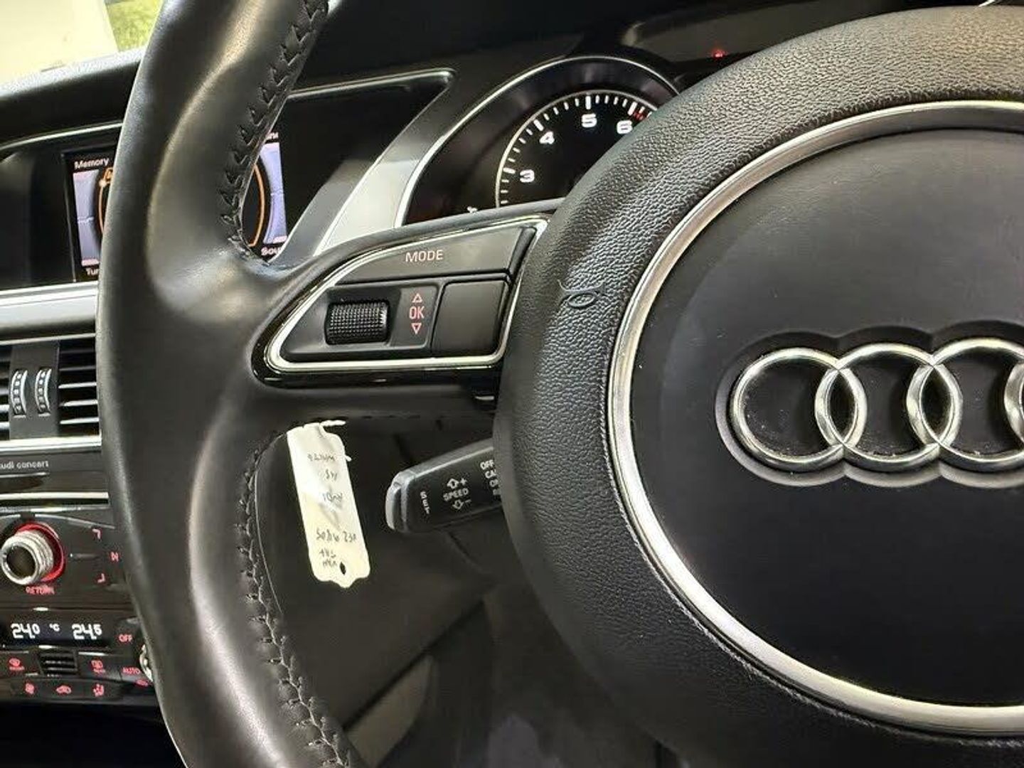 12V Power Socket x2, Audi Sound System, AUX-IN Socket, Concert Radio - MP3-CD Player, Mobile Telephone Preparation - Bluetooth Interface, Acoustic Parking System - Rear, Colour Drivers Information System - DIS, 17in Alloy Wheels - 5-Arm Design, Door Mirrors - Electrically Adjustable and Heated, Electric Windows - Front and Rear, Exhaust Tailpipe - Dual-Branch, Exterior Aluminium Package, Light and Rain Sensor Package, Radiator Grille - High Gloss, Space Saver Spare Wheel, Front Fog Lights, Headlights - Automatic Adjustment, Auto Opening Boot Lid, Climate Control - Electronic 3-Zone, Cup Holders - Centre Console, Front Centre Armrest, Inlays - Reflex Finish, Seats - Drivers Manual Height Adjustment, Split-Folding Rear Seats, Steering Column - Rake and Reach Adjustment, Steering Wheel - 3-Spoke Leather-Multi-Function, Steering Wheel - Multi-function, Electromechanical Power Steering, ABS - Anti-Lock Braking System, Airbags - Driver, Airbags - Front Passenger, Airbags - Front Side System, Airbags - Head Level Side For Front and Rear, Alarm - Thatcham Category 1, ESP - Electronic Stability Programme, First Aid Kit, Intelligent Key, ISOFIX child seat preparation Front and Rear with passenger airbag deactivation switch