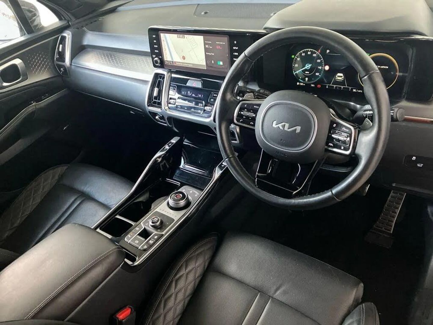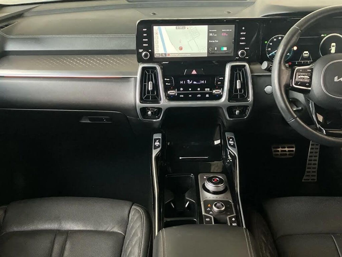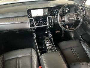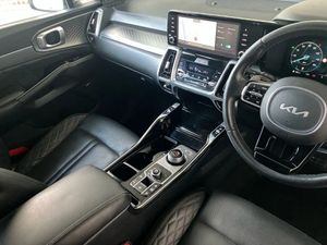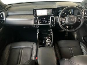 Sat Nav, Touchscreen, Apple CarPlay/Android Auto, Advanced Safety, Blind Spot Assist, Headup Display, Parking Sensor, Park Assist, Cruise Control, Wireless Charger, Bluetooth, MP3, Automatic Headlights, Panoramic / Sunroof, AC/Climate, Ambient Lighting, Leather Interior, Heated Seats, Heated Steering Wheel, Isofix, Start/Stop, Alloys;This 2023 Kia Sorento h T-GDi Edition offers excellent peace of mind with its MOT valid until March 2026. This Euro 6 compliant, Four Wheel Drive model features a 1.6 litre Petrol Hybrid engine and provides comfortable seating for seven occupants. You'll appreciate the convenience of heated front and outer second row seats, alongside a heated steering wheel for those colder journeys. Parking is made easier with front parking sensors and a blind spot monitor camera, ensuring greater awareness of your surroundings. Experience impressive performance with a 0-60mph acceleration time of just 8.7 seconds, demonstrating its capability. The Sorento also boasts a large boot space, offering ample room for luggage or shopping, making it a practical choice for families and active lifestyles. These features collectively highlight how this Kia Sorento stands out, offering a well equipped and capable driving experience.