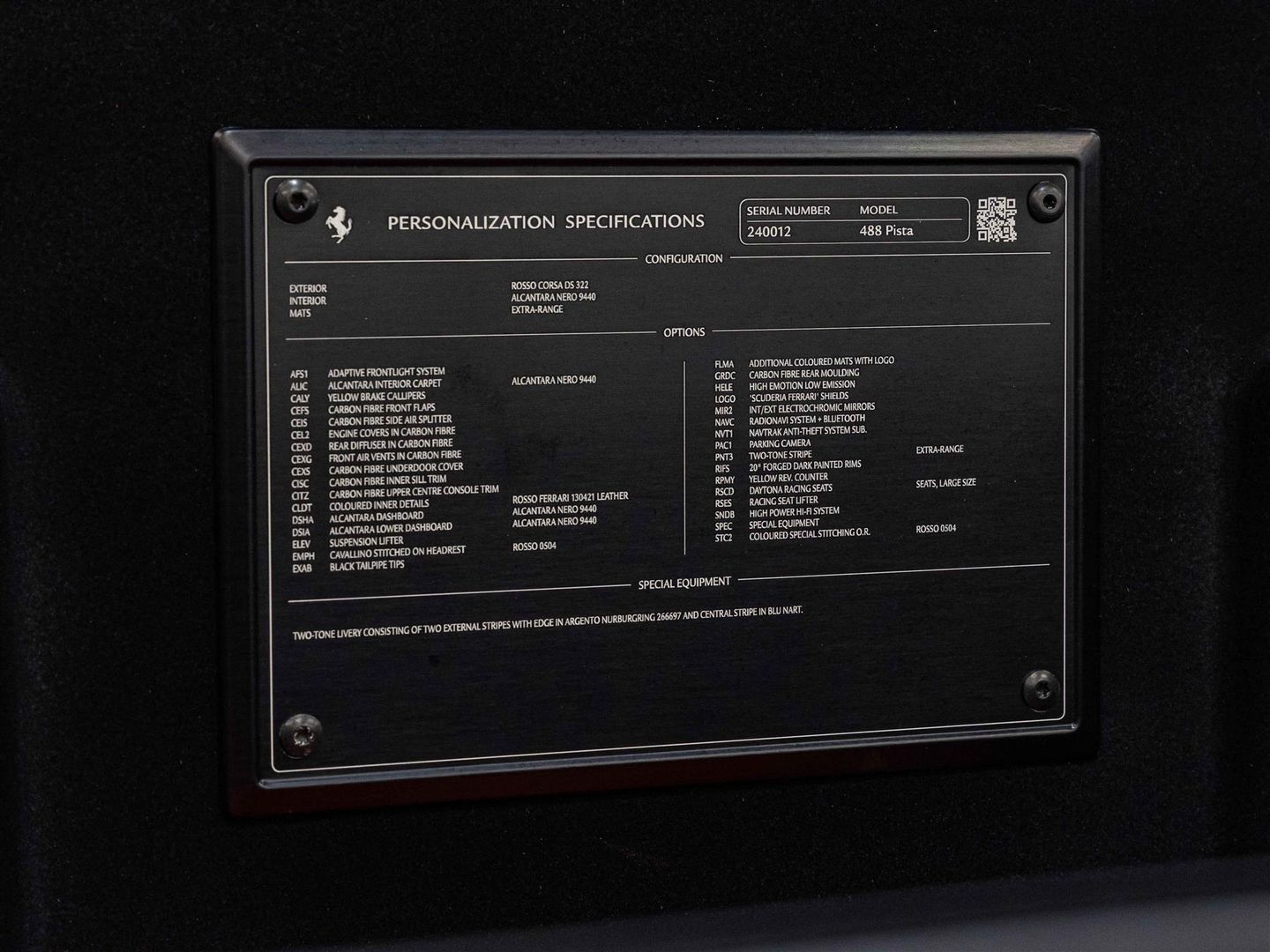 Finished in Rosso Corsa with two-tone livery in Argentino Nurburgring and Blu Nart, featuring an extended Nero Alcantara interior with Rosso accents. This collectable Ferrari 488 Pista has a huge specification, is offered in immaculate condition, and has covered only 200 miles from new. The car comes complete with full Ferrari main dealer service history, extended warranty until August 2027.