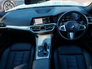 BMW Live Cockpit Professional Nav with 12.3" instrument display + 10.25" display, Intelligent Voice Assist, BMW OS 7, HDD, 2USB, 4G LTE connect, Attentiveness assist, Dynamic stability control + (DSC+) - Anti-lock Braking System (ABS) with brake assist and cornering brake control + Automatic Stability Control (ASC), BMW iDrive controller on centre console, BMW Teleservices, Personal Profile - automatic lock when driving away selectable, Alarm system (Thatcham 1) with remote control and electronic engine immobiliser, Optimum shift indicator, On board computer - average speed+fuel consumption, service interval, clock/date, odometer/trip meter, outside temperature display and ice warning, Oil sensor for level and grade, warning by check control system, Integrated owners handbook, Instrument cluster with speedometer with mph readout, tachometer, fuel gauge and oil temperature gauge, Electric power steering with Servotronic steering optimised at all speed ranges, Condition based service, Check Control warning system for monitoring of lights and door/luggage compartment open warning, Brake pad wear indicator in front and rear, BMW service history, Auto start-stop, Active guard plus, Stroke dependent dampers, Petrol Particulate Filter, Drive performance control - ECO PRO, comfort and sport modes, Battery cut-out switch, Balanced 50/50 weight distribution, Electronic service booklet, DAB tuner, xDrive designation on left tailgate, Windscreen wipers with integrated washing jets, Welcome lights in interior and door handle area, Visible VIN plate, Two part LED tailights in L-shape with components in smoked glass, brake light, LED turn indicator and rear fog light, Rain sensor with automatic headlight activation, Shark fin antenna, Model designation on right side of tailgate, Matt black exterior B pillar, M designation on front side panels, left and right, Lightweight engineering, LED front fog lights, LED daytime running lights, Interior rear view electrochromatic mirror with automatic anti dazzle function, High gloss shadow line exterior trim, Green tinted heat protection glazing, Front black door sill finishers with BMW designation, Front and rear bumper system with replaceable deformation elements, Fading support, Exterior mirrors - electrically folding with anti-dazzle, Exhaust tailpipe - split left and right, Electric windows - front and rear, with open/close fingertip control, anti-trap facility and comfort closing, Dynamic brake lights, Body colour mirror caps with bottom segment in matt black, Body colour fuel filler flap, Body colour front and rear bumpers, Body colour door handles, Black roof mouldings, Automatic headlight beam throw control with load dependent regulating reaction, dynamic compensation of braking dive and acceleration squat, Active airstream chrome frame kidney grille with 8 high gloss black vertical slats, Acoustic glazing, Toolkit located in luggage compartment, Sunvisors with vanity mirrors and ticket pocket, Rear centre console with storage compartment and ventilation grille, Rear centre armrest with 2 cupholders, Make-up mirror lights, M sport leather steering wheel, Illuminated glove compartment with separate small compartment, Interior lighting - front centre over interior mirror with soft light, rear centre and front and rear footwell lighting, Illuminated armrest storage compartment, Side impact protection, Height adjustable mechanically and infinitely variable steering column, Heated driver and front passenger seats, Front sport seats, Front and rear velour floor mats, Front head restraints, Front and rear reading lights, Front and rear door pockets, Front and rear door exit lighting (left / right), Four grab handles integrated in roof lining, Deletion of Lumbar support on passanger side, Centred top Luggage compartment lights, Armrest integrated in front and rear door trim + front centre console armrest, Anthracite headlining, 40:20:40 split folding rear seat with loading system, Ambient lighting with welcome carpet light, 4 pieces lashing eyelets in luggage compartment, 3 zone automatic air conditioning, 3 rear seats with non folding headrests with 3 point seat belts, 2 front cupholder in centre console with clamping elements and matt black inlay, 12V power socket in front storage compartment, M sport exterior styling pack - 3 Series Saloon/Touring, Connected pack professional - 3 Series Saloon/Touring, Warning triangle and first aid kit, Ventilated front and rear disc brakes, Tyre pressure monitoring with three level warning strategy, Three 3 point seat belts on all seats including front belt stopper, pyrotechnic belt tensioners and belt force limiters, Seat belt security check for driver and front passenger, Hill start assist, Head airbags for all 4 outer seats, Front passenger manual airbag deactivation, Electronic differential lock control (EDLC), Electric parking brake including automatic hold function and automatic release of the parking brake when driving off, Dynamic Traction Control - DTC, Dry braking, Dynamic brake control, Driver/Front Passenger airbags, Driver and front passenger side airbags, integrated in the door side seat backrest bolsters for all seat variants, Crash sensor activating of airbags, Unlocking doors, hazard warning lights, interior light, safety battery terminal, Coasting in idle in ECO PRO mode, Child seat ISOFIX attachment rear outer seats, Child proof locking system in rear door, Braking pre-tensioning, Brake energy regeneration, BMW emergency call, 2 tone horn, Vehicle key with M specific designation, Start/stop button with Comfort Go keyless engine start and auto Start/stop deactivation button, Remote control with integrated key one button open/close vehicle and windows, sole opening of the luggage compartment lid and panic mode, Central locking switch for all doors, fuel filler cap and luggage compartment, Reduced rolling resistance tyres