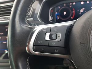 Adaptive cruise control, Area view with park assist steering and front and rear parking sensors, Drive mode selector, Discover DVD nav pro with 9.2" colour touch screen, radio/CD player, European map data, 64GB hard drive, voice control, car-net guide and inform plus, DAB Digital radio, Electric panoramic sunroof with sunblind, R Line body kit, R Line side sills, Silver roof rails, 3 zone climate control, Heated front seats, Apple CarPlay, Android Auto