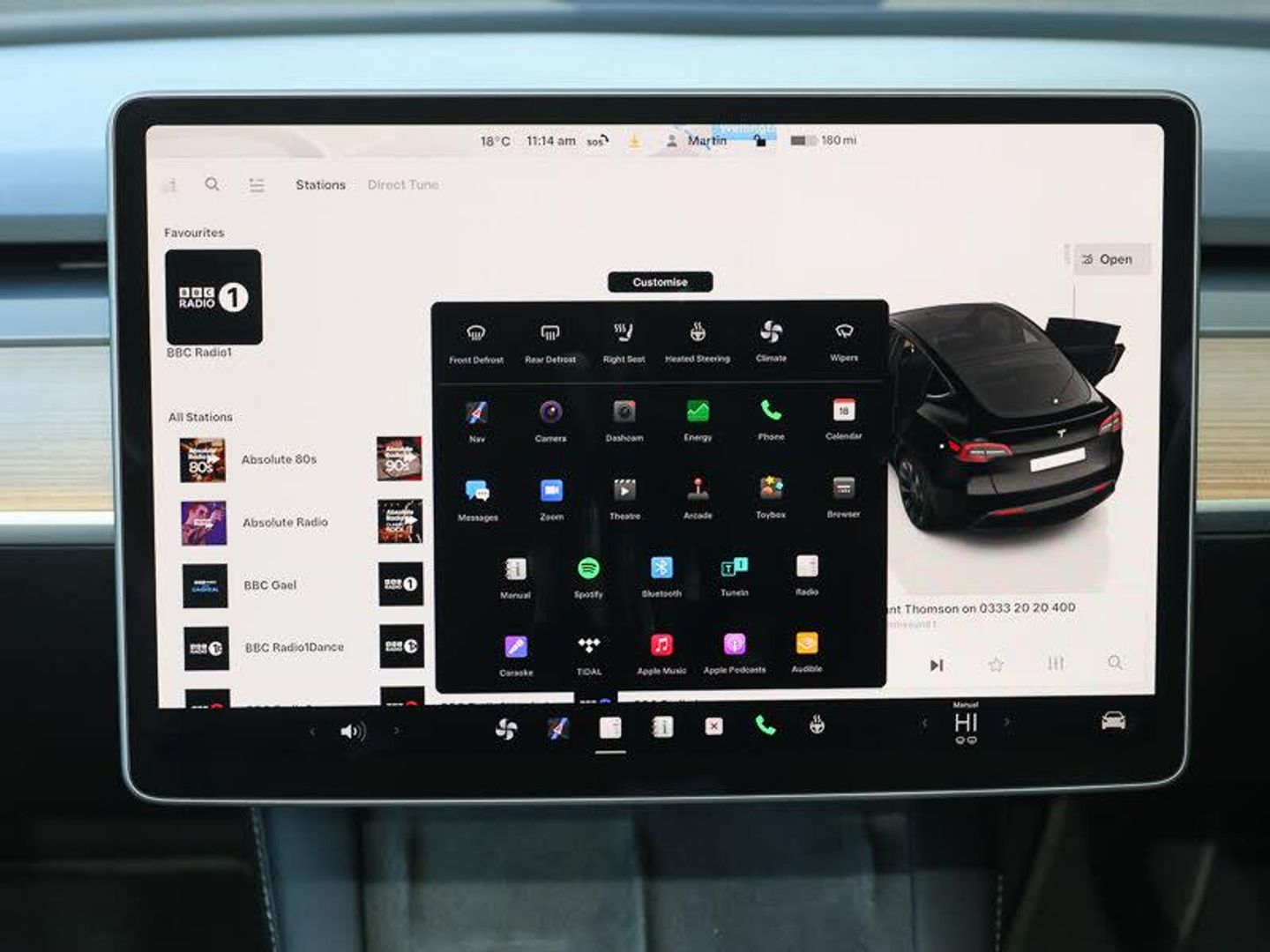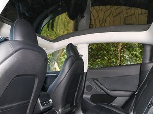 15" Touchscreen display, Blind spot monitoring, Navigation system, Power lift tailgate, Heated rear seats, Heated front seats, Reversing camera, Keyless driving and keyless entry, Dual motor AWD wheel drive, Music and media via bluetooth, Heated steering wheel, Premium audio 14 speakers, 1 subwoofer, 2 amps and full immersive sound, DAB Digital radio, Daytime running lights, Glovebox, lockable with illumination, Interior ambient lighting, Dashcam, Wireless phone charging, Premium open pore wood decor, LED Headlights, CCS charging connector, Single front passenger seat, Type 2 connector, Rear view mirror auto dimming, Rear window defroster, Automatic headlights and wipers, Tesla mobile connector + domestic adapter (British 3-pin), Expansive glass roof with ultraviolet and infrared protection