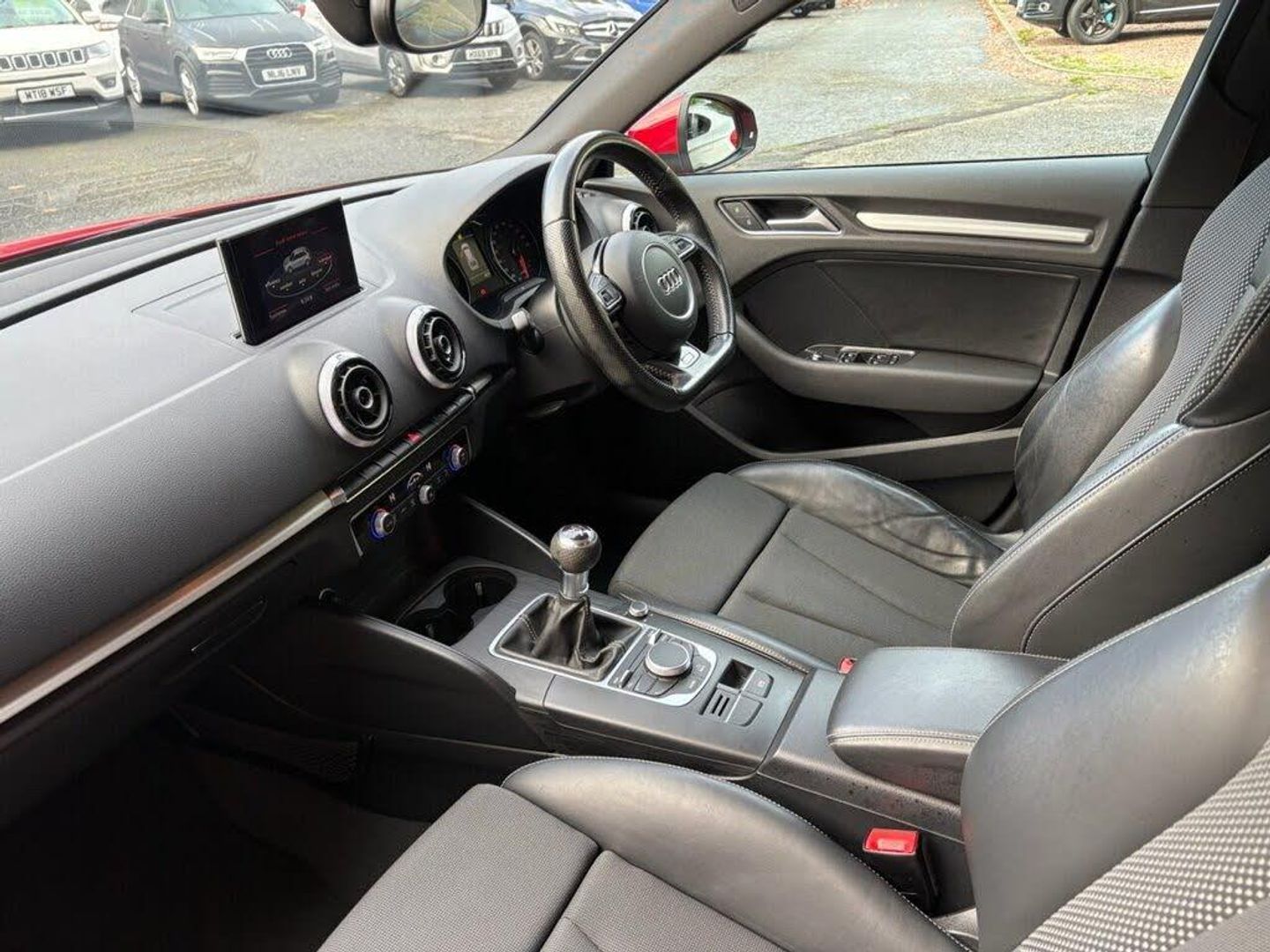 12V Power Socket - Centre Console, 12V Power Socket - Rear, 18in Alloy Wheels - 5-Parallel Spoke Design Partly Polished, 2 x SDXC Card Readers, ABS - Anti-Lock Braking System, Adaptive Brake Lights, Airbags - Driver, Airbags - Drivers Knee, Airbags - Front Passenger, Airbags - Front Side, Airbags - Head Level Side For Front and Rear, Alarm - Thatcham Category 1, Aluminium Interior Elements, AMI - Audi Music Interface, Anti Theft Locking Wheel Bolts, ASR - Anti Slip Regulation, Audi Drive Select, Audio Output - 80 Watts, Biathlon Cloth-Pearl Nappa Leather - S Line Embossing - Black with Silver Stitching, Brilliant Red, Car Jack, Child Locks - Manual, Cloth Headlining in Black, Coat Hooks - B Pillar - Both Sides, Colour Drivers Information System - DIS, Cruise Control, DAB Digital Radio, Display Screen Colour - 5.8in, Door Mirrors - Body Coloured with Integrated LED Indicators, Door Mirrors - Electrically Adjustable and Heated, Door Sill Trims with S Line Logo, Dual-Zone Electronic Climate Control, EBD - Electronic Brakeforce Distribution, EDL - Electronic Differential Lock, Electric Windows - Front and Rear, Electromechanical Parking Brake, Electromechanical Power Steering, ESP - Electronic Stability Programme, Exhaust Tailpipe - Twin, First Aid Kit, Fog Lights - High Gloss Black Surrounds, Front and Rear Floor Mats, Front Centre Armrest, Front Fog Lights, Front Passenger Airbag Deactivation Switch, Front Sports Seats, Gear Knob - Perforated Leather, Glovebox - Illuminated, Headlights - Automatic Dynamic Range Control, Headlights - Bi-Xenon Plus, Headlights Washers, Heated Rear Windscreen, Heated Windscreen Washer Jets, Height Adjustable Boot Floor, Hydraulic Brake Assist, Illuminated Vanity Mirrors, Immobiliser, Inlays - Matt Brushed Aluminium, Interior Elements - Air Vents - Aluminium, Interior Elements - Frame Around the Inside Door Handle - Aluminium, Interior Elements - Glove Compartment - Aluminium, Interior Elements - Window Control Switches - Aluminium, Interior Lighting, ISOFIX Child Seat Mounting for Front Passenger and Rear Outer Seats, LED Daytime Running Lights, LED Rear Indicators, LED Rear Lights, Luggage Compartment - Illuminated, Luggage Compartment - Lashing Points x4, Luggage Compartment - Side Net, MMI Radio, Mobile Telephone Preparation - Bluetooth Interface, Model and Engine Technology Badges at Rear, Pollen Filter, Preparation for SD Card-Based Navigation System, Radiator Grille - High Gloss Black, Rear Parcel Shelf Removable, Remote Central Locking with 2 Fold Away Keys, Rest Recommendation System, S Line Badges on Front Wings, S Line Body Styling, S line Design Front Bumper-Rear Diffuser-Side Sills and Roof Spoiler, Seat Belt Reminder for All Seats, Seats - Adjustment for Cushion Depth, Seats - Extendable Thigh Support, Seats - Front Height Adjustment, Seats - Split Folding Rear - 60-40, Secondary Collision Brake Assist, Smoking Package, Space Saver Spare Wheel, Speakers x8, Sport Suspension, Steering Wheel - 3-Spoke Leather-Multifunction-Flat Bottomed, Steering Wheel - Height and Reach Adjustable, Steering Wheel - Multi-function, Storage and Luggage Package, Storage Compartment - Centre Console, Storage Compartment Under Rear Seat, Storage Compartments - Door Side Trims, Storage Net in Front Passenger Footwell and Front Seat Backrests, Sun Visors - with Covered Vanity Mirrors, Tool Kit, Tyre Pressure Monitoring System, USB Connection, Voice Control, Warning Triangle, Washer Fluid Level Indicator, Window Surrounds - Aluminium