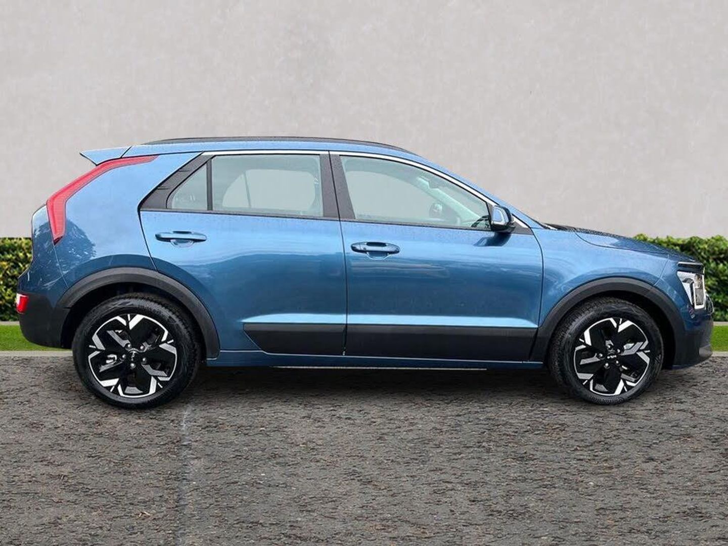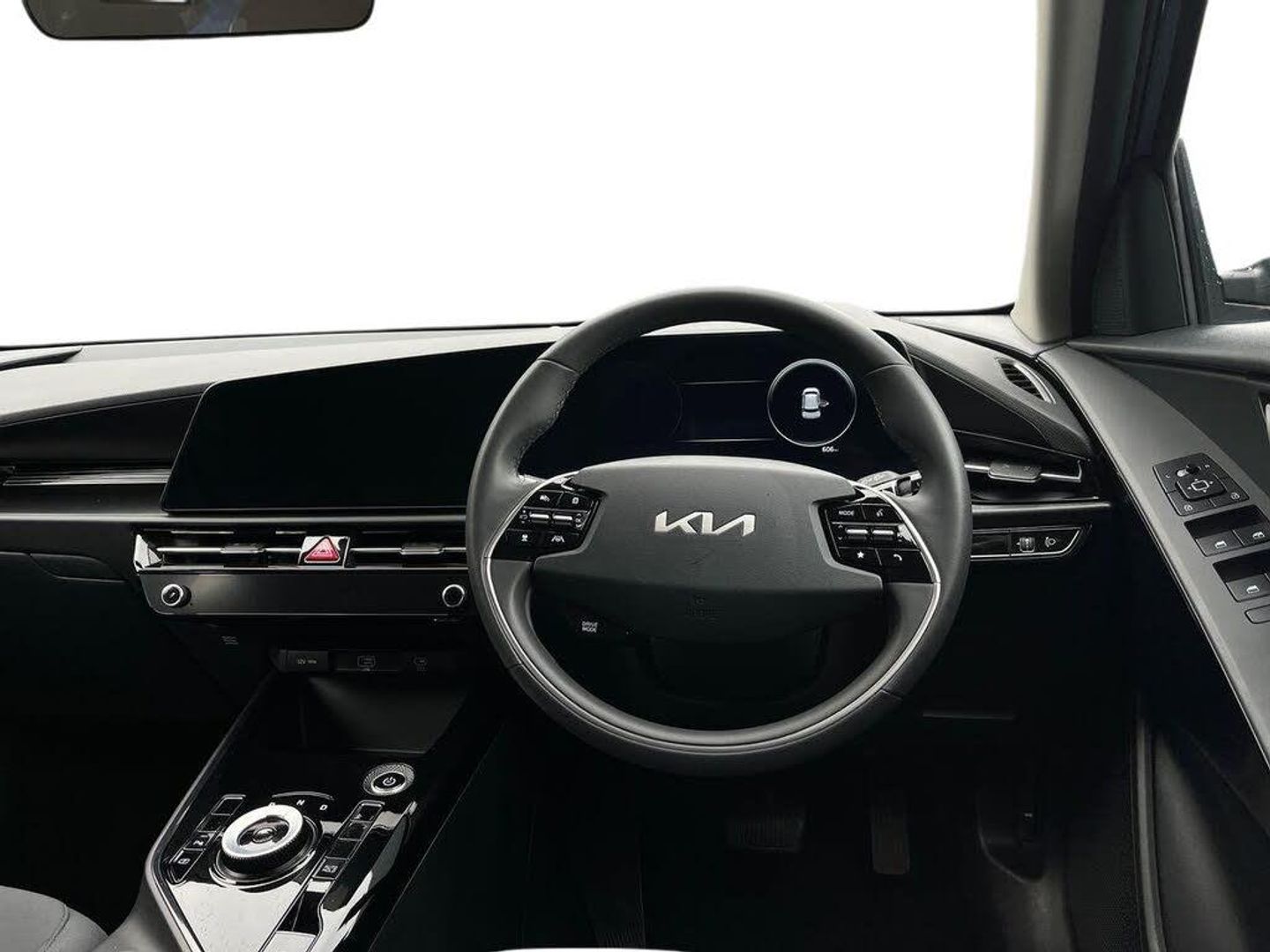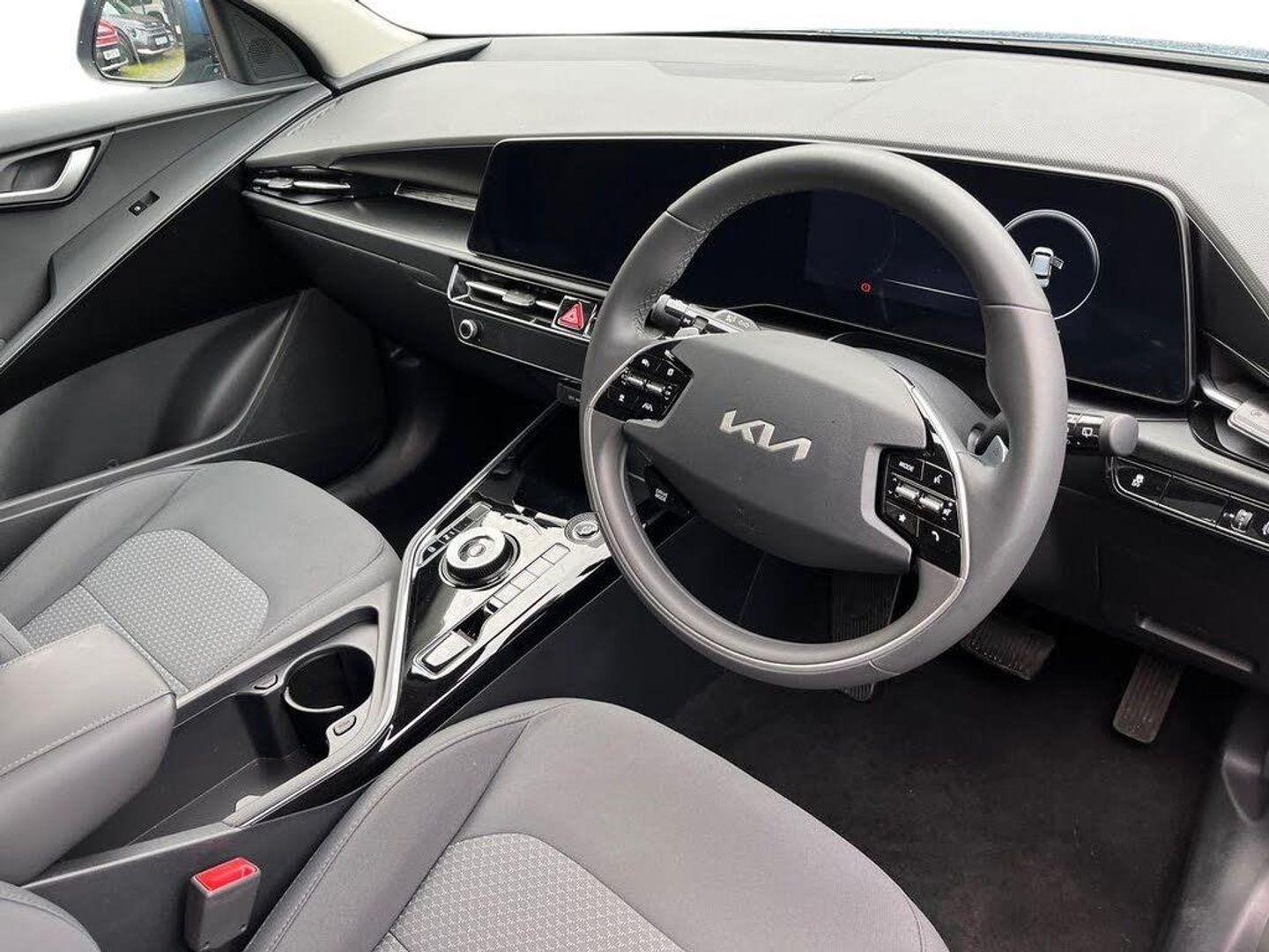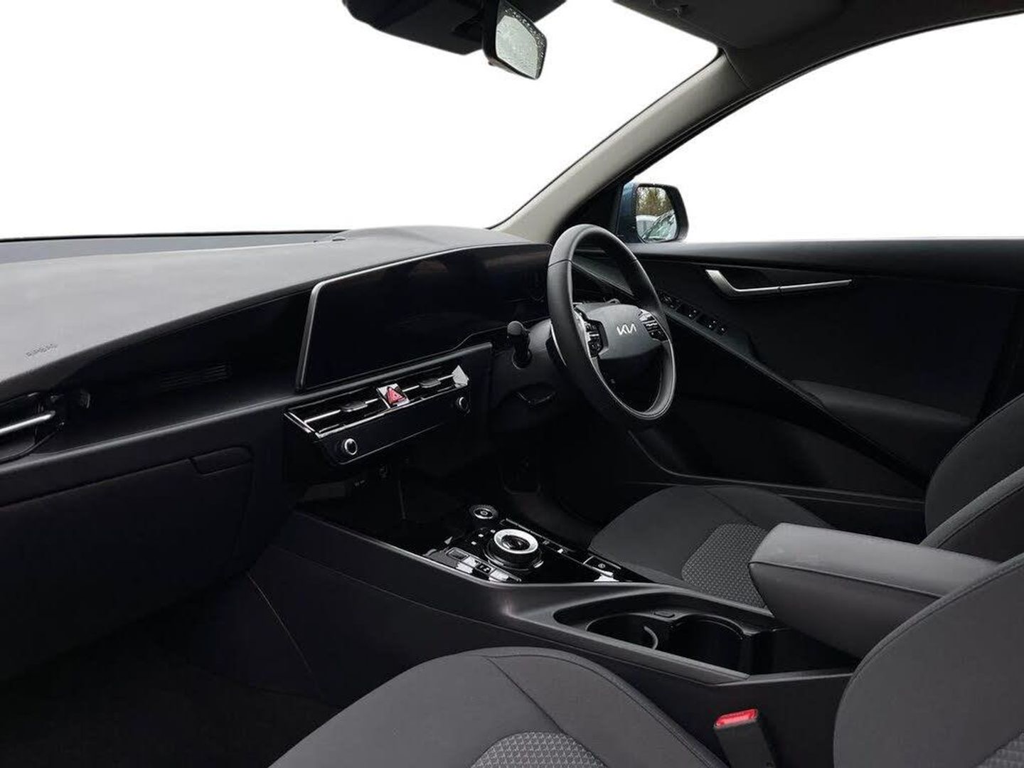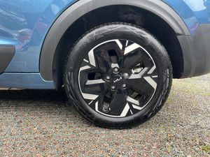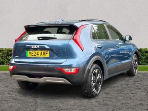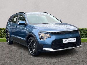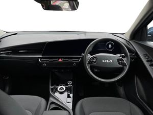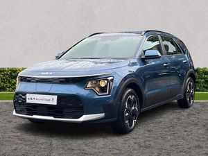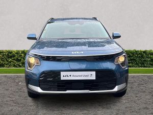 10.25" Supervision colour cluster display, 10.25" touchscreen satellite navigation, Adaptive smart cruise control function (SCC) with stop and go, Apple car play/Android Auto with voice control, Charging indicator on dashboard, Digital clock, Drive mode select (Eco, normal, sport, snow), E-call, Emergency stop signalling system, Forward Collision-Avoidance Assist (FCA) 1.5 - City/Pedestrian/Cyclist/Junction turning, Intelligent speed limit assist, Kia Connect (UVO), Lane Following Assist (LFA), Lane keep assist, Motor driven power steering, Rear parking sensors, Reversing camera with dynamic guide lines, Tailgate, Trip computer with distance/fuel consumption/average speed, 11 kW AC onboard charger, Battery heating system, Front Grille Charging Port, 'Shark fin' mobile antenna, 2 C-type charge port on front seats, 2 Front USB Charge port (one for C-type/one for USB), 6 speakers, Bluetooth with music streaming, DAB Digital radio, Steering wheel mounted controls, Acoustic windshield, All round electric windows with drivers auto up/down function, Auto dimming rear view mirror, Automatic defog system, Automatic headlight control system, Bi-function halogen projector headlights, Black beltline, Black embossed cladding, Body colour bumpers, Body colour door mirrors, Body colour exterior door handles, Electric heated door mirrors, Front and rear silver skid plates, Heated rear windscreen, LED daytime running lights, LED rear combination lights, LED third brake light, Manual folding door mirrors, Rear fog lights, Rear side wing doors, Rear spoiler, Rear wiper, Roof rails, Solar glass rear windows and tailgate, Solar glass windscreen, Standard door scuff plates, Welcome and follow-me home light functionality, Windscreen Washer Level Warning, 12v socket in front, 12V socket in luggage compartment, 3 seat bench in 2nd row, 60:40 split remote folding rear seats, Air filter, All-round height adjustable headrests, Artificial leather centre console storage box, Artificial leather steering wheel, Bulb overhead console, 2nd row and luggage lamp, Centre console cupholder, Cloth upholstery, Driver seat manual adjustment, Driver/passenger sunvisors with illuminated vanity mirrors, Dual zone automatic air conditioning, Front and rear door storage, Illuminated glovebox, Interior door lock/unlock function, ISOFIX Child seat top tethers and anchor fixings, Luggage area load cover, Luggage board, Metal paint interior door handles, Paddle shifts, Passenger seat height adjuster, Seatback pocket - driver, Seatback pocket - front passenger, Shift by wire SBW, Single front passenger seat, Tilt/telescopic adjustable steering wheel, Towing pack - Niro, 3 point seatbelts on all seats, ABS, Automatic unlocking of doors in case of impact, Centre side front airbags, Curtain and side airbags, Drivers knee airbag, Dual shell horn, Electric parking brake with auto hold function, Electronic stability control, Front passenger airbag deactivation, Height adjustable front seatbelts, Hill start assist control (HAC), Manual rear child locks, Rear seat alert system, Traction control, Tyre pressure monitoring system, Alarm system and engine immobiliser, Deadlocks, Engine Start/Stop Button with Smart Entry System, Locking wheel nuts, Visible vehicle identification number, Warranty - 7 Years/ 100,000 miles, Metal paint centre fascia, 17" Alloy wheels, Tyre mobility kit