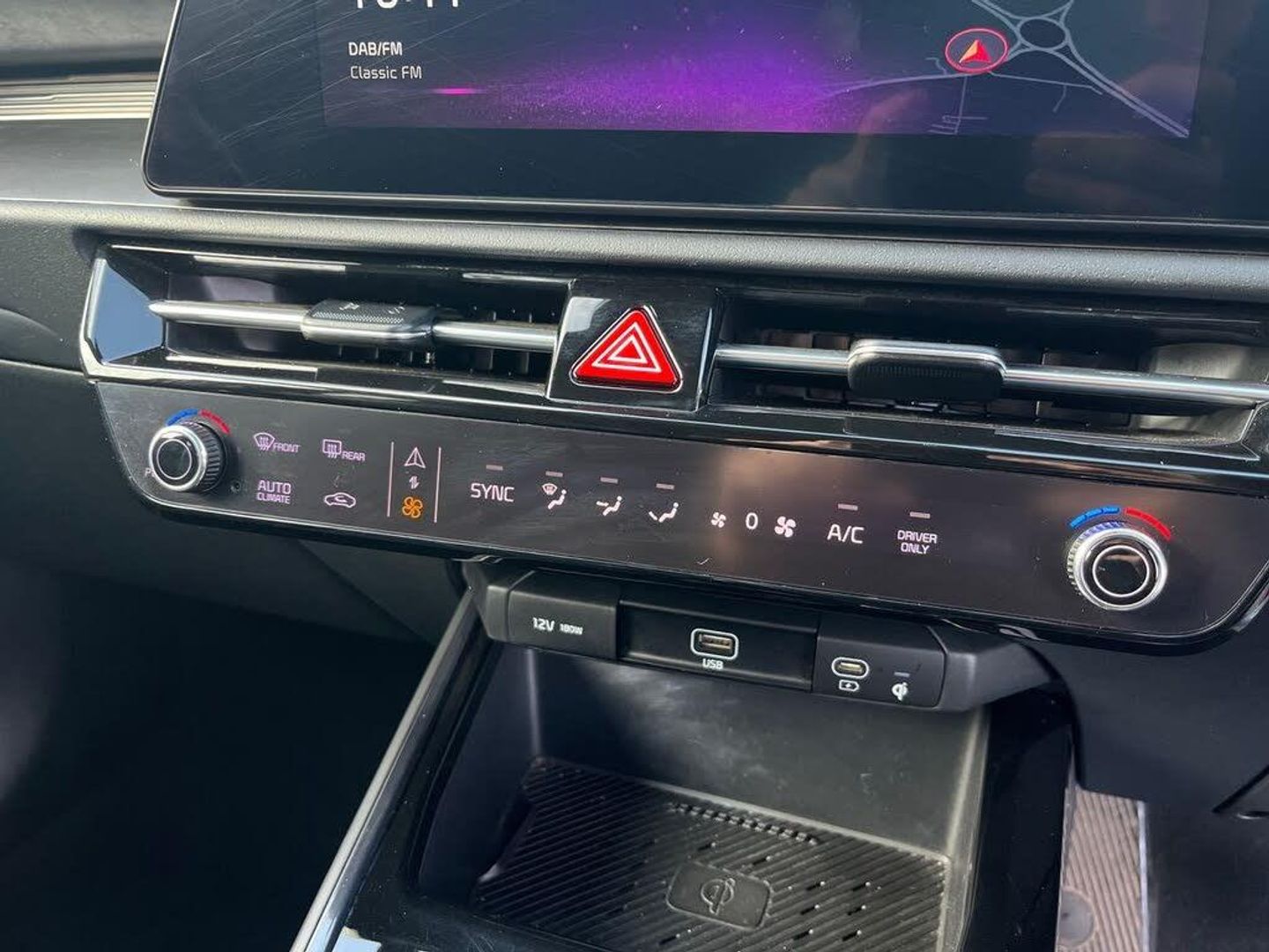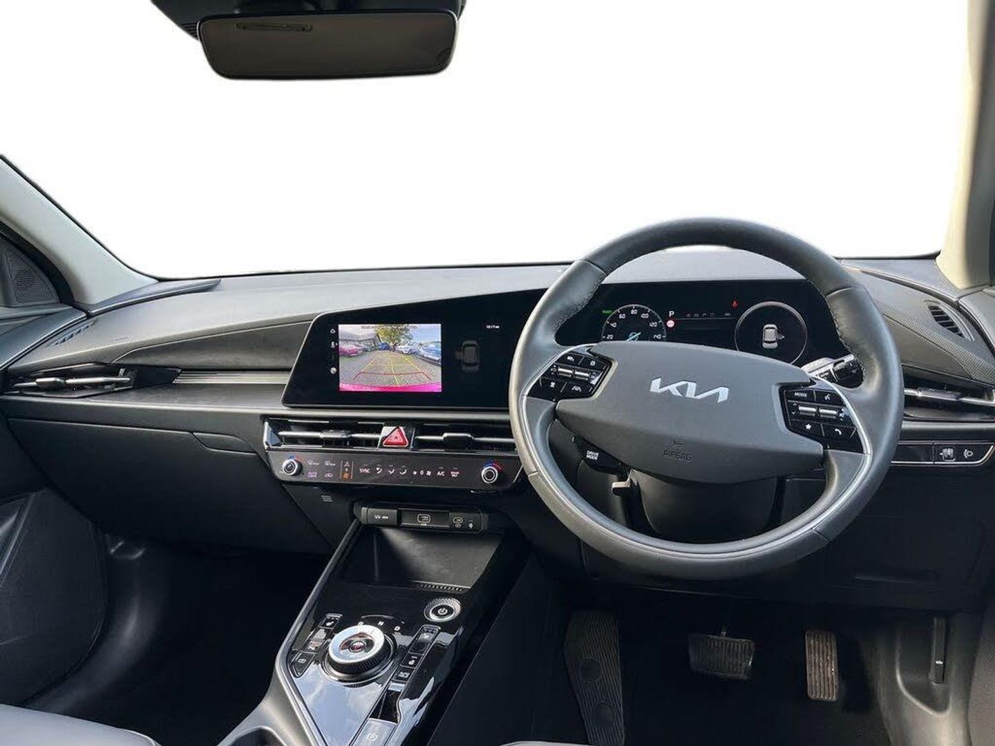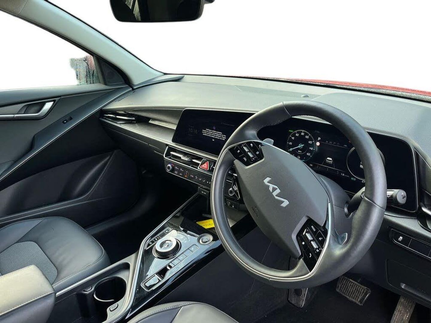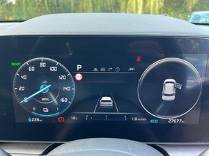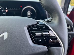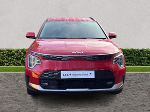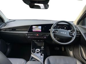10.25" Supervision colour cluster display, 10.25" touchscreen satellite navigation, Adaptive smart cruise control function (SCC) with stop and go, Apple car play/Android Auto with voice control, Blind spot collision avoidance assist, Charging indicator on dashboard, Digital clock, Drive mode select (Eco, normal, sport, snow), E-call, Emergency stop signalling system, Forward Collision-Avoidance Assist (FCA) 1.5 - City/Pedestrian/Cyclist/Junction turning, Front parking sensors, Highway Driving Assist (HDA), Intelligent speed limit assist, Kia Connect (UVO), Lane Following Assist (LFA), Lane keep assist, Motor driven power steering, Rear parking sensors, Reversing camera with dynamic guide lines, Tailgate, Trip computer with distance/fuel consumption/average speed, Wireless Smartphone charger, 11 kW AC onboard charger, Battery heating system, Front Grille Charging Port, Vehicle-to-load (V2L) capability, 'Shark fin' mobile antenna, 2 C-type charge port on front seats, 2 Front USB Charge port (one for C-type/one for USB), 6 speakers, Bluetooth with music streaming, DAB Digital radio, Steering wheel mounted controls, Acoustic windshield, All round electric windows with drivers and front passenger auto up/down and safety function, Auto dimming rear view mirror, Automatic defog system, Automatic headlight control system, Black beltline, Black grille with chrome surround, Body colour bumpers, Body colour exterior door handles, Dual LED headlights (low and high projection), Electric heated door mirrors, Electrically folding door mirrors, Front and rear chrome skid plates, Front fog lights, Gloss Black Cladding, Heated rear windscreen, High gloss black door mirrors, LED daytime running lights, LED rear combination lights, LED third brake light, Privacy glass - Rear windows and tailgate, Rain sensing front wipers, Rear fog lights, Rear side wing doors, Rear spoiler, Rear wiper, Roof rails, Solar glass windscreen, Standard door scuff plates, Welcome and follow-me home light functionality, Windscreen Washer Level Warning, 12V socket in front, 12V socket in luggage compartment, 3 seat bench in 2nd row, 60:40 split remote folding rear seats, Air filter, All-round height adjustable headrests, Artificial leather centre console storage box, Artificial leather steering wheel, Bulb overhead console, 2nd row and luggage lamp, Centre console cupholder, Chrome coating interior door handles, Cloth / Artificial leather upholstery, Driver's power adjustable seat, Driver/passenger sunvisors with illuminated vanity mirrors, Drivers seat power lumbar support, Dual zone automatic air conditioning, Front and rear door storage, Heated front seats, Heated steering wheel, Illuminated glovebox, Interior door lock/unlock function, ISOFIX Child seat top tethers and anchor fixings, Luggage area load cover, Luggage board, Paddle shifts, Passenger seat height adjuster, Seatback pocket - driver, Seatback pocket - front passenger, Shift by wire SBW, Single front passenger seat, Tilt/telescopic adjustable steering wheel, Ventiliation ducts to rear compartment, Towing pack - Niro, 3 point seatbelts on all seats, ABS, Automatic unlocking of doors in case of impact, Centre side front airbags, Curtain and side airbags, Drivers knee airbag, Dual shell horn, Electric parking brake with auto hold function, Electronic stability control, Front passenger airbag deactivation, Height adjustable front seatbelts, Hill start assist control (HAC), Manual rear child locks, Rear seat alert system, Traction control, Tyre pressure monitoring system, Alarm system and engine immobiliser, Deadlocks, Engine Start/Stop Button with Smart Entry System, Locking wheel nuts, Visible vehicle identification number, Warranty - 7 Years/ 100,000 miles, Metal chopped carbon centre fascia, 17" Alloy wheels, Tyre mobility kit