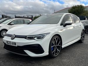 This 2023 Volkswagen Golf R is a truly exceptional example, boasting a full service history and having had only one owner from new. This Euro 6 compliant 2.0 litre TSI petrol engine, paired with a four wheel drive drivetrain, delivers exhilarating performance. It comes equipped with the R Performance Pack, 19 inch Adelaide Black Diamond Turned alloy wheels, and a panoramic sunroof that opens for an enhanced driving experience. Furthermore, the Winter Pack includes heated outer rear seats, and the Park Assist feature makes manoeuvring effortless. A clear vehicle history check and 12 months MOT provided on purchase offer complete peace of mind.Experience the thrill of rapid acceleration, with this Golf R achieving 0 to 62 miles per hour in just 4.7 seconds, a testament to its potent engineering and a clear indication of its superior performance compared to other vehicles in its class. Beyond its impressive speed, you'll appreciate the generous boot space, making it practical for everyday use and longer journeys alike. This Volkswagen Golf R represents a superb blend of dynamic capability, sophisticated features, and excellent provenance.-HugeSpec+PanRoof,1Owner,Superb-JPK Motors are committed to providing quality used vehicles, outstanding service levels & warranties