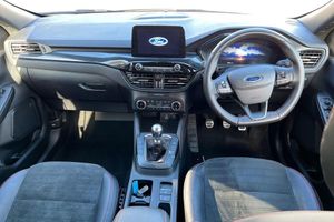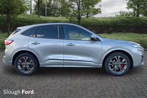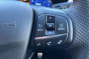 Mini Spare Wheel, Luggage Compartment Mat, Partial Sensico - Rapton Cloth - Black with Red Stitching, Winter Pack, 10-Way Power Adjustable Drivers Seat, 12V Power Point in Floor Console, 12v Power Point in Cargo Area, 12v Socket - Voltage Regulator, 18in Alloy Wheels - 10 Spoke - Rock Metallic, 2nd Row Sliding Seats, 8-Way Manual Passenger Seat including Lumbar Support and Height Adjust, ABS - Anti-Lock Braking System with Enhanced Electronic Stability Control - ESC with Traction Control - Emergency Brake Assist - EBA - Hill Start Assist - Trailer Sway Control, Air Conditioning - Electronic Automatic Temperature Control - EATC, Airbag - Driver and Front Passenger Side, Airbag - Front Passenger Deactivation Switch, Airbags - Driver and Front Passenger, Airbags - Front and Rear Side Curtain, Aluminium - Finish Front Scuff Plates with ST-Line Script, Aluminium Foot Pedals - ST-Line Design, Ambient Lighting, Auto Dimming Rear View Mirror, Auto Wipers, Automatic Door Relocking, Black Roof Rails, Centre Console with Electronic Parking Brake, Child Locks - Manual on Rear Doors, Cruise Control with Speed Limiter, Digital Colour 12.3in Instrument Cluster, Driver and Passengers Sun Visor with Illumination, Dual Exhaust Tailpipes with Unique Brushed Stainless Steel Finish, EPAS - Electric Power Assisted Steering, Electric Parking Brake with Auto Hold, Electrical Charging Point in Second Row, Engine Immobiliser - SecuriLock, Exterior Door Handles - Body Coloured, Ford Easy Fuel System, Ford Keyfree System - Keyless Entry with Ford Power Starter Button, Ford SYNC3 DAB Navigation System, Front Lower Grille - Ebony Black Mesh, Front Seats - 2-Way Manual Height Adjust Passive Head Restraints, Front Seats - Drivers and Passengers Seatback Map Pockets, Front Seats - Sports Style V-shape with High Bolster, Front Upper Grille - Carbon Black Honeycombe Mesh and High-Gloss Black Surround, Front Windows - Laminated Glass, Front and Rear Bumper - Sporty Body Colour with Rear Ebony High-Gloss Insert, Front and Rear Floor Mats with Red Stitching, Front and Rear Parking Sensors, Full LED Headlamps, Gear Shift - Unique Sensico-Trimmed Knob with Satin Aluminium Insert and Red Gaiter Stitching, Glovebox Lights, Handsfree Power Tailgate, Headlights - Automatic Follow Me Home Lighting, Headlights - Automatic High Beam Assist, Headlights - Levelling System - Manual, Headlights - Unique Bending, Headliner - Sports Dark, Heated and Power Folding Door Mirrors with Puddle Lights, High-Mounted Brake Light, Kuga Badge, LED Daytime Running Lights, LED Fog Lights - Front, Lane Keeping Aid with Lane Departure Warning, Large Rear Spoiler, Load Compartment - Lights, Load Compartment - Tie Down Hooks, Load Compartment Carpet, Locking Wheel Nuts, Lower Bodyside Moulding - Body Colour, Lower Door Frame Beltline - Black, Mini Overhead Console with Sunglasses Holder Bin, MyKey, Power Door Deadlocks - Double Locking, Power Door Locks, Pre-Collision Assist with Autonomous Emergency Braking, Quickclear Heated Windscreen, Rear Duct on B-Pillar, Rear Lights - LED, Rear Privacy Glass, Rear Seat - 60-40 Split Folding Seats, Rear Seat Centre Head Restraint, Rear Seats - 2-Way Head Restraint Up-Down, Rear Seats - Folding Centre Armrest with Integrated Cup Holder, Rear Seats - Sliding Seat Adjust Tracks - Fore-Aft, Rear View Camera, Red Brake Calipers, Remote Tailgate Release, Removable Package Tray, Rocker Panel Mouldings - Body Colour - ST-Line Design, ST-Line Badge on Left and Right Side Wings, ST-Line Bodystyling Kit, ST-Line Front and Rear Bumper Moulding - Body Colour, Seat Belt - Drivers - Front Passenger and Rear Seat Belt Reminder Alert, Seat Belts - Front 3-Point Seatbelts with Load Limiter, Seat Belts - Front Height Adjustable, Seat Belts - Rear Retractable Rear Belt - 3-Point All Positions, Seats - ISOFIX Mounting Provision for Child Seats - Outer Seats Only, Selectable Drive Modes, Single Rear Fog Light, Steering Column - Locking Electric, Steering Column - Rake and Reach Adjustment, Steering Wheel - ST-Line Sports-Style Perforated Sensico-Trimmed with Red Stitching, Suspension - Sports, Tailgate Handle - Body Colour, Tether Anchorage - Two Rear Seat Top Tether Anchorage Restraints, Thatcham Category 1 Perimeter and Volume Sensing Alarm, Tow Hooks - Front and Rear, Trip Computer, Tyre Inflation Kit, Tyre Pressure Monitoring System, Upper Door Frame Beltline - Black, Windows - Power Front and Rear with Global Closing, Wiper - Intermittent Rear Window Wiper, Wrong Way Alert, eCall