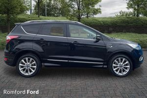 Allen Ford Romford are pleased to offer this as part of our Value Drive Range, boasting exceptionally low mileage for its age, this 2018 Ford Kuga TDCi Vignale presents a compelling proposition. This Four Wheel Drive model, powered by a 2.0L Diesel engine and meeting Euro 6 emissions standards, offers a refined driving experience. Its provenance is further bolstered by an MOT valid until October 2026 and a partial service history, with the last service completed on 2025-10-20 at 45330 miles. Notable features include Keyless Opening with a Hands Free Power Tailgate, Dual-Zone Electronic Automatic Temperature Control for personalised comfort, and a Premium Ford DAB Navigation System with Ford SYNC3, incorporating Bluetooth and a rear camera for seamless connectivity and parking assistance. The Enhanced Active Park Assist, complete with front and rear sensors, makes manoeuvring effortless, while automatic headlights ensure optimal visibility. This Ford Kuga stands out with its remarkably low mileage of just 45331 miles, indicating it has been used sparingly and is in excellent condition for its year. The low CO2 emissions highlight its efficiency, making it a more economical choice compared to many similar vehicles. The combination of its advanced technology, such as the intelligent parking assistance and the comprehensive infotainment system, alongside the comfort features like climate control and keyless entry, positions this Vignale model as a superior option for those seeking a well equipped and well maintained SUV.