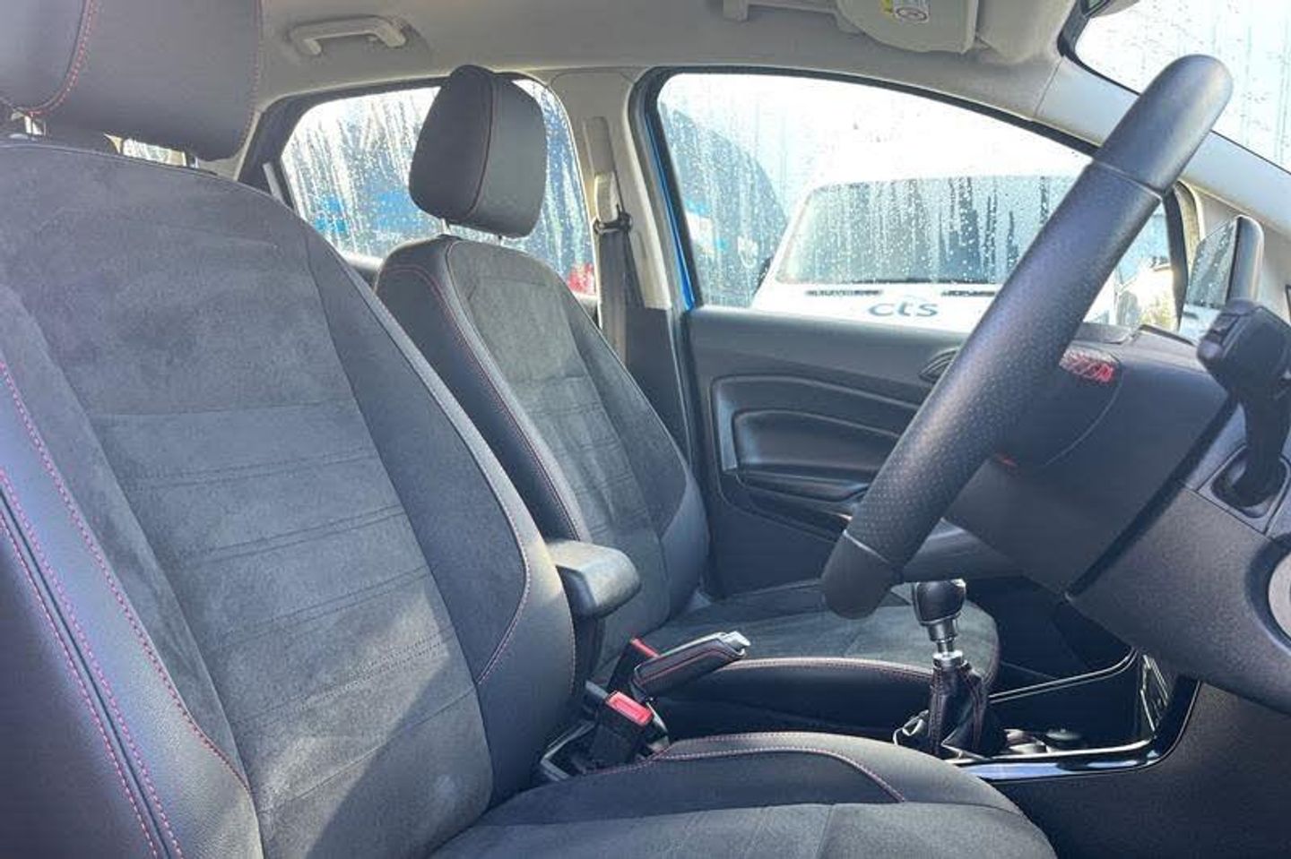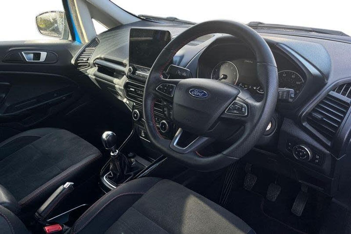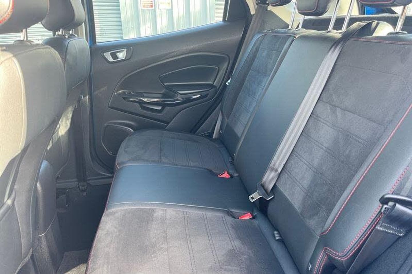 Cruise control, e-Call (emergency call), Easy fuel capless refuelling system, Ford SYNC 3 nav system with DAB radio, 8 screen, emergency assistance, Apple car play/Android auto, 2x USB, 6 speakers, Ford pass connect, Intelligent speed limiter, PAS, Rear parking sensors, Rear view camera, Traffic sign recognition, Trip computer, Auto dimming rear view mirror, Automatic front wipers, Automatic headlights, Black roof rails, Body colour door handles, Body coloured bumpers, Chrome lower window surround, Electrically adjustable and heated door mirrors, Front fog lights, Front grille bars and surround in black, Headlight levelling control, Large rear roof spoiler, LED day running lights, LED third brake light, Power front and rear windows, Puddle lights, Quick-clear heated windscreen, Rear side wing doors, Rear wiper, ST Line body styling kit - Black headlamp bezel, front and rear sport bumpers, body colour lower door claddings, 12V socket in front and rear, 3 seat bench in 2nd row, 60/40 split rear seats, Ambient lighting, Centre console with sliding front armrest, Cooled glovebox, Courtesy lights with map reading light, Driver seat height/lumbar adjust, Driver's side glovebox, Driver/passenger sunvisors and lidded vanity mirrors, EATC - Electronic Auto Temperature control, Folding grab handles, Front head restraints, Front seat back map pockets, Illuminated glovebox, Illuminated luggage compartment, Isofix system on outer rear seats, Luggage compartment carpet, Neosuede/Partial sensico leather upholstery, Overhead console with sunglasses holder, Rake adjustable rear seats, Reach + rake adjustable steering column, Rear headrests, Sensico trimmed steering wheel, handbrake and gearshift gaiter with red stitching, Single front passenger seat, ST-Line Front floor mats with red stitching, Stainless steel sports pedals, Storage drawers under front seats, Tie down hooks, Variable boot floor, 3x3 point rear seatbelts, ABS, Autonomous emergency braking, Child locks on rear doors, Curtain airbags, Driver airbag, Drivers knee airbag, Electronic Stability Programme with hill launch assist, Front passenger airbag deactivation, Front side airbags, Passenger airbag, Pre collision assist system with AEB, Seatbelt reminder for driver and front passenger, Traction control, Tyre pressure monitoring system