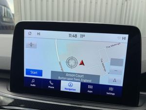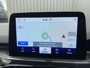 Driver impairment monitor, Ford easy fuel, Ford SYNC 3 with 8" colour touchscreen, App Link, andriod auto/apple carPlay and navigation with Ford pass connect, Front and rear parking sensors, Intelligent speed assist, Lane keeping aid with lane departure warning, Mobile phone wireless charging pad, Power assist steering, Selectable drive modes, Auto dimming rear view mirror, Auto headlamps with high and low beam, Auto wipers, Black roof rails, Front LED fog lights with cornering function, Full LED headlamps, Large rear spoiler, LED daytime running lights, LED rear lights, Power folding heated door mirrors with puddle lights, Power front/rear windows with global close, Privacy glass, Quickclear heated windscreen, ST Line body styling kit with unique front and rear fascia and bumper, rear painted diffuser, front painted skid plates, dark mesh upper grille, ST Line front scuff plates, Twin exhausts, 2nd row sliding seats, 8 way manual passenger seat including lumbar support and height adjust, Alloy pedals, Ambient lighting, Centre console with electronic parking brake, Dark headlining and pillars, Dual electronic automatic temperature control, Flat bottomed leather steering wheel in sensico with red stitching, Front and rear head restraints, Rear charging point, Sensico partial premium leather upholstery, Sports seats, ST Line front and rear floor mats, Unique ST Line leather gear knob, Engine immobiliser, Keyless entry, Keyless start with 'Ford Power' starter button, Locking wheel nuts, Remote powered central double locking doors, Thatcham category 1 alarm