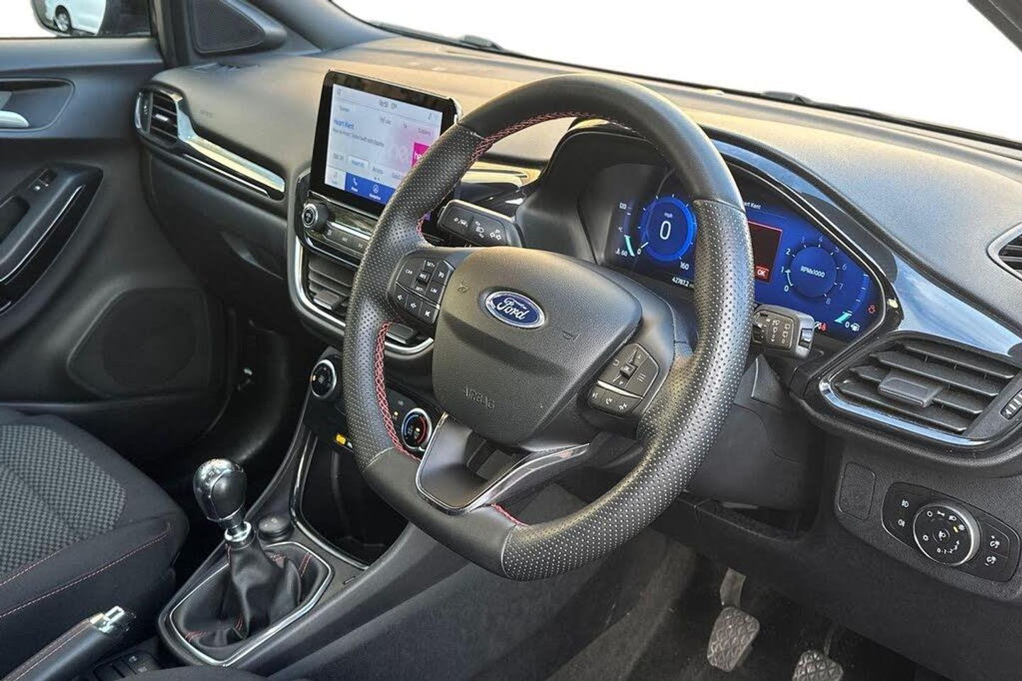 Cloth - Ebony with Red Stitching, 17in Alloy Wheels - 5x2 Spoke - Black Machined Finish, ABS - Anti-lock Braking System, Acoustic Laminated Windscreen, Active Grille Shutter, Automatic Dimming Rear View Mirror, Automatic Headlights with Rain-Sensing Wipers and Auto High Beam, Centre Console - Premium with Openable Stowage Area with USB Connectivity - 2 Cupholders and 12v Power Point, Courtesy Lights - Ambient LED Courtesy Lighting - Single Colour, Cruise Control with Intelligent Speed Assist, Drivers Manual 4-Way Seat Adjustment with Manual Lumbar Adjust, ESC - Electronic Stability Control and Hill Start Assist, Ecoboost Hybrid Tailgate Badge, Electric Windows - Front and Rear, Emergency Brake Warning - Automatic Hazard Warning Lights, First Aid Kit Strap, Floor Mats - Front and Rear, Ford MegaBox Extended Bootspace, Ford Power Starter Button, Ford SYNC 3 Navigation, Front Bumper - Unique ST-Line Sport Design - Body Colour, Front Fog Lights with Cornering lights and LED Rear Lamps, Front Seats - Sports Style, Full Digital 12.3in Instrument Cluster, Gear Knob - Aluminium, Handbrake - Black Sensico Trimmed with Stitching, Headliner - Deluxe, Instrument Panel - High Level, Intelligent Speed Assistance, Lane Keeping Aid with Lane Departure Warning, Large Rear Spoiler - Body Colour with Centre High Mounted Stop Light, Locking Wheel Nuts, Lower Bodyside Moulding - Body Colour, Manual Air Conditioning, Passengers Seat - 2-Way, Post Collision Braking, Power Steering, Power-Foldable Heated Door Mirrors with Puddle Lamps, Pre-Collision Assist with Autonomous Emergency Braking and Pedestrian-Cyclist Detection, Projector Headlamps with LED Daytime Running Lights, Puma Badge, Quickclear Heated Windscreen, Rear Bumper Body Colour - Diffuser, Rear Parking Sensors, Rear Seats - 2-Way Head Restraint Up-Down, Rear Seats - Second Row 60-40 Folding Seats, Remote Central-Double Locking, Restrain Device Pack, ST-Line Badge, ST-Line Body Styling Kit, ST-Line Flat-Bottomed Leather Steering Wheel with Unique Red Stitching, Selectable Driving Modes - Normal - Eco - Sport - Slippery and Trail, Soft-feel Gearshift Boot with Red Stitching, Speed Limiter, Sports Suspension, Tailgate - Manual, Thatcham Alarm, Traction Control and Emergency Braking Assistance, Trip-Fuel Computer, Tyre Inflation Kit, Tyre Pressure Monitoring System - TPMS