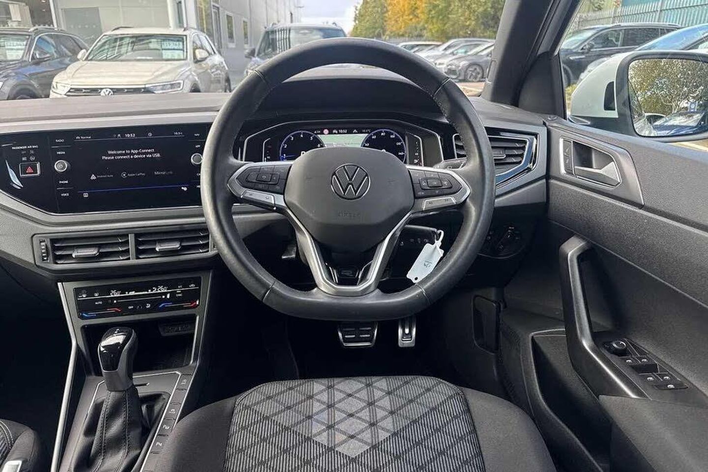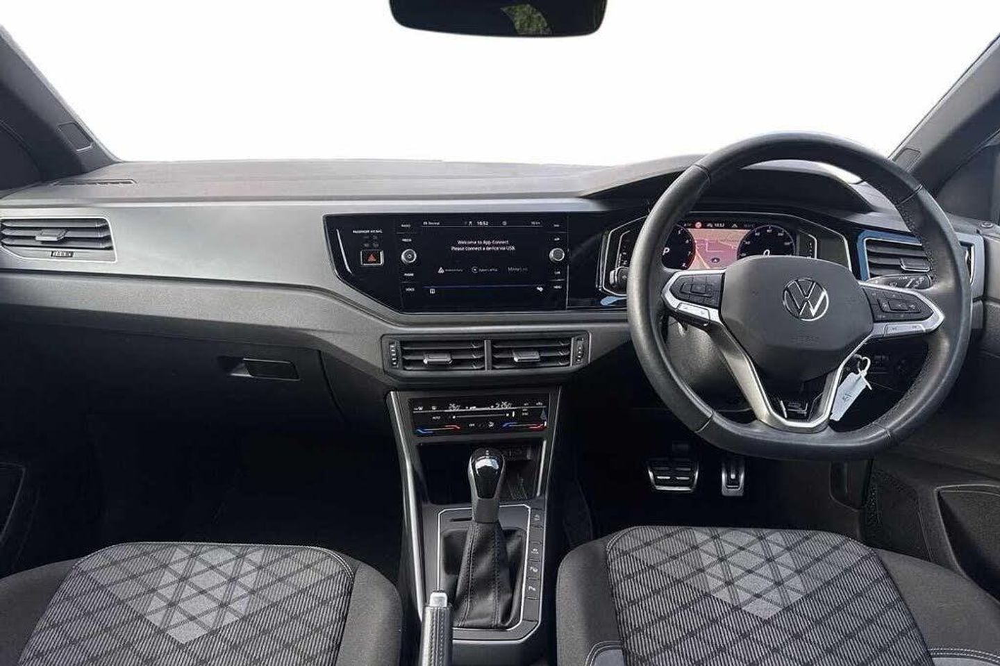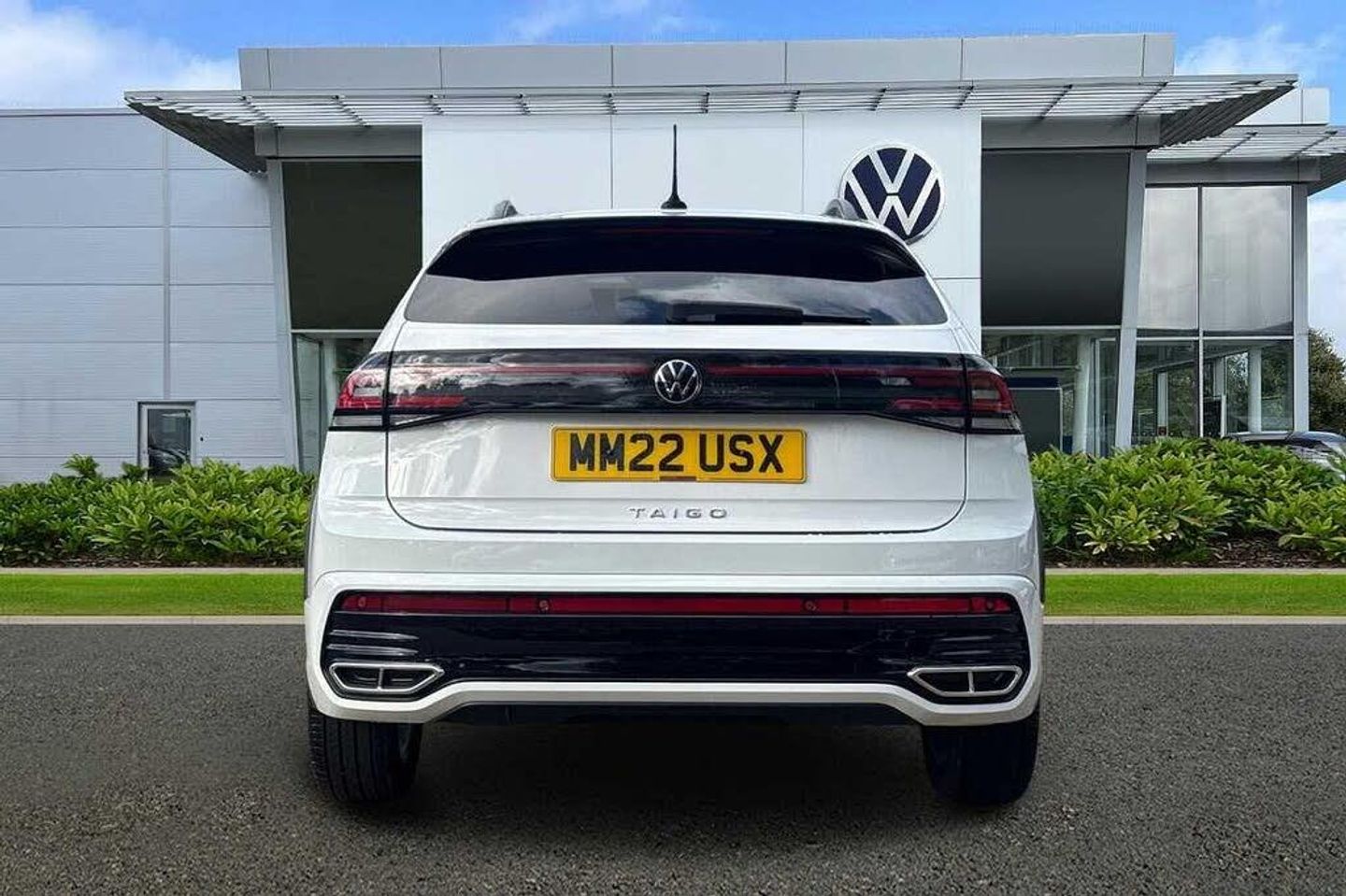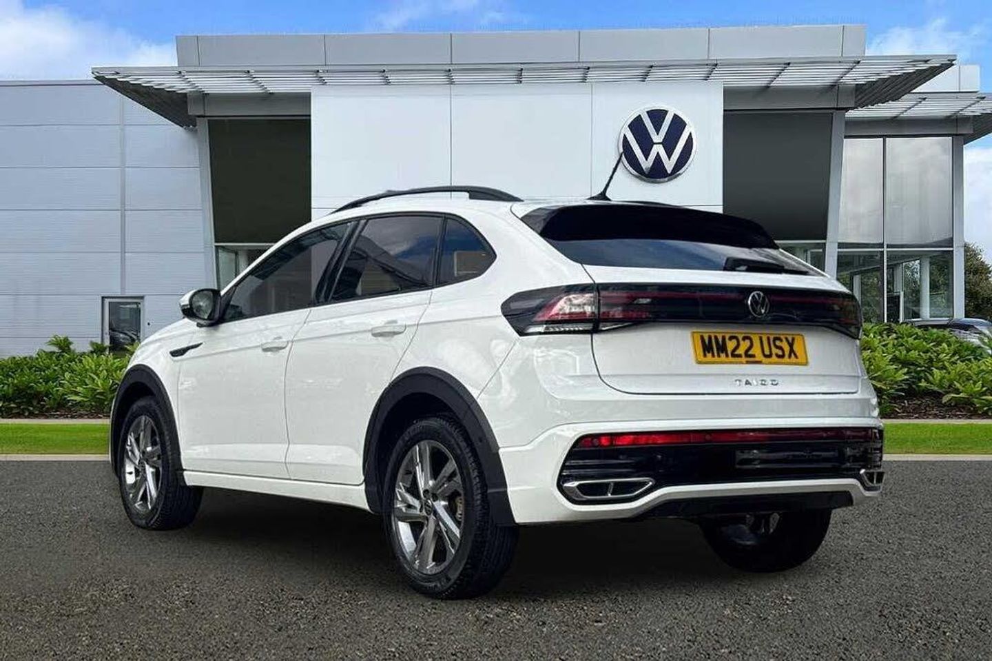 Special solid - Pure white, Electric windows, Rear wash/wipe with intermittent wipe setting, Body coloured bumpers, Body coloured exterior mirror housings and door handles, Bumpers in R-Line style, External USB type C socket and charging sockets, Front scuff plates with R-Line logo, Rear side wing doors, Ambient lighting with logo projection, Auto headlights, Front fog lamps with cornering function, Headlight range control, LED headlamps, LED rear combination lamp, LED third brake light, Rear fog light on one side, reversing light on both sides, Electronic stability control, Front and rear disc brakes, Hill start assist, Adaptive cruise control, Driver alert system, Driving profile selection, Power Steering, Aspherical driver's exterior mirror, Left convex exterior mirror, Power folding adjustable/heated exterior mirrors and front passenger exterior mirror lowering function, 2 x 3-point seatbelts/outer rear seats with ECE label, 3-point seat belts in front with pretensioner and height adjustment, 3-point seatbelt for centre rear seat, Driver and front passenger airbags with front passenger airbag de-activation, front side and curtain airbags, Driver and front passenger safety-optimised head restraints, Extended and predictive pedestrian/ cyclist protection, Front curtain and side airbags with center airbag, Manual rear child locks, Single tone horn, Tyre pressure loss indicator, Black carpets, Front + rear carpet mats, Air care climatronic air conditoning system with active combination filter and 2-zone temperature control, 12V socket in centre console, Black roof lining, Chrome bezel for instrument cluster, vents, door handles + gear shift, Front centre armrest, Height and reach adjustable steering wheel, Karoso artvelours cloth upholstery, Leather trimmed gear knob, Leather wrapped multifunction steering wheel, Luggage compartment floor, Seat covers in grey + titanium black, Stainless steel pedals, Storage compartment under front seats, 2 front reading lights, Front footwell illumination, Interior ambient lighting and surround lighting, Luggage compartment light, XDS electronic differential lock for improved traction and handling, Sun visors with illuminated vanity mirrors, App-Connect including App-Connect Wireless, Wireless Charging including Bluetooth, Digital radio reception (DAB+), Diversity antenna for FM reception, WeConnect plus, Digital cockpit pro - 10.25'' high resolution TFT dash display screen with customizable menus and information, e-Call (emergency call), Travel assist including emergency assist, Washer fluid level indicator, Start-stop system with battery regeneration (recuperation - energy recovery during braking), Grey anodised matte decorative inserts in dash and front door panels, 3 rear head restraints, 3 seat bench in 2nd row, Child seat anchor for child seat system i-Size, 2x top tether and child seat anchor in front on front passenger side, Driver and front passenger seat height adjustment, Front sports comfort seats, Lumbar support for driver's and front passengers seat, Single front passenger seat, Split folding backrest with centre armrest and unsplit rear seat bench, Chrome Package - Taigo, Drivers assistance pack - Taigo, Light and Sight pack including High beam assist - Taigo, Anti-theft alarm system with interior monitoring, backup horn, and towing protection, Anti-theft wheel bolts, Low rolling resistance tyres