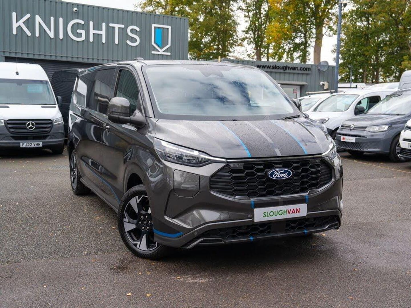 13in Touchscreen, 17in Alloy Wheels - Sport Directional-Spoke in Matte Black, 2 Remote Keys, 5G Embedded Modem, ABS - Anti-lock Braking System, AECS NO SMS - Roll Detect 2G, Alcohol Interlock, Automatic Windshield Wiper, Body Colour Rear Bumper, Body Coloured Exterior Mirror Finish, Bumper - Body Colour Front Bumper, Courtesy Light, Daytime Running Lamps, Drivers Airbag, Dual Power Mirrors - Auto-Power Fold and Heated, Dual Zone Automatic Air Conditioning, ESC - Electronic Stability Programme, Electric Windows - Power Front with Driver-Passenger One-Touch, Fixed DSS LED Headlamps with Auto High Headlamps, Front Windshield Defroster - Quick Clear, Full Height Polypro Interior Trim Panels, Full Metal Bulkhead, HLA - Hill Launch Assist, Hinged Rear Cargo Door, Hood Accent Stripes, Kerbside Side Load Door, Keyless Entry, Keyless Start, LED Taillamps, Load Compartment - Tie Down Loops x8, Lockable Glovebox, Locking Wheel Nuts, Moulded Load Floor Liner, PHEV Petrol Tank - 63L, Passenger Airbag, Power Door Deadlocks - Double Locking, Rear Spoiler, Regular Van Standard Unlocking, Reversing Camera Pack - DAT Pack 2, SYNC 4, Sensico Gear Shift Knob, Sensico Steering Wheel, Single Phase Charge Cord, Soft Close Assist - Assists in the Final Close Action of the Side Load Door, Sport Complete Dual Passenger Seat - Seat Pack 52, Super Bright Load Compartment Lights, Thatcham Category 1 Alarm, Tinted Glass Complete, Traction Control - TC, Trailer Sway Control, Tyre Pressure Monitoring System - TPMS, Tyre Repair Kit, USB - AUX Power Socket, Wireless Charging, 19in Alloy Wheels - Sport Directional-Spoke Machined in Black, Cloth - Ripple Style with Digital Aqua Accents, Magnetic, Steering Wheel - Heated - Sensico-Wrapped