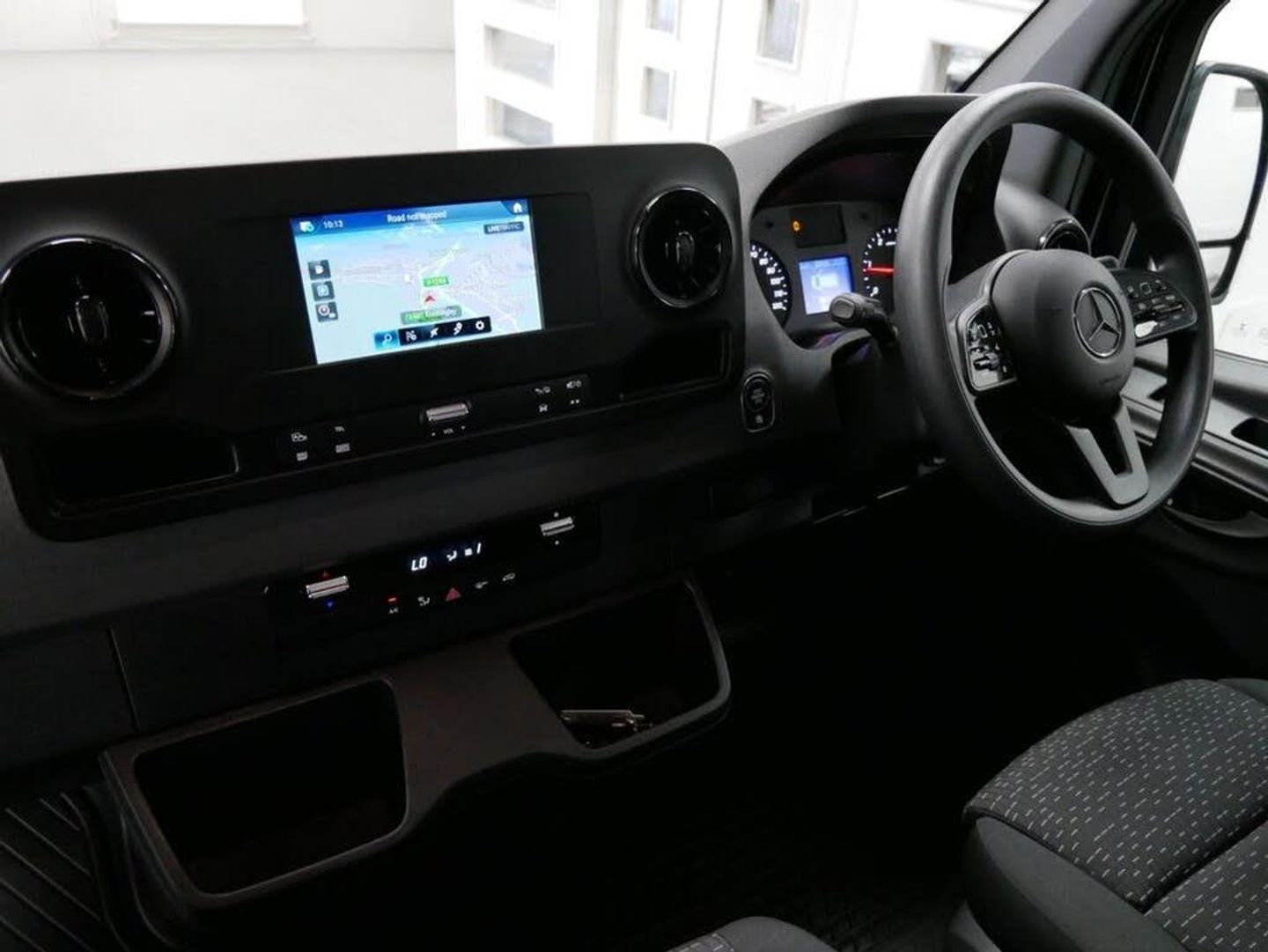 16in Steel Wheels, 270 Degree Double-Wing Rear-End Doors - Opening to Side Wall, ABS - Anti-Lock Braking System, ATTENTION Assist, Active Brake ASSIST, Adaptive Brake Lights, Adaptive ESP - Electronic Stability Programme, Additional USB-C, Airbag - Driver, Alternator 14V - 230A, Anti-Theft Protection Alarm, Armrest for Drivers Seat, Breakdown Management, Bulkhead - Full-Width Partition, Comfort Driver Seat, Comfort Overhead Control Panel, Communication Module - LTE - For Digital Services, Crosswind Assist, Cruise Control, DAB Digital Radio Tuner, Doors - Sliding Side Load Door on Left Side, Double Co-Driver Seat, Double Locks, Electric Windows - Front, Entrance Handle on Right-hand Rear Corner Pillar, Fuel Filter with Water Separator, Full Wheel Covers, Grab Handle - Load Compartment Sliding Door at Partition, Heat-Insulating Glass with Filter Band on Windscreen, Heavy Duty Battery - 12V 92Ah, Hill Start Assist, Integrated Connected Alarm System, Interior Courtesy Light Door Operated, Jack, Jump Start Contact, Keyless Start, Lighting - Headlight Assistant, Lights for Left Hand Traffic, Longitudinal Member Reinforcement, MBUX Multimedia System with 7-inch Touch Screen, Mercedes-Benz Emergency Call System - eCall, Multifunction Steering Wheel, Outside Air Temperature Gauge, Parking Package with Reversing Camera, Power-Assisted Steering, Pre-Installation for Switch Panel, Prewiring for Parameterizable Special Module - PSM, Radiator Grille Frame in Vehicle Colour, Seat Belt Reminder - Driver, Seat Belt Reminder for Co-Driver Seat, Shelf Above Windscreen, Spare Wheel, Spare Wheel Bracket Below Frame End, Steering Wheel - Rake and Reach Adjustment, Storage - Hinged Lid for Stowage Compartment, Storage Compartment Underneath Cockpit, Summer Tyres, Suspension - Stabilisation Level I, TEMPMATIC Semi-Automatic Climate Control System, Terminal Strip for Electrical Connection, Third Brake Light, Tyres 225-65R16 C, Tyres Resistance-Optimised, Tyres without Name of Make, USB-C Socket - 5V, USB-C and Bluetooth Interface - WIFI Hotspot -Apple CarPlay - Android Auto and a DAB Radio, Uprated Front Axle Weight Capacity, VIN Visible from Outside, Wood Flooring