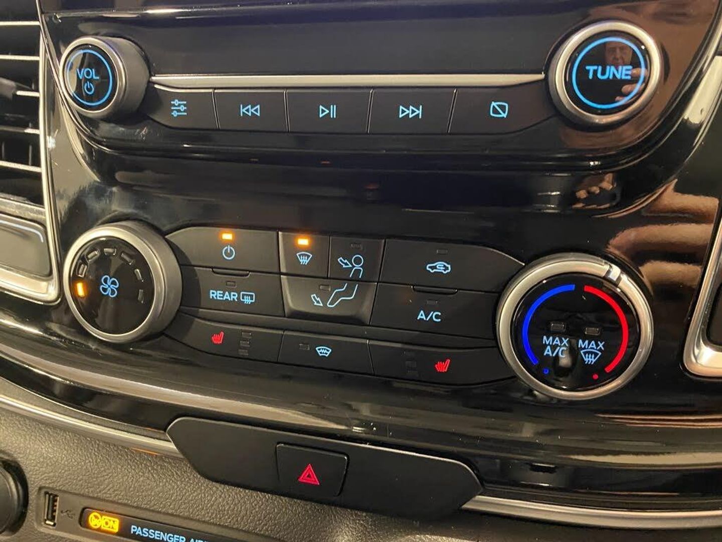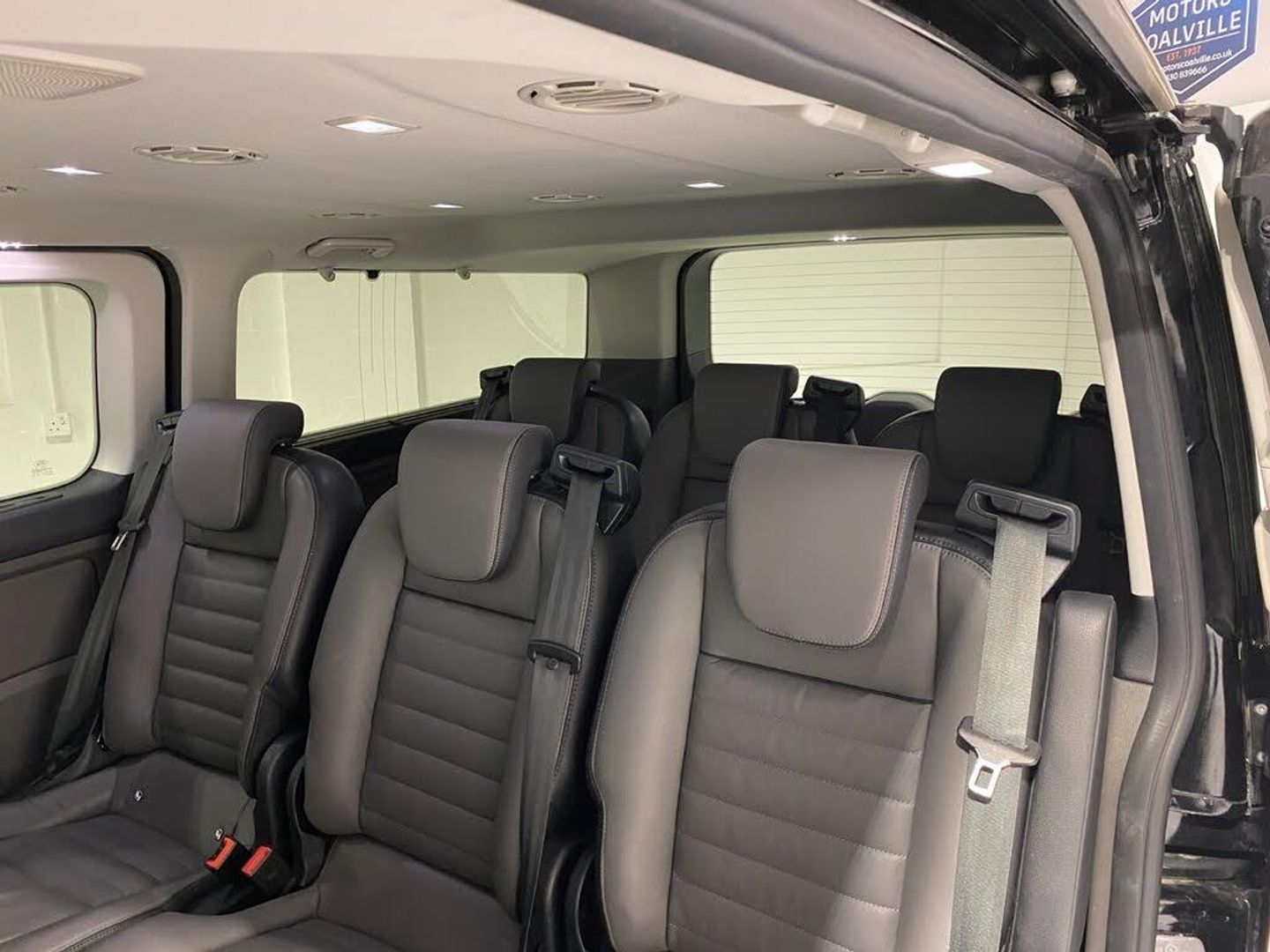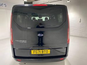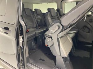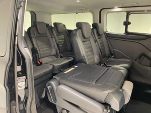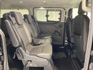 Embedded modem, PAS, Trip computer, Tyre pressure monitor, Voice control system, 10 speakers, Audio controls mounted on steering wheel, Aux input socket, 'Guide me home' headlights, 2 Speed wipers with electric wash, 3rd Row left and right fixed windows, Body colour door and tailgate handles, Body colour exterior mirror finish, Body colour front and rear bumpers, Door lenght running boards, Front and rear wheel arch extensions, Front mud flaps, Heated rear window, Low roof line, Power front windows with one shot up/down, Rain sensing wipers, Rear cargo liftgate door, Trans linked rear washer/wiper, Twin sliding side load doors, Wide bodyside body coloured moulding, Carpet floor covering in passenger compartment, Coat hook, Driver and passenger storage bins on facia with lids, Facia mounted tray with pen holder and cupholders, Front door map pockets, Full moulded headlining, Header mounted courtesy lights - 2 map lights, Header mounted package tray, Height adjustable head restraints, Height and reach adjustable steering wheel, Illuminated footwell, Isofix child seat attachments - centre and offside 2nd row seats, Leather gearknob, Load compartment interior light, Lockable glove box lid, Manual air conditioning, Map reading lights, Passenger sunvisor, Passengers side open storage, Rear armrest, Rear seat climate control, Rear side window blinds for 2nd and 3rd row, Reclining rear seats, Tool kit, Twin bottle holders, Colour keyed exterior pack - Tourneo custom, Interior trim accent pack E - Tourneo custom, 3 point seatbelts for all seats, Driver and passenger seatbelt reminder, Driver's airbag, Front passenger airbag with deactivation, Front seatbelt pretensioners, Anti-theft perimeter alarm system, Category 2 immobiliser, Configurable Unlocking, Door entry remote control unit 2 Fobs key, Locking wheel lug nut, Remote central locking, ABS, Alternator - 150A, Battery saver, Brakes - ESP/HLA/FBS, Diesel particulate filter, Power socket in drivers stowage bin, Rear auxilliary power point socket, Roll stability control, Side wind mitigation, 17" alloy wheels