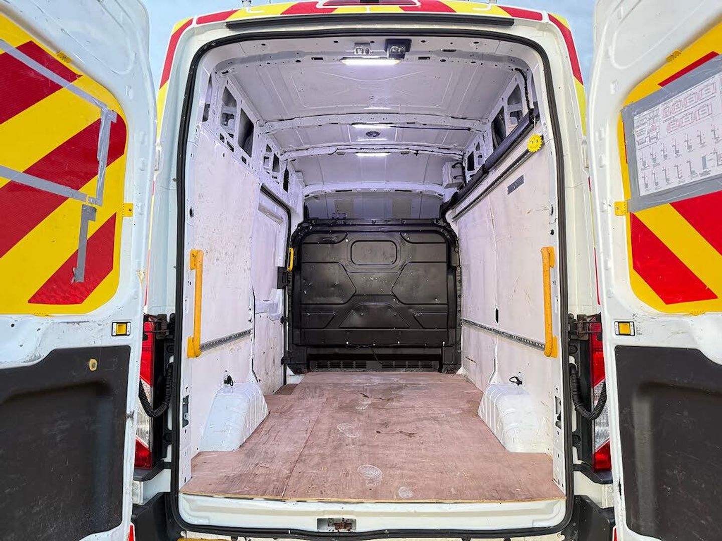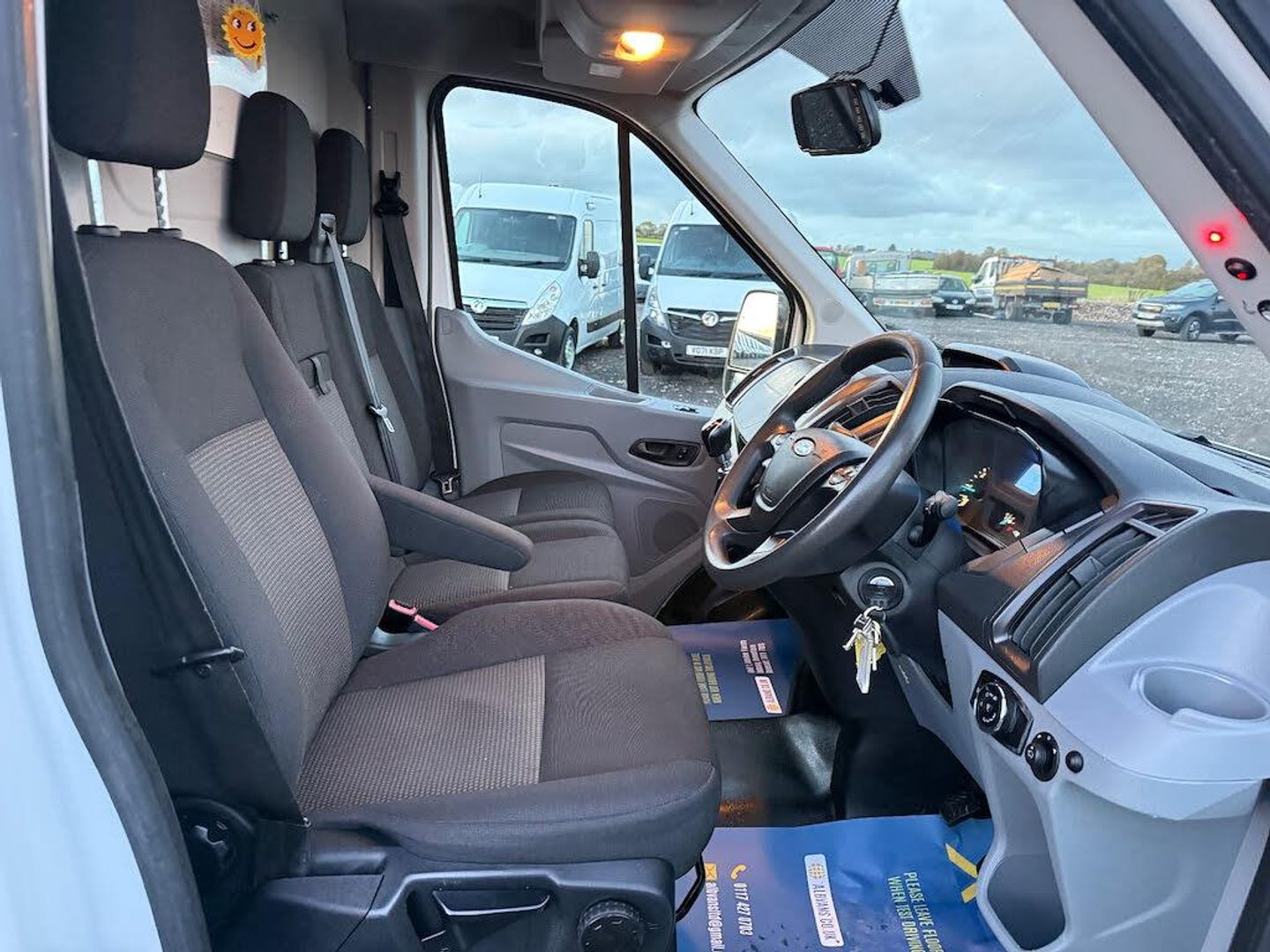 16in Steel Wheels,8-Way Driver Seat with Fore-Aft - Recline -Height and Tilt,Airbags - Driver,Anti-Lock Braking System - ABS with Electronic Brake Force Distribution - EBD,Armrest - Drivers,Assist Handle - Located on B-pillar,Auxiliary Connection Point - 1x12V - 60A Connection Located Under Driver Seat Pedestal,Battery - Cold Start -20 Degree C,Battery - Single Absorbent Glass Mat - AGM,Bodyside Mouldings - Wide - Self Colour,Bottle Holder - Twin 2 litre Bottle Capacity - Facia-Mounted,Bulkhead - Full Steel,Bumper - Front Body Colour - Partial,Courtesy Lights - Header-Mounted Front with Theatre Dimming,Curve Control,Daytime Running Lamps,Door Handles - Self Coloured,Door Mirrors - Blind Spot Eliminator and Integrated Side Indicator,Door Mirrors - Manual Adjust,Doors - Passengers Sliding Side Load Door and Step,Doors - Unglazed Rear Doors - Hinged for 180 Degree Opening - Positive Stop At 90 Degree,Driver Seat Belt Minder,Dual-Circuit Front and Rear Discs with Self-Adjusting Servo-Assistance and ABS,EBA - Emergency Brake Assist,EDCC - Electronic Dynamic Cornering Control,ESC - Electronic Stability Control,Emergency Brake Warning,Floor Covering - Cab Easy-Clean Rubber,Ford Connected Audio System,Ford Easy-Fuel Capless Refuelling System,Ford Eco Mode - Driver Information System,Front Grille - Sterling Grey,Gearshift Indicator Light,Glovebox with A4 File Storage,Headlights - Courtesy Delay,Headlining - Cab - Moulded,Heater - Positive Thermal Coefficient - PTC,Hill Start Assist,Immobiliser - Safeguard Passive Anti-Theft System - PATS - Insurance-Approved Category 2 Immobiliser,Interior Lighting - Battery Saver - 30min,LAC - Load Adaptive Control,Less Easy Clean Floor,Less Steel Spare Wheel,Liftgate - Cargo Door Handle - Self Colour,Load Compartment - DIN 75410 Compliant Tie-down Loops,Loadspace Compartment Light,Locks - Audio Mislock Feedback - Audible Signal if a Door is Ajar When Locking Activated,Locks - Auto Locking on Drive-Away - Doors Automatically Lock at 8 kmh or 5 mph,Locks - Auto Relocking - Doors Relock after 45 Seconds if no Door is Opened,Locks - Configurable Unlocking,Locks - Key Operated Bonnet Release,Locks - Power Door Deadlocks - Shielded with Strengthened Mountings,Locks - Remote Control Central Locking with One Key Fob,Mud Flaps - Rear,Overhead Storage Shelf,Power Point Socket - 2x 12V,Power-assisted Steering - PAS,RSC - Roll Stability Control,Rear Bumper - Self Colour with Integrated Step,Recirculation Heater - Front,Seat Belts - 3-Point Diagonal Inertia Reel - All Seats,Seat Tray-Table,Seats - Dual Passenger,Side Wind Mitigation,Single AGM Battery,Standard Duty Alternator - 150amp,Steering Column - Rake and Reach Adjustment,Steering Wheel - 4 Spoke Polyurethane,Storage - Drivers Side - Storage Compartment on Facia Top with Lift Up Lid,Storage - Front Door Map Pockets,Storage - Underseat Stowage Compartment Under Dual Passenger Seat,Suspension - Front Independent MacPherson Struts -Variable Rate Coil Springs - Stabiliser Bar - Gas-Pressurised Shock Absorbers and Rear Leaf Springs,Traction Control - TC,Trip Computer,Tyre Inflator Kit,Vehicle Identification Number - VIN - Visible,Water in Fuel Filter with Sensor,Wheel Covers - Half Caps,Windows - Electrically-Operated Front with One-Touch on Drivers Side,Wipers - Front Variable-Intermittent with Electric Wash