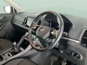 Step into style with this black Skoda Karoq, featuring striking 17in alloy wheels and advanced LED headlights for a modern touch. Enjoy seamless connectivity with Apple CarPlay, SmartLink and Bluetooth, plus convenient keyless entry and keyless start. Stay comfortable all year round with dual zone digital climate control and air conditioning. The integrated sat nav keeps you on track, while the digital cockpit puts essential information right in front of you. A superb SUV for every journey. 1 service recorded, last serviced on 22/10/2025 at 4,751 miles. MOT to 22/10/2026. Visit our website for service history, online valuation, full vehicle specification plus multiple images. This vehicle is VAT qualifying. Any feature/option specified here is from 3rd party data. We cannot guarantee the accuracy of any specification supplied by a 3rd party. We recommend that you physically check the specification of the vehicle on site prior to purchase. This information does not form part of the buying contract. Terms & Conditions apply. We have over 2,000 cars available from our 10 national branches, check our website to see all our stock. Our Trustpilot rating is 4.4/5 with over 9,000 reviews.