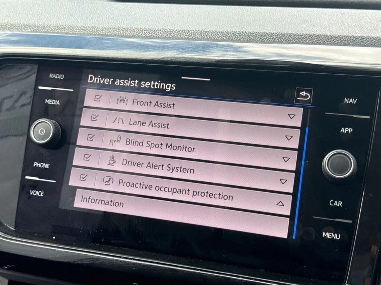 'Lights On' Reminder warning buzzer,Adaptive cruise control including front assist, forward collision warning, autonomous emergency braking, speed limiter,Blind spot monitoring,Bluetooth telephone and audio connection for compatible devices,Car information display,Digital cockpit,Driver alert system,eCall emergency call system,Lane assist,Low washer fluid warning light,Multifunction computer with visual gear change recommendation for fuel consumption,Operating permit alteration,Power assisted speed sensitive steering,Speedo, rev counter, electronic odometer, trip, service interval display, exterior temperature and fuel gauge,Stop/start system,Tailgate,Warning sound and light for doors and tailgate open,Warning sound and light for front seatbelts unfastened,We Connect Go Dongle,Wireless Car net app connect with Apple CarPlay, combined functionality of Apple CarPlay/Android Auto and MirrorLink,Battery regeneration during braking,Misfuel prevention device,2x USB connection with USB charging sockets and in rear centre console,DAB Digital radio receiver,Diversity antenna for FM reception,Multi device interface (MDI) with USB connection,Music playback - MP3, WMA and AAC files,Premium USB cable for Apple or Android smartphone compatibility,Simultaneous pairing of 2 compatible mobile devices,Title and cover art display,Automatic hazard lights activation under emergency braking,Black door mirrors,Black roof rails,Body colour door handles,Body coloured bumpers,Dusk sensor + automatic driving lights,Electrically foldable, adjustable and heated door mirrors with reverse activated kerb view adjustment on passenger's side,Front and rear electric windows,Front fog lights with static cornering function,Galvanised body,Heated rear window,LED third brake light,Lower door sills and door pillars in black,Radiator grille with high gloss surface and chrome strip,Rear fog light on one side, reversing light on both sides,Rear lights incorporating LED technology,Rear side wing doors,Rear tinted glass 65% approx light absorbing from B pillar backwards,Rear window aerial,Rear windscreen washer and wiper with interval delay,Reflectors in all doors,Tailgate with integrated roof spoiler,Windscreen wipers/ intermittent wipe + 4 position delay,12V Accessory socket in centre console,3 rear head restraints and 3 rear three point seat belts with ECE label,3 seat bench in 2nd row,60/40 split folding rear seat backrest,Comfort front sport seats,Diag cloth upholstery,Drawer under drivers seat,Driver and front passenger sunvisor with vanity mirror,Driver's sunvisor with ticket holder,Dust and pollen filter,Front + rear carpet mats,Front and rear reading lights X 2,Front centre armrest with storage compartment,Front seat back storage pockets,Front seats with adjustable lumbar support,Glovebox,Heating and fresh air system with 4 stage blower,Height/reach adjust steering wheel,Instrument lighting white adjustable panel illumination,Interior light with delay,Isofix child seat preparation for 2 rear child seats,Luggage compartment cover,Luggage compartment lighting,Manual air conditioning,Moveable and foldable Rear bench seat,Single front passenger seat,Storage compartment in drivers and front passengers door,Three spoke multi-function leather trimmed steering wheel and gearknob,3-point seat belts in front with electric tensioner + height adjustment,Anti-lock Braking System (ABS) with Hydraulic Brake Assist (HBA),Automatic post collision braking system,Driver and front passenger safety-optimised head restraints,Drivers and Front Passengers airbags with front passengers airbag deactivation switch,ESC with EDL, ASR, EDTC and trailer stabilisation function,Front and rear curtain airbags,Front disc brakes and rear drum brakes,Front seat side impact airbags,Hill start assist,Pre crash preventive occupant protection,Proactive passenger protection system in combination with front assist,Rear door child safety locks,Rigid safety cell with front and rear crumple zones,Single torn horn,Tyre pressure loss indicator,Volkswagen roadside assistance,Alarm with interior protection and deactivation via infotainment system,Child security locks in rear doors,Electronic engine immobiliser,Remote tailgate unlocking using key fob,Decorative inserts transition high gloss black/platnium grey,17" Manila black diamond turned surface alloy wheels + anti theft wheel bolts,Breakdown kit,Light and Sight Pack,Pure White