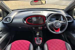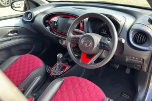 18in Alloy Wheels - Glossy Black with Coral Red Inserts 3-Spoke Leather Steering Wheel 4.2in Colour Multi-Information Display Screen 9in HD Toyota Smart Connect Multimedia System ABS - Anti Lock Braking System with Emergency Brake-Light System - EBS Adjustable Speed Limiter -ASL- Switch on Steering Wheel Analogue Speedometer Audio Switches on Steering Wheel Auto Headlights Auto Wipers Automatic Air Conditioning Automatic Headlight Cut-Off Automatic High Beam On-Off Switch Black Door Moulding Black Surround on Front Fog Lights Black Wheel Arch Moulding Bluetooth Connectivity Body Coloured Insert on Steering Wheel Boot Door Scuff Plate Boot Light Centre Room Light Child Safety Door Locks Chrome Interior Door Handles Chrome Surround on Air Conditioning Button Clean Air Filter Connected Navigation DAB Digital Radio Digital Tachometer Door Handles - Body Coloured Door Mirrors - Gloss Black Eco Driving Indicator Electric Power Steering - EPS Floor Mats - Bordeaux Border - Chaos-Balance Design with Aygo X Undercover Logo Follow Me Home Headlights Front 12V Power Outlet Front Bumper - Body Coloured Front Fog Lights Front LED Light Guide Front Passenger Airbag On-Off Switch Front Power Windows Front Seat Belt Reminder Gloss Black Upper Front Grille HAC - Hill Start Assist Control Headlight Cut-Off Reminder Headrests - Front - Deco Art Heated Driver and Passenger Seat ISOFIX Child Restraint System - 2x Rear Intelligent Adaptive Cruise Control Switch on Steering Wheel Key Reminder Warning LED Daytime Running Lights with LED Light Guide LED Headlamps Lane Departure Alert with Switches on Steering Wheel Light Blue Ambient Lighting in Centre Console Manual Headlight Levelling Manual Tilt Steering Wheel Manually Reclining Driver and Passenger Seat Manually Sliding Driver and Passenger Seat Multi-Info Switches on Steering Wheel Parking Pack Pollen Air Filter Power Back Door Power-Adjustable - Electric - Heated Door Mirrors Pre-Collision System with Emergency Steering Assist Privacy Glass - Rear Side Windows Rear Headrests x2 Rear Seat Belt Reminder Rear Window Defogger - De-Icer Rear Window Wiper Remote Automatic Air Conditioning Remote Power Door Locks Reversing Camera Roof - Head Lining Adhesive Head Lining Seats - 50-50 Split Folding Rear Seats - Drivers Height Adjustment Short Antenna Smart Entry and Start Smartphone Remote Hazard Lights Speakers x4 Speed Limiter Information Storage - Console Box Storage - Rear Door Pockets Supplemental Restraint System - SRS - Airbags - 6 Airbags Telephone Switches on Steering Wheel Toyota Safety Sense Traction Control - TRC Tyre Pressure Warning System Tyre Repair Kit USB Connector Undercover Badge on Boot Door Unique Roof Decals - Chaos and Balance VSC - Vehicle Stability Control Vanity Mirror on Driver and Passengers Sun Visor Variable Intermittent Windscreen Wipers Voice Recognition Switch on Steering Wheel Wireless Mobile Phone Charger Wireless Smartphone Integration eCall Emergency Call System