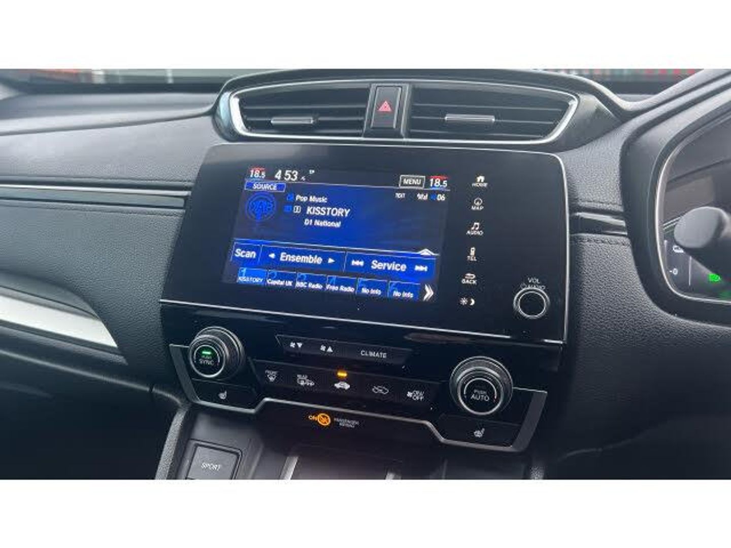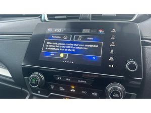 Front windscreen de-icer, Rear privacy glass, Electric front windows/one touch facility, Rain sensor, Rear wiper, Electric rear windows + one touch facility, Auto wipers, ABS/EBD, Brake assist function, Emergency stop signalling system, Hill start assist, Electronic parking brake with auto hold, Collision mitigation braking system, Vehicle stability assist, Drive mode (Econ, Sport, EV), Bluetooth hands free telephone connection, E-call, Adaptive cruise control, Forward collision warning, Traffic sign recognition, Road departure mitigation, Low speed following, Agile handling assist, Rear view camera, Electric power steering, Paddle shift controls, Lane departure warning system, Lane keep assist system, Speed limiter, Front parking sensors, Intelligent multi info display, BLIS (Blind Spot Information System) with dual power heated blind spot mirrors, Honda CONNECT with GARMIN Navigation + 7" touchscreen, DAB radio, Apple CarPlay, Android Auto