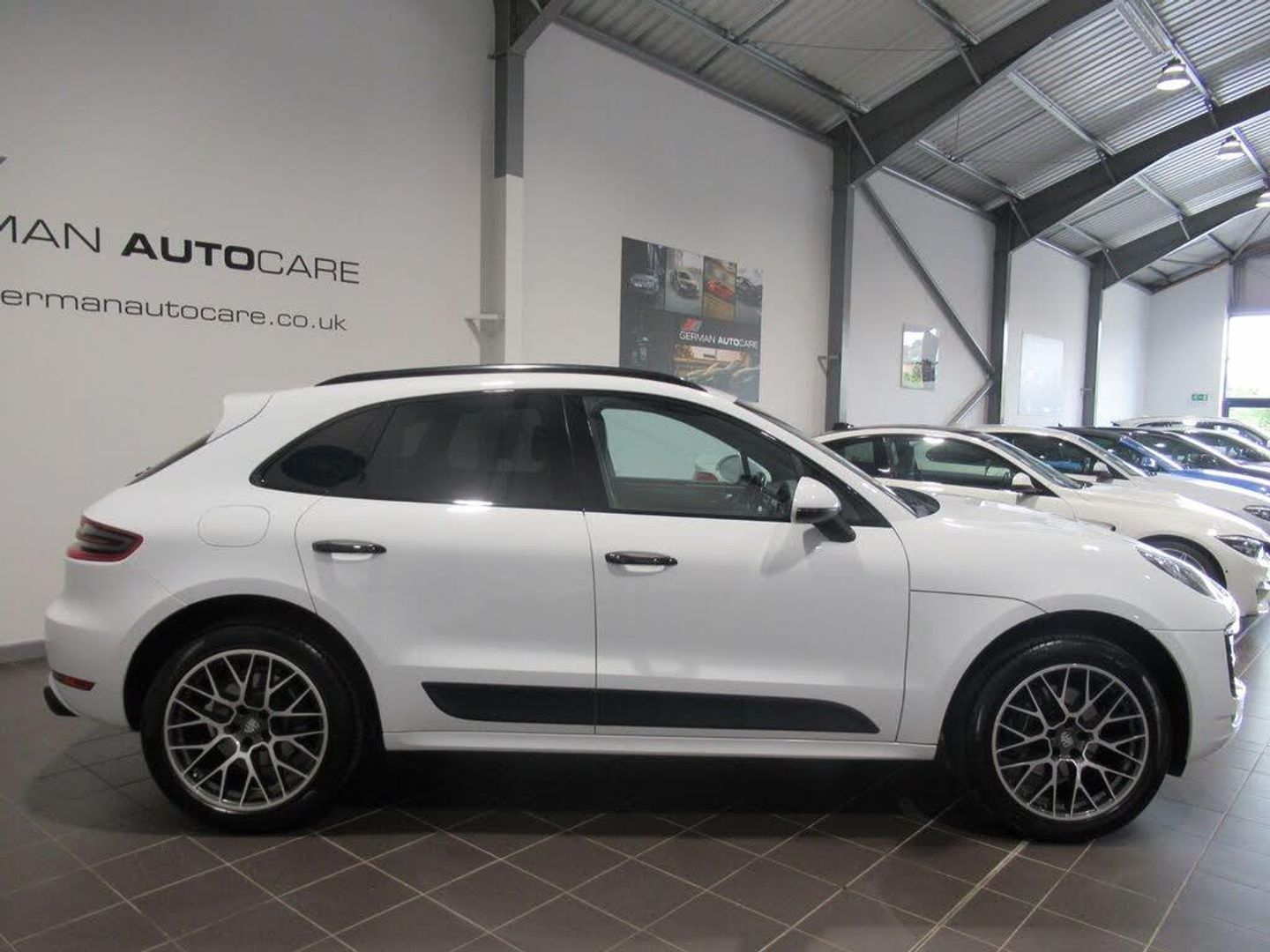 18in Alloy Wheels - Macan, 8-Way Power Seat on the Driver and 6-Way Manual Adjustment on the Passenger Seat, Accent Trim in Silver-Coloured Finish, Active Radiator Grille Shutters, Alarm and Engine Immobiliser with In-Key Transponder - Two-Stage Locking, Auto-Hold Function, Automatic Headlight Activation including Welcome Home Lighting, Automatic Rear Hatch, Bench Seat in Rear with Two Comfort Seats Outside Left and Right and a Centre Seat, Black Interior Package, Bottle Holders in Door Panels - Front and Rear, Brake Calipers - Black, Bumpers Comprising High-Strength Cross Members and Two Deformation Elements Each with One Threaded Fixture Point for Towing Eye Contained in On-Board Tool Kit, Climate Control - Three Zone, Clothes Hooks on the B-Pillars, Coasting Function, Combination Floating Calipers at Rear, Connect Plus, Cruise Control, Curtain Airbags for Cover Across the Entire Roof Frame and Side Glazing from the A-pillar to C-pillar, Digital Radio, Electric Parking Brake, Electric Windows - Front and Rear - Remote Closing Function - Anti Trap Protection and One Touch Operation, Electrically Adjustable and Heated Electrically Folding Exterior Mirrors - Aspherical on Drivers Side, Fixed - Removable Luggage Compartment Cover, Floor Mats, Fog Lights Integrated into Front End, Folding Front Centre Armrest - with Fore-Aft Adjustment, Four-Way Headrests - Front, Four-piston Aluminium Monobloc Fixed Brake Calipers at Front, Front Apron with Integrated Air Inlets, Front Fog Lights, Front Light Units with Position Lights and Direction Indicators with LED Guide Technology, Full Size Airbags for Driver and Front Passenger, Headlights - Halogen, Heated Rear Window with Auto-Off Function, High-level Third Brake Light - LED Integrated into Roof Spoiler, ISOFIX Mounting Points for Child Seats on Outer Rear Seats, Instrument Cluster with High-Resolution 4.8in Colour Display - Gear Indicator - Service Interval Display - External Temperature Indicator - Fuel Gauge and Various Warning Displays, Integrated Cluster of Three Round Instruments, Interior Lighting Concept, LED Tail Lights with Adaptive Brake Lights, Lane Departure Warning, Loading Edge Protection in Aluminium, Multi-Collision Brake, Multifunction Sports Steering Wheel with Shift Paddles - Steering Wheel Rim in Smooth-finish Leather, Navigation Module for Porsche Communication Management - PCM, Non-Smoker Package, Off Road Button, On-Board Computer, PORSCHE Logo and Model Designation on Rear Hatch in Chrome Look, PSM - Porsche Stability Management, PTM - Porsche Traction Management, Particle-Pollen Filter with Active Carbon Filter, Passenger Airbag Deactivation Function for Mounting Child Seats including Display in Overhead Console, Porsche Car Connect Including Porsche Vehicle Tracking System Plus - PVTS Plus, Porsche Communication Management - PCM, Porsche Hill Control - PHC, Power Steering, Preparation for Towbar System, Rear Armrest with Two Integral Cupholders, Rear Screen Wiper with Intermittent Wipe and Washer Jet, Rear Seats with Separately Folding Bench Seat - 40-20-40 and Folding Centre Armrest, Recommended Gear for Optimum Fuel Economy Displayed in Manual Gearshift Mode, Remote Central Locking, Rollover Detection System Enabling Early Deployment of Curtain Airbags and Seat Belt Pretensioners, Roof Lining in Fabric, Roof Spoiler in High-Gloss Black, Round Instrument with Black Rev Counter, Seat Belt Pretensioners and Force Limiters - Manually Adjustable Seat Belt Height - Reminder Warning, Side Airbags at Front - Integrated in the Seat, Side Window Trims in Matt Black, Side-Impact Protection Beams, Sideblades - Lava Black, Sound Package Plus, Sport Mode Button, Steel Spring Suspension, Storage Compartments in the Interior, Three Point Automatic Seat Belts, Three Sockets - 12-Volt - Centre Console in Front - in Centre Console Storage Compartment and in Luggage Compartment, Tinted Thermally Insulated Glass All Round, Two Single Tailpipes in Matt Silver on the Outer Left an