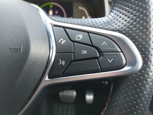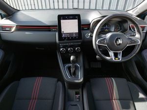 7" TFT colour instrumental display, Easy link navigation with 9.3" touchscreen+4x20W amplifier+FM DAB double tuner, sound auditorium, 2xUSB/1xjack/bluetooth, smartphone integration plus, E-call, Eco mode driving function, Front parking sensors, Rear view camera, Rear parking sensors, E-TECH battery, Automatic headlights, Full LED front and rear headlamps integrating daytime running lights at the front and rear, RS marker chrome gun metal grey sport rear bumper with chrome oval exhaust pipe, Auto climate control, Cruise control + speed limiter, Air recirculation control, Parking Pack - Clio, Hands free key card with push button, start and stop function, 17" RS diamond cut alloy wheels
