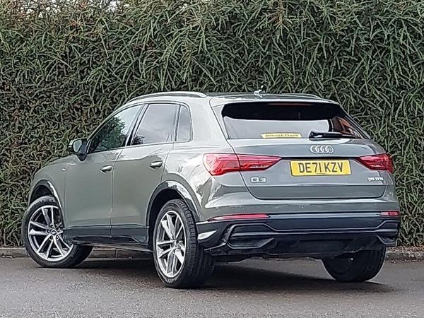 Amazon alexa Integration, Audi connect safety and service (e-call), Audi drive select, Audi lane departure warning, Audi Virtual Cockpit - 10.25" display, Bluetooth interface, Camera based traffic sign recognition, Cruise control + speed limiter, MMI Navigation Plus with high resolution 10.1 inch touchscreen colour display, Power operated tailgate, Rear parking sensors, Start stop system with recuperation, Smartphone interface includes wireless Apple carplay/Android Auto, Voice control system with natural language interaction, DAB digital radio module, Electrically folding, adjustable and heated door mirrors with integrated LED side indicators and kerb view function for passenger side, LED headlights with LED daytime running lights and dynamic rear indicator, Privacy glass dark tinted rear and rear-side windows (from B-pillar backwards), Dual zone electronic climate control, Black styling pack - Q3, Non smoking pack - Q3, Electromechanical parking brake, Hill hold assist