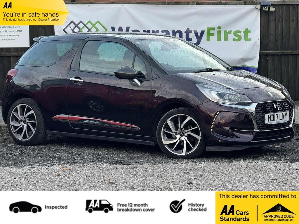 FRESH TO THE MARKET TODAY IS THIS STUNNING DS3!!! INCREDIBLE VALUE CAR WITH FULL SERVICE HISTORY INCLUDING CAMBELT REPLACEMENT, NO OUTSTANDING RECALLS, X2 KEYS AND HAS AN AMAZING SPEC! THIS DS3 HAS ONLY COVERED A GENUINE 67,000 MILES FROM NEW AND HAS BEEN WELL KEPT AND COMES COMPLETE WITH FULL-SERVICE HISTORY INCLUDING CAMBELT REPLACEMENT. AN ABSOLUTE CREDIT TO ITS FORMER KEEPER, PRICED TO SELL, ONCE THIS INCREDIBLE VALUE CAR IS GONE, ITS GONE!!, To come with 12 months MOT and a full service and 145-point PDI. For added piece of mind included with the car is 6 months Comprehensive Warranty and 12 months AA Roadside Assistance! Absolutely spot on with no mechanical or electrical faults very tight and smooth everything works as it should. Well, cared for example! , Amazing spec featuring; Bluetooth Handsfree and Media Streaming with 1A USB Socket,DAB Digital Radio,DS Connect Box Emergency and Assistance System,HiFi System Audio Upgrade,Mirror Screen with Mirror Link and Car Play,RDS Radio with 6 Speakers and AUX Socket,eMyWay Satellite Navigation,12 Volt Socket in Cabin,7in Touchscreen,Cruise Control with Speed Limiter,Exterior Temperature Display,Front Parking Sensors,GEI - Gear Efficiency Indicator,Multi-Function On-Board Trip Computer,Rear Parking Sensors,Rev Counter,Tyre Pressure Monitor,Chrome DS Wings Grille,Chrome Door Handles,Chrome Front Fog Light Surrounds,Chrome Rear Bumper Insert,Chrome Side Rubbing Strips,Dark Tinted Rear Windows,Electrically Heated and Folding Door Mirrors,Front Electric Windows,Locking Wheel Bolts,Rear Spoiler,Roof Colour Painted Door Mirrors,Single Chrome Exhaust Tailpipe,Space Saver Spare Wheel,17in Alloy Wheels - Aphrodite Black Diamond-Cut,Automatic Lights and Windscreen Wipers,DS LED Vision - Xenon Headlights,LED Daytime Running Lights,LED Front Fog Lights,3D LED Rear Lights,Auto Dimming Electrochrome Rear View Mirror,Automatic Air Conditioning,Black Panel On-Off Instrument Lighting,Boot Lighting,Drivers and Passengers Sunvisor with Courtesy Mirror,Front Courtesy and Reading Lights,Front Door Pockets with Bottle Holder,Front Seat Back Pockets,Gloss Black Centre Console and Interior Door Handle Surrounds,Gloss Black Gear Knob,Gloss Black Kit - Gloss Black Dashboard Strip,Height and Reach Adjustable Steering Wheel,Height-Adjustable Drivers Seat,Height-Adjustable Front Passenger Seat,Integrated Air Freshener,Interior Mood Lighting,Lashing Eyes in the Boot,Leather Door Trim,Leather Handbrake with Chrome Insert,Premium Leather Steering Wheel Finish,Rear Split-Folding Seats,Satin Chrome Door Sill Protectors,Satin Chrome Gear Surround,Satin Chrome Steering Wheel Inserts,Soft-Touch Upper Dashboard,Sports Seats,Steering Wheel Mounted Controls,Aluminium Sports Pedals,Sport Suspension,Variable-Assistance Power Steering,Coloured Plip Key Insert,Driver-Front Passenger-Front Lateral and Curtain Airbags,Drivers Unfastened Seat Belt Warning,ESC - Electronic Stability Control,Five 3-Point Inertia Reel Seat Belts,Front Seat Belt Pretensioners,Hill Start Assist,Immobiliser,Remote Central Control Locking with Deadlocks,Two Rear ISOFIX Mounting Points,ABS - Anti-lock Braking System with Electronic Brakeforce Distribution and Emergency Braking Assistance,Active City Brake,Alarm, GIVE US A CALL TO ARRANGE A FRIENDLY HASSLE-FREE TEST DRIVE AND MEET OUR TEAM WHO WILL HELP YOU EVERY STEP OF THE WAY WITH YOUR NEXT CAR PURCHASE. WE ARE A FAMILY RUN COMPANY AND PRIDE OURSELVES ON OUR CUSTOMER SERVICE. WE CANT GUARANTEE ANY VEHICLE BUT WHAT WE CAN GUARANTEE IS OUR AFTER SALES SERVICE THAT IS SECOND TO NONE SO GIVE US A TRY - CUSTOMER SATISFACTION IS OUR PRIORITY ALWAYS. WE BELIEVE WE GO ABOVE AND BEYOND FROM YOUR INITIAL ENQUIRY,TO VIDEO OR MEETING UP,TO KEEPING YOU UPDATED AND TO THE DELIVERY/COLLECTION STAGE,BUT IT DOES NOT STOP THERE AS WE ARE WITH YOU THROUGHOUT YOUR WARRANTY PERIOD AND BEYOND AND WANT YOU TO TELL FRIENDS AND FAMILY .WE HAVE SO SO MANY PEOPLE REFERRING OR RETURNING WHICH PUTS A BIG SMILE ON ALL OUR FACES AS WE KNOW WE HAVE DONE A GREAT JOB INITIALLY. THANK YOU FOR READING AND PLEASE GIVE OUR COMPANY A TRY