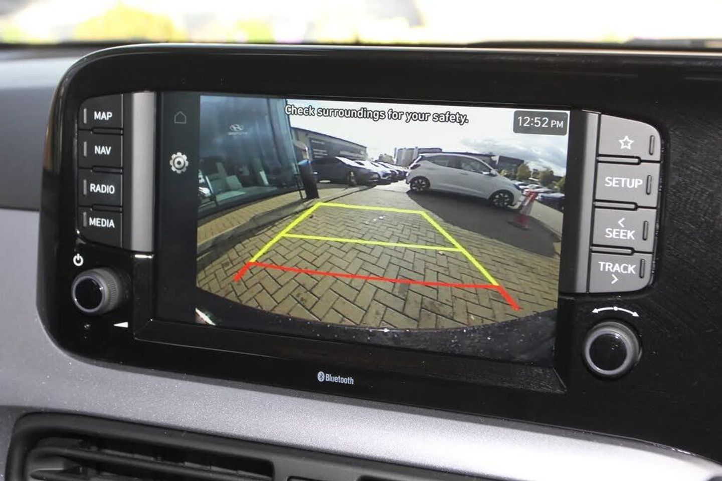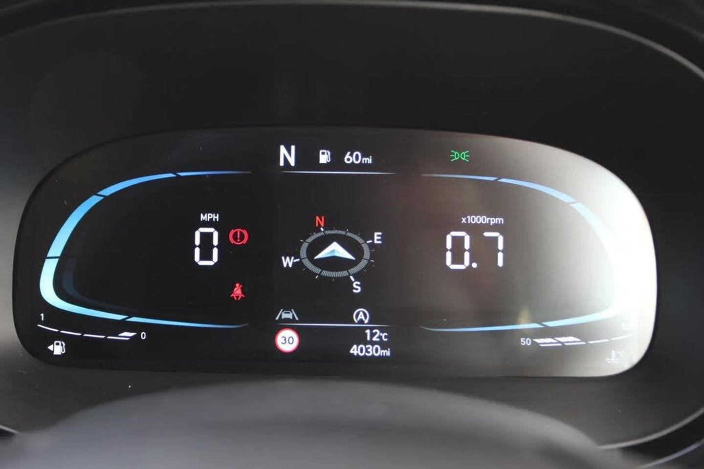 Apple car play/Android Auto,Bluelink mobile remote connectivity,Bluetooth connectivity with voice recognition,Cruise control,Driver attention alert system,eCall emergency call system,Forward Collision-Avoidance Assist (FCA) - Pedestrian/Cyclist,Front USB-C charging and USB-A data,Full-width 4.2" LCD instrument cluster,Intelligent speed limit assist,Lane departure warning system with lane keep assist - LKAS,Lane follow assist,PAS,Rear parking sensors,Rear view camera with guidelines,Roadside assistance,Start/Stop function,Tailgate,Trip computer,Wireless charging pad,2 front/2 rear speakers,Rear USB-C device charger,Steering wheel audio, phone and cruise controls,1 speed non intermittent rear windscreen wiper,Black finish on B pillars,Body colour door handles,Body coloured bumpers,Body coloured door mirrors,Electric folding door mirrors,Electric front windows,Electric rear windows,Electrically adjustable and heated door mirrors,Flat metal emblem,Front fog lights,Front grille in glossy black,Front intermittent wipers,Halogen bi-function headlights,Headlights inner with Black Blade design,Heated rear window,High beam assist,Indicator light on door mirrors,LED DRLs diamond mesh design,Privacy glass - Rear windows and tailgate,Rear roof spoiler with integrated LED brake light,Rear side wing doors,12v power outlet - front,3 seat bench in 2nd row,60/40 split folding flat to floor rear seats,Air conditioning,Auto light control,Bottle holders in front/rear doors + front centre console,Cabin and luggage compartment interior lighting,Cloth upholstery,Driver + passenger vanity mirrors,Driver's seat height adjustment,Driver/passenger sunvisors with ticket holders,Floor mats,Front door pockets,Front Head Restraints - Vertical and Horizontal Adjustment,Front LED blue mood lighting,Glove compartment,Heated front seats,Heated steering wheel,Height adjustable steering column,Isofix child seat preparation,Leather multifunction steering wheel,Rear door pockets,Single front passenger seat,Vertical adjustment rear head restraints,3x3 point rear seatbelts,Airbags - front, front side and curtain airbags,Anti-lock brake system (ABS),Autonomous emergency braking (AEB) with forward collision warning system,Brake assist function,Childproof rear door locks,Electronic stability control,Front and rear seatbelt reminder,Front seatbelt pretensioners,Hill start assist control (HAC),Passenger airbag deactivate switch,Traction control,Tyre pressure monitoring system,Immobiliser,Perimeter alarm,Rear occupant alert,Remote central locking,Second remote key,Smart key with motion sensor,Speed sensitive auto door locking,16" alloy wheels,Tyre repair kit