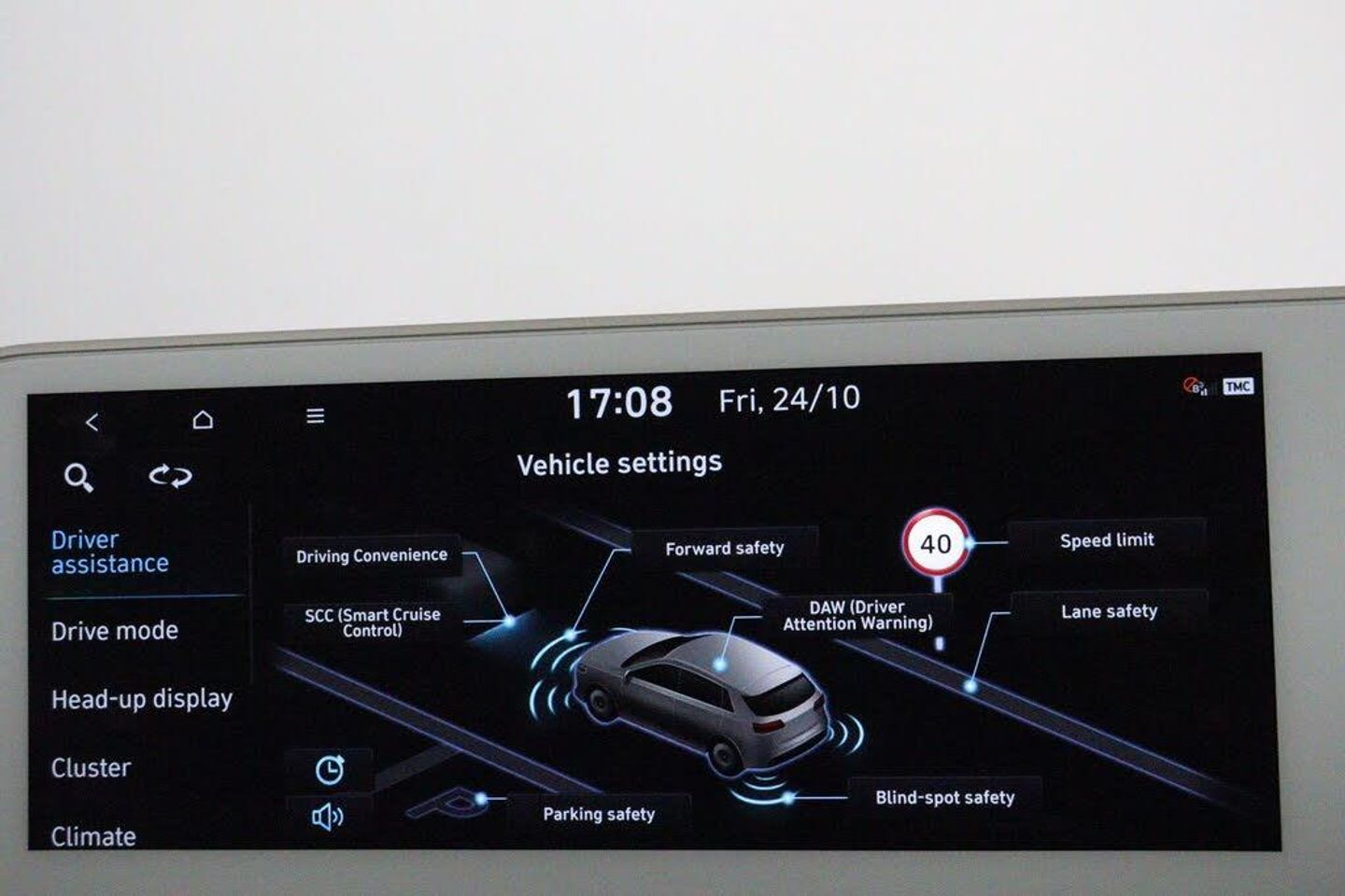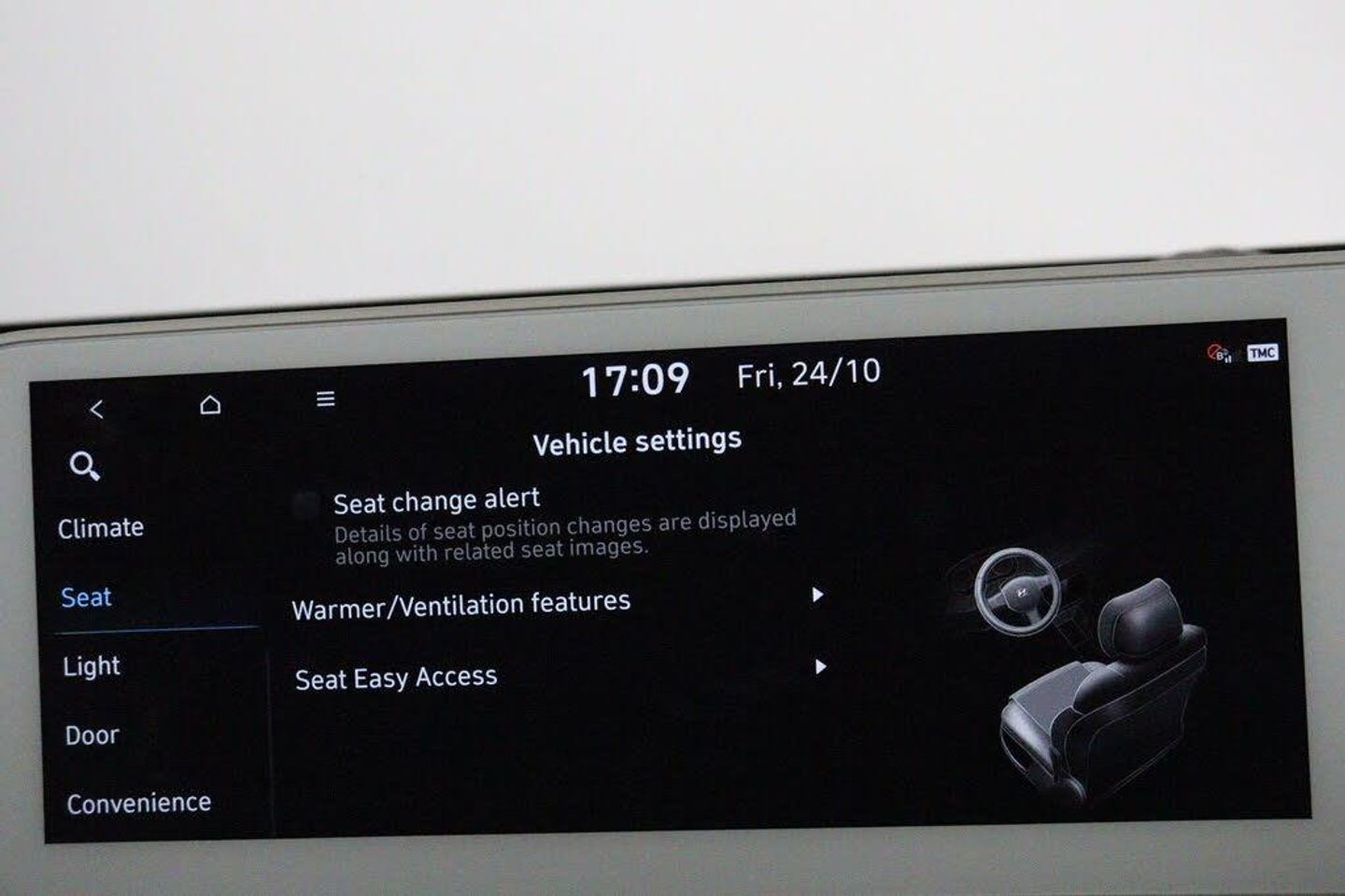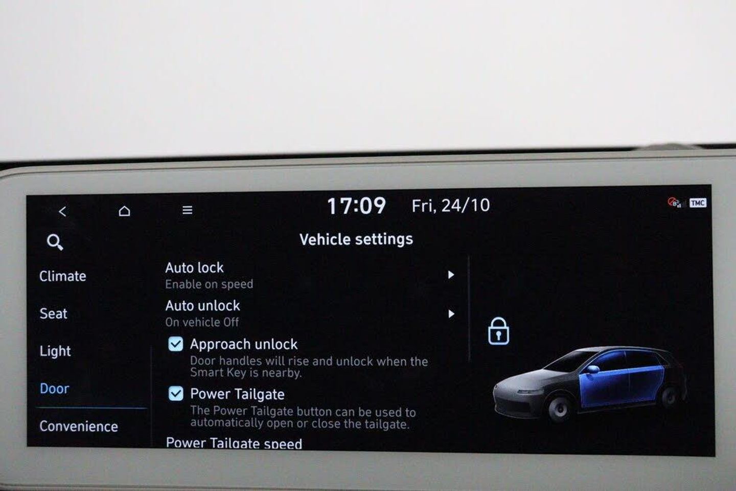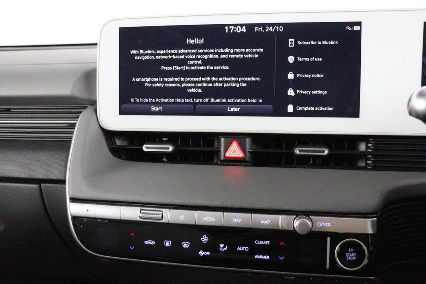12.3in Touchscreen Satellite Navigation and Media Centre, 12V Power Outlet - Front Console, 20in Alloy Wheels, A-B-C Pillar Trim - Cloth, ABS - Anti-Lock Brake System, Air Conditioning - Dual Zone Climate Control, Airbag - Front Passenger Deactivation Switch, Airbag - Front Thorax and Pelvis - Curtain, Airbags - Driver, Airbags - Front Centre Side, Alarm - Thatcham Category 1, Alloy Pedals, Alternator Management System - AMS, Automatic Windscreen Wipers with Rain Sensor, Blind Spot Collision Avoidance Assist, BlueLink, Bluetooth Connectivity with Voice Recognition, CCS Combo Rapid Charge Port - 50kW, Central Locking - Remote Control, Centre Console - Sliding, Charging Cable - 7 Pin Type 2, Charging Cable - Emergency 3 Pin Connector - ICCB, Childproof Rear Door Locks, Cup Holders - Front, Daytime Running Lights - LED, Digital Clock, Door Mirrors - Electric Adjustment - Folding and Heated, Door Mirrors - High Gloss, Door Scuff - Deluxe Plate, Drive Mode Select, Drivers Seat Height Adjustment - Electric, Drivers Seat Lumbar Support - Electric, Drivers Supervision Instrument Cluster with Full TFT Display - 12.3in, Dual LED Headlamps with Low-High Projection, Electric Parking Brake with Auto Hold Function, Electric Windows - Front and Rear with Anti-Trap Mechanism and One Touch Control, Electronic Stability Control - ESC, Exterior Door Handles - Body Coloured, Exterior Door Handles - Flush, Fog Lights - LED Rear, Forward Collision Avoidance Assist - Car - Pedestrian - Cycle, Forward Collision-Avoidance Assist - Junction Turning-Crossing, Front Passengers Seat Electric Adjustments, Front Passengers Seat Lumbar Support - Electric, Front Seat Back Pockets - Driver and Passenger Seat, Front Ventilated Seats, Frunk - Under the Bonnet Storage, Head Restraints - Vertical Adjustment - Second Row Outer, Head Restraints - Vertical and Horizontal Adjustment - Front, Head Up Display - HUD, Headlamp Surround, Headlights - Smart High Beam, Heated Front Seats, Heated Rear - Outer - Seats, Heated Steering Wheel, Highway Drive Assist - Level 2, Hill-Start Assist Control HAC, IONITY - Via Charge myHyundai App (1 Year Subscription From New), ISOFIX Child Seat Anchorage Points - Front Passenger Seat, ISOFIX Child Seat Anchorage Points - Rear - Outer Rear, Immobiliser, Indicator Lights - Door Mirror, Inside Rear View Mirror - Electrochrome, Intelligent Speed Limit Assist - ISLA, Interior Door Handles - Metal Paint Effect, Interior Light - Luggage Compartment, Interior Mood Lighting, LED Rear Combination Lights, Lane Follow Assist - LFA, Lane Keep Assist - LKA, Luggage Cover, Luggage Hooks, MapCare Programme - 3 Years of Map Updates, Parking Distance Warning - PDW - Forward-Reverse, Phone Connection - Android Auto, Phone Connection - Apple CarPlay, Positioning Lights - LED, Power Assisted Steering, Privacy Glass - Rear Windows, Rear Occupancy Alert, Rear Seats - Sliding, Rear Spoiler with Integrated LED Brake Light, Rear View Monitor with Dynamic Parking Guidance, Rear Windscreen - Heated and Privacy, Regenerative Brake Shift Paddles, Roof Trim - Cloth, Seatbelts - Height Adjustable Driver and Front Passenger, Side Body Moulding - Chrome, Side Sill Moulding - Anthracite, Smart Cruise Control with Stop and Go, Smart Electric Tailgate - Hands Free Opening Function, Smart Key - Keyless Entry with Engine Start-Stop Button, Speakers - BOSE Premium Audio - 7 Speakers - 1 Subwoofer, Split Folding Rear Seats - 60-40, Steering Column - Height and Reach Adjustable, Steering Wheel - Audio Controls, Steering Wheel - Leather, Sun Visors - with Driver and Passenger Illuminated Vanity Mirrors and Driver Ticket Holder, Tailgate - Up Lift Opening, Trailer Wiring Package, Tyre Pressure Monitoring System (TPMS) with Individual Tyre Pressure Warning, Tyre Repair Kit, USB Charging Ports - 2 Front, USB Connectivity Port - 1 Front, V2L - Vehicle to Load - Inside, V2L - Vehicle to Load - Outside, V2L Adaptor, Windows - Front and Rear - Laminated Glazing, Windscreen Auto Defog
