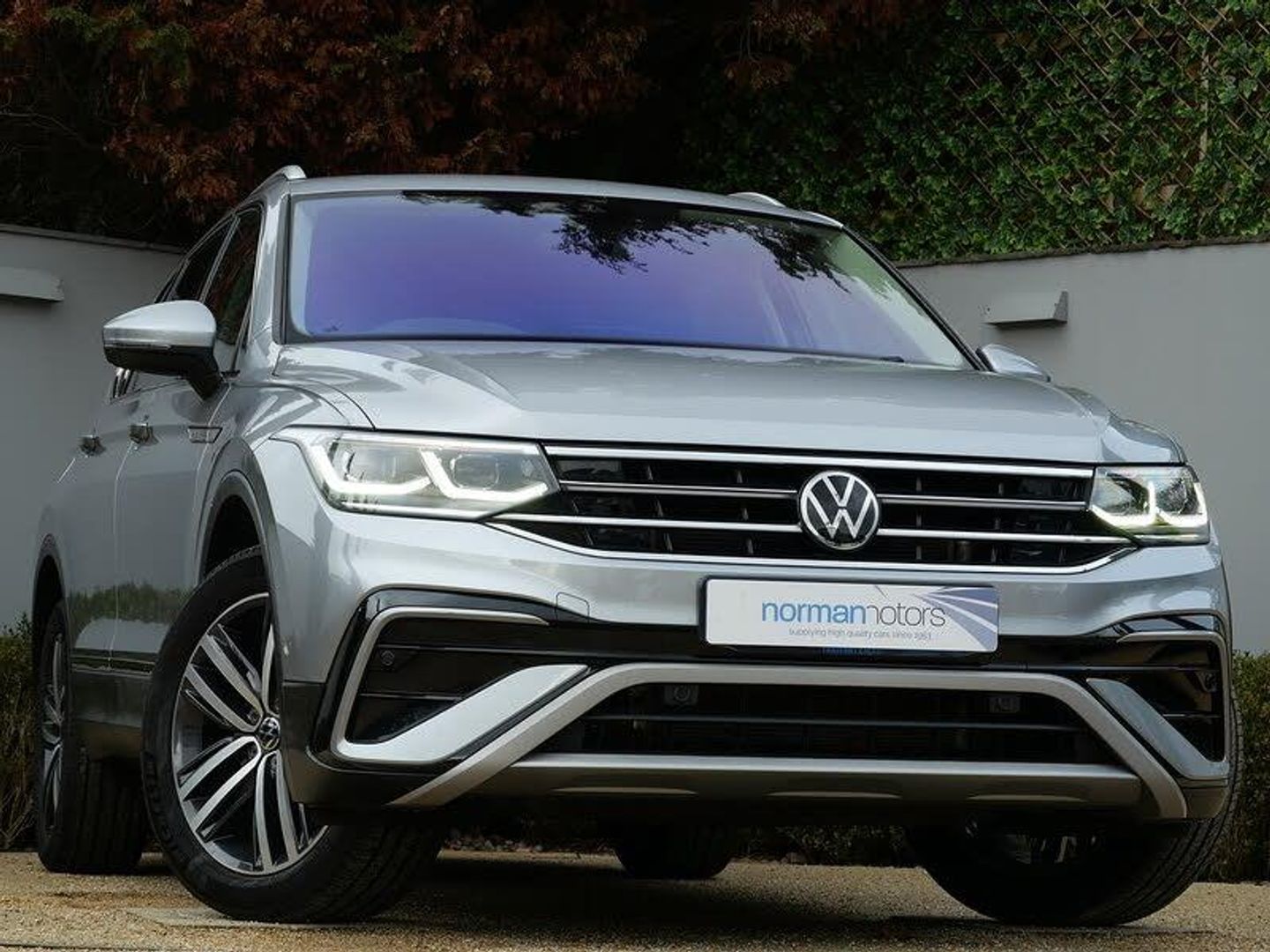 Norman Motors are proud to introduce this fantastic Volkswagen Tiguan Allspace 1.5 TSI Elegance which is equipped with Panoramic Sunroof & Rear View Camera. Only 1 owner from new with Full Volkswagen Service History (last serviced 22/05/2025 @ 21,128 miles). Presented here in Pyrite Silver Metallic with Heated Titanium Black Art Velours Upholstery. Features and upgrades include: 19" Auckland Dark Graphite Diamond Turned Alloy Wheels, Tilting and Sliding Panoramic Sunroof, Rear View Camera, Winter Pack, Heated Front Seats, Heated Steering Wheel, Apple CarPlay, Android Auto, Park Assist, Adaptive Cruise Control, Privacy Glass, Digital Cockpit Pro, Lane Assist, Electrically Foldable Door Mirrors, Ambient Lighting, LED Headlamps with LED Separate Daytime Running Lights, Electric Boot Lid, Climatronic 3 Zone Automatic Climate Control, Driver Assistance Pack, Discover Navigation, Mobile Phone Interface.If you have any questions regarding history, condition, or specification of this vehicle, please get in touch with a member of the sales team.