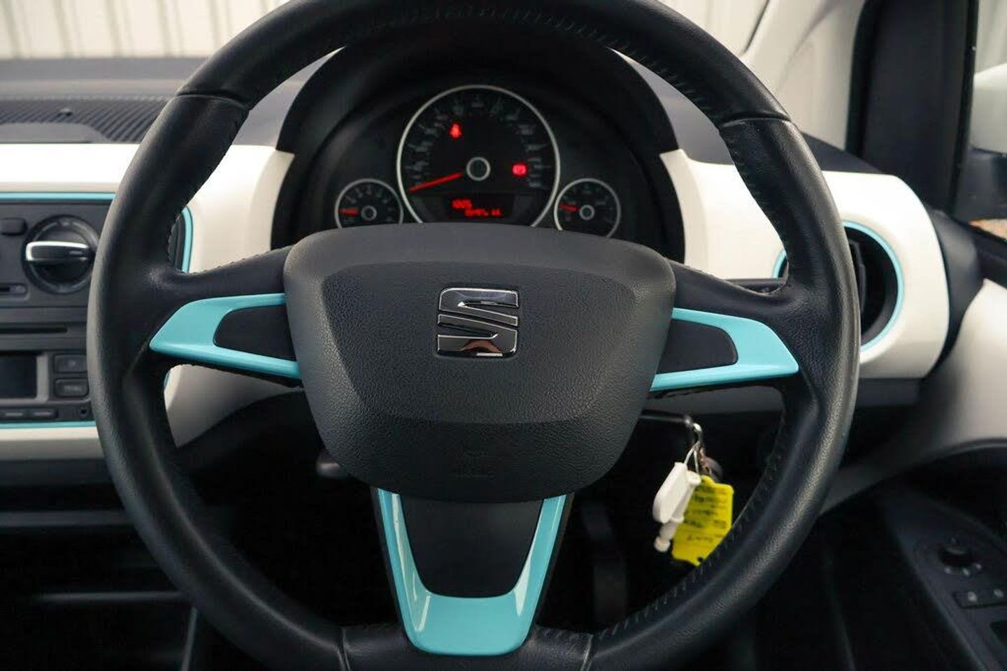 'Lights On' Reminder warning buzzer, 3 Button folding key with remote window opening/closing function, Digital clock, Electro - mechanical power assisted steering, Low fuel warning light, SEAT Portable Navigation system inc SD card slot, bluetooth connection with audio streaming, Service interval indicator, Trip computer, 6 speakers, Auxiliary input socket, MP3 Compatible CD player, Body colour door mirrors and handles, Body coloured bumpers, Electric front windows, Electrically adjustable and heated door mirrors, Heated rear window, Rear wash/wipe, Roof antenna, Tinted windows, 12V accessory power point in centre console, 2 height adjustable rear headrests, Air conditioning, Cloth upholstery, Driver/passenger sunvisors and vanity mirrors, Dust/pollen filter, Easy entry seats, Front/rear floor mats, Front/rear reading lights, Height adjustable steering wheel, Integrated head restraints, Isofix system on outer rear seats, Leather steering wheel and gear knob, Lockable glovebox, Parcel shelf, Electronic engine immobiliser, Locking wheel bolts, Remote central locking