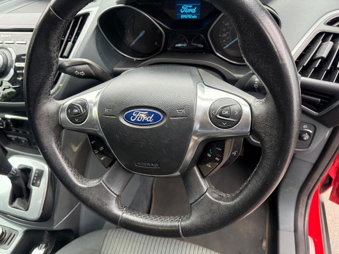 12V Power Socket - Front, 16in 10Spoke Alloy Wheels, 16in Alloy Wheels - 10 Spoke, ABS - Anti-lock Braking System, Air Conditioning - Dual Zone Electronic Automatic Temperature Control, Airbags - Front Passenger, Airbags - Front and 2nd Row Curtain, Airbags - Side Impact, Alarm - Thatcham Category 1 with Volume Sensing and Perimeter, Automatic Dimming Rear View Mirror, Automatic Rain Sensing Wipers, Auxiliary Power Socket, Brake Warning Lights - Automatic Flashing of Brake Lights Under Heavy Braking, Centre Console - Premium with Sliding Armrest Stowage Bins and 12v Front and Rear Sockets, Child Observation Mirror, Child Proof Rear Door Locks - Electric, Cruise Control with Adjustable Speed Limiter, DDS - Deflation Detection System, Door Mirrors - Heated - Electric - Integrated Side Indicators - Body Coloured, Doors - Sliding Rear Passengers, Drivers Airbag, Drivers Seat Lumbar Support, EBA - Emergency Brake Assist, EBD - Electronic Brakeforce Distribution, Electric Windows - Front and Rear with One Touch Drivers, Enhanced Electronic Stability Programme, Floor Mats - Front Velour with Ford Logo, Ford Easy-Fuel Capless Refuelling System, Ford Power Engine Start-Stop Button, Front Fog Lights, Front Seat - Passenger Manual Height Fore-Aft Adjustment, Front Seat - Passengers Manual Lumbar Support Adjustment, Fuel Computer, Gear Knob - Leather, Headlights - Automatic, Headlights - Follow Me Home, Heated Front Windscreen, Hill Start Assist, IPS - Intelligent Protection System, Locking Wheel Nuts, Power Fold Door Mirrors, Power Steering, Rear Auxiliary Power Socket - 12V, Remote Central Locking, SatNav & DAB, Seat Back Trays - Folding, Seats - Drivers Manual Height and Fore-Aft Adjustment, Sony DAB Audio System, Sony DAB CD MP3 and USB, Sony DAB Radio & CD player, Steering Column - Rake and Reach Adjustment, Steering Wheel - 4 Spoke Leather Trimmed, Steering Wheel - Multifunction, TA - Traction Assist, Tonneau Cover, Tyre Repair Kit, Tyre inflation kit, USB Connection - iPod Connectivity