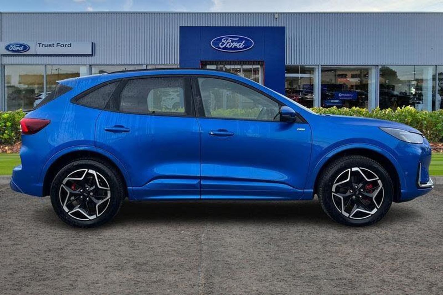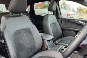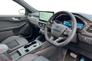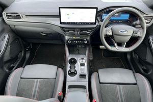12.3 digital colour instrument cluster, 360 degree camera, Clear exit assist, Cross traffic alert with active braking, e-Call (emergency call), Ford easy fuel, Ford SYNC 4 Navigation with 13 touchscreen, DAB radio, emergency assistance, Andriod Auto/Apple CarPlay, 5G modem & Ford Pass connect, Front and rear parking sensors, Hands free power tailgate, Lane centering assist, Lane keeping aid with lane departure warning, Power assist steering, Selectable drive modes, Service interval indicator, Auto headlamps with high and low beam, Black roof rails, Body colour bumpers, Front LED fog lamps, Large rear spoiler, LED daytime running lights, LED rear lights, LED third brake light, Pop out door edge protectors, Power front/rear windows with global close, Power heated folding door mirrors with puddle lights, memory function and camera, Power opening panoramic roof, Quickclear heated windscreen, Rain sensing wipers, Rear privacy glass, Rear side wing doors, Rear wiper, ST-Line body styling kit, 2nd row sliding seats, Electronic automatic temperature control (EATC), Front and rear head restraints, Partial premium touch sensico upholstery, Rear centre head restraint, Single front passenger seat, Sports seats, 3x3 point rear seatbelts, Airbags - front driver/passenger, front and rear curtain, Drivers knee airbag, Dynamic brake support, Electronic stability control (ESC) and ABS, Evasive steering assist, Ford MyKey Gen 2 safety system, Manual child proof rear door locks, Pre collision assist with autonomous emergency braking, Rear seat Occupancy alert, Red brake calipers, Tyre pressure monitoring system
