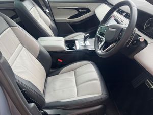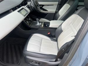 Grained Leather - Duo-Tone - Cloud-Ebony with Cloud-Ebony Interior, Nolita Grey, Privacy Glass, Fixed Panoramic Roof Including Powered Blind, 18in Alloy Wheels - Style 5075 - Sparkle Silver, 10in Touchscreen, 12-Way Driver and 10-Way Passenger Heated Electric Front Seats with 2-Way Manual Headrests and Rear Centre Armrest, 18in Alloy Wheels - Style 5074 - Sparkle Silver, 40-20-40 Folding Rear Seats, ABS - Anti Lock Braking System, ACC - Adaptive Cruise Control, ATPC - All Terrain Progress Control, All Season Tyres, Ambient Interior Lighting, Analogue Dials with Central TFT Display, Android Auto, Apple CarPlay, Approach Lights, Auto-Dimming Interior Rear View Mirror, Automatic Headlights, Bluetooth Connectivity, Body Coloured Roof, Brake Pad Wear Indicator, Bright Metal Pedals, Cabin Lighting, Carpet Mats, Chrome Treadplates, Customer Configurable Autolock, DAB - Digital Audio Broadcast, DSC - Dynamic Stability Control, Driver Condition Monitor, EBA - Emergency Brake Assist, EBD - Electronic Brake-Force Distribution, EPAS - Electronic Power Assisted Steering, ETC - Electronic Traction Control, Efficient Driveline, Electric Parking Brake, Electric Windows with One-Touch Open-Close and Anti-Trap, Emergency Braking, Evoque Badge, Flush Deployable Door Handles, Front and Rear Parking Aid, HDC - Hill Descent Control, Headlining - Ebony Morzine, Heated Electric Power Fold Door Mirrors with Approach Lights and Auto-dimming Driver Side, Heated Rear Window with Timer, Hill Launch Assist, Intrusion Sensor, LED Headlights, Lane Keep Assist, Leather Steering Wheel, Locking Wheel Nuts, Low Traction Launch, Manual Headlight Levelling, Manual Tailgate, Manually Adjustable Steering Column, Online Pack with Data Plan, Overhead Lighting Console, Overhead Stowage for Sunglasses, Passive Front Headrests, Passive Suspension, Pivi Pro - Connected, Power Operated Child Locks, Power Socket Pack 1, Push Button Start, R-Dynamic Exterior Pack, RSC - Roll Stability Control, Rain Sensing Windscreen Wipers, Rear Air Vents, Rear Animated Directional Indicators, Rear Centre Headrest, Rear Collision Monitor, Rear Fog Lights, Rear ISOFIX, Rear View Camera, Remote, Satin Chrome Gearshift Paddles, Seat Belt Reminder, Secure Tracker (12 Month Subscription From New), Six Airbags, Sound System, Standard Roof, Sun Visors - Illuminated Vanity Mirrors, TPMS - Tyre Pressure Monitoring System, TVBB - Torque Vectoring by Braking, Tailgate Spoiler, Terrain Response 2, Traffic Sign Recognition and Adaptive Speed Limiter, Trim Finish - Gradated Linear Dark Aluminium, Twin Sliding Front Centre Armrest, Two-Zone Climate Control, Windscreen - Heated, Windscreen Washer Jets - Heated, Wireless Device Charging