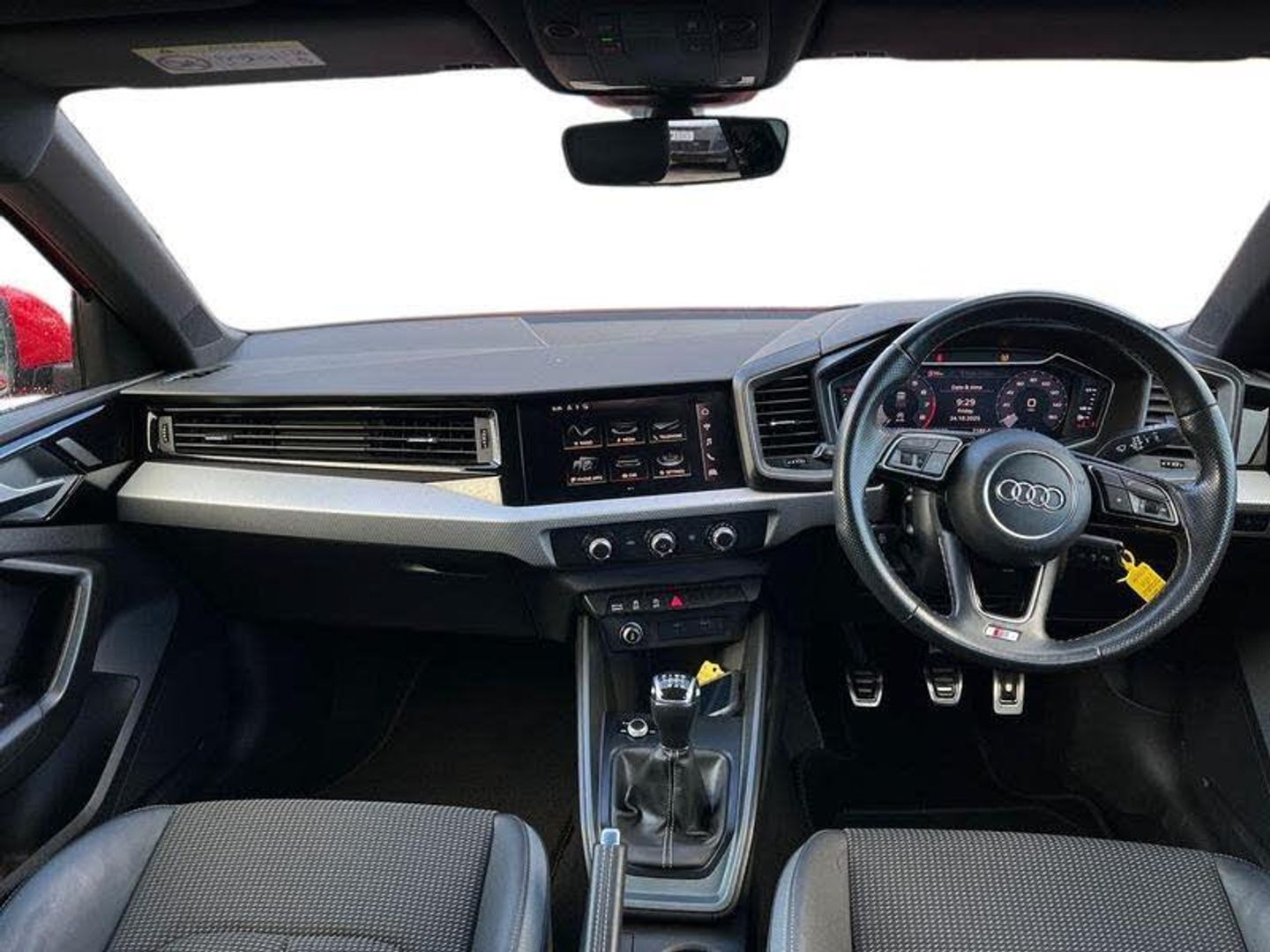 [Exterior]Auto dimming rear view mirror, Body coloured door mirrors, Door sill trims with aluminium inlays and S line logo in front, Electric front and rear windows, Electrically adjustable, heated, folding door mirrors with integrated LED side indicator, Front side air inlets in grained matt black and C frame in anthracite black, Headlight cleaning system, Heat insulating glass windscreen and side windows, Heated rear windscreen, High level LED brake light, LED daytime running lights, LED headlights with range control LED rear lights + dynamic rear indicators, Privacy glass, Radiator grille and rear diffuser in matt anthracite black, Radiator protective grille frame in matt aluminium silver, Rain and light sensors, Rear fog lights, Rear side wing doors, Rear wiper, S line badges on front wings, Side front spoiler lips in grained matt black[Interior]12V socket in centre console with two cup holders, 3 rear seats with headrests, 3 seat bench in 2nd row, 3 spoke leather multi-function plus steering wheel features S badging and grips in perforated leather with contrast stitching, 40:60 Split folding rear seat or fully collapsed, Black cloth headlining, Front and rear velour black floor mats with contrast stitching in fine silver, Front head restraints, Front passenger seat, Height and reach adjustable steering wheel, Interior lighting includes roof module, front and rear reading lights and right luggage compartment lighting, ISOFIX child seat mounting for front passenger and outer rear seats including top tether attachment point of outer rear seats, Leather gear knob with aluminium trim, Leather handbrake grip, Manual air conditioning, Manual height adjustable for driver and front passenger seat, Manually adjustable lumbar support in front seats, Stainless steel pedals[DriverConvenience]10.25 Digital instrument cluster display classis style instrument dials + speed, odometer, time, outside temperature, telephone menu + fuel level warning, Advanced driver attention and drowsiness monitor, Audi drive select, Audi remote connect and control, Audi smartphone interface, Bluetooth interface, Camera based traffic sign recognition, Cruise control, Driver's information system, Electromechanical power steering, Emergency e-call, Lane departure warning system, Rear parking sensor, Service interval indicator, Speed limiter, Start stop system with recuperation, Voice control system, Washer fluid level indicator[Safety]3x3 point rear seatbelts, Audi pre-sense front with pedestrain and cyclist recognition, Brake assist function, Driver and front passenger airbag with front side and head airbags, Electronic Stability Control including ABS, EBD, ASR and EDL, Front passenger airbag deactivation switch, Hill hold assist, Manual rear child locks, Seatbelt height adjustment for front seats, Seatbelt monitoring, Tyre pressure loss indicator, Warning triangle and first aid kit[Security]Anti theft alarm, Anti theft wheel bolts, Immobiliser, Remote control key with safelock