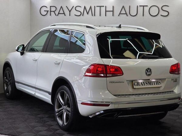 // Finance available // Best part-exchange price guaranteed // Extended warranties available //, Wow! Graysmith Autos proudly presents this HPI clear, Volkswagen Touareg R-Line Plus in timeless classic white a truly stunning example of luxury SUV motoring. This vehicle has very low mileage, a full service history, and is fully ULEZ compliant, offering the perfect combination of performance, refinement, and practicality. Every detail of this Touareg exudes quality and sophistication, from its commanding road presence to its premium interior. The specification is nothing short of exceptional, including:, Sliding panoramic roof with electric sun blind, 360 camera system, Front and rear parking sensors, Heated leather seats with electric adjustment, Heated steering wheel, Satellite navigation, Bluetooth & DAB radio, Cruise control, Automatic headlights and rain-sensing wipers, Power-operated electric tailgate, At Graysmith Autos, we take pride in offering cars prepared to the highest standards. Our fully equipped workshop, staffed by highly trained technicians, ensures every vehicle leaves us mechanically sound and road-ready. We offer a hassle-free, no-questions-asked warranty service as standard with all our vehicles. Enjoy a comfortable and convenient car-buying experience with indoor showroom viewings available in all weather conditions. Cant make it to our showroom? No problem! We sell cars unseen with delivery available nationwide. For your peace of mind, we can provide detailed videos of our vehicles to help you make an informed decision from the comfort of your home. Reserve your dream car today with our fully refundable reservation service, which takes the car off the market until your viewing. VIEWING BY APPOINMENT ONLY contact us to book your visit, request a video, or learn more. Call us today to find your perfect car!