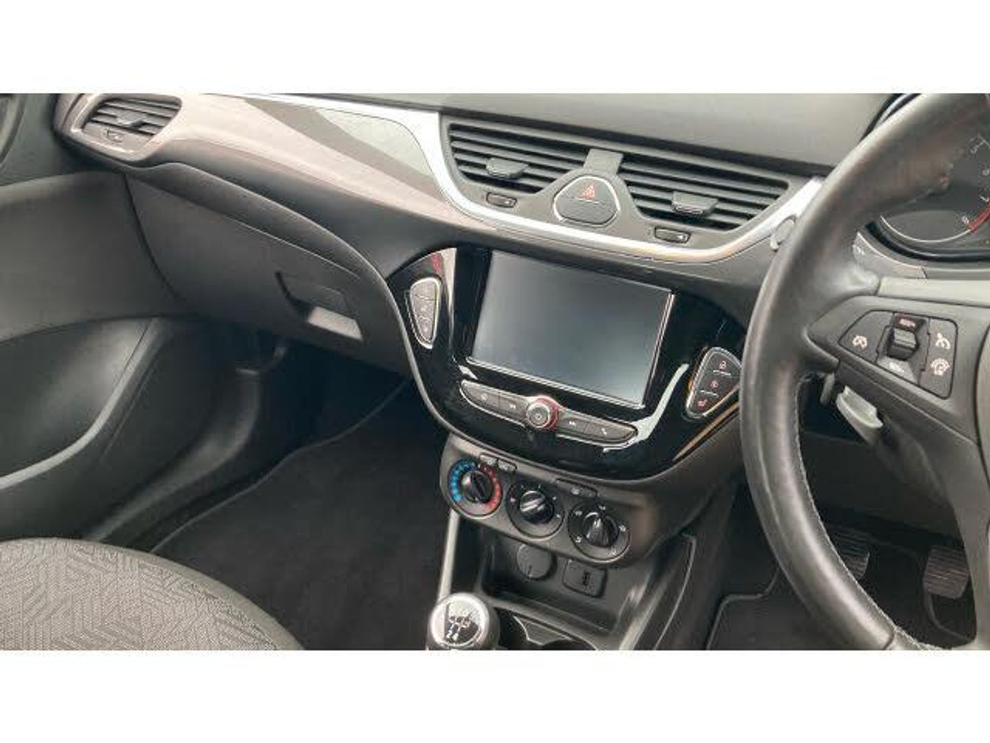 Velour floor mats, Side window demist vents, Electronic Stability Programme, Front anti roll bar, Apple car play/Android Auto, Electric speed sensitive power steering, Speedometer, Dipping rear view mirror, Rhutenium facia with chrome effect inserts, Steering wheel mounted audio/cruise controls, Black foil on B-pillars, Hazard warning lamps, Four adjustable facia vents, Cloth upholstery, Rear courtesy lights, Winter pack - Corsa, Energy absorbing steering column, Heated front seats, Visible vehicle identification number, Driver's vanity mirror, Low rolling resistance tyres