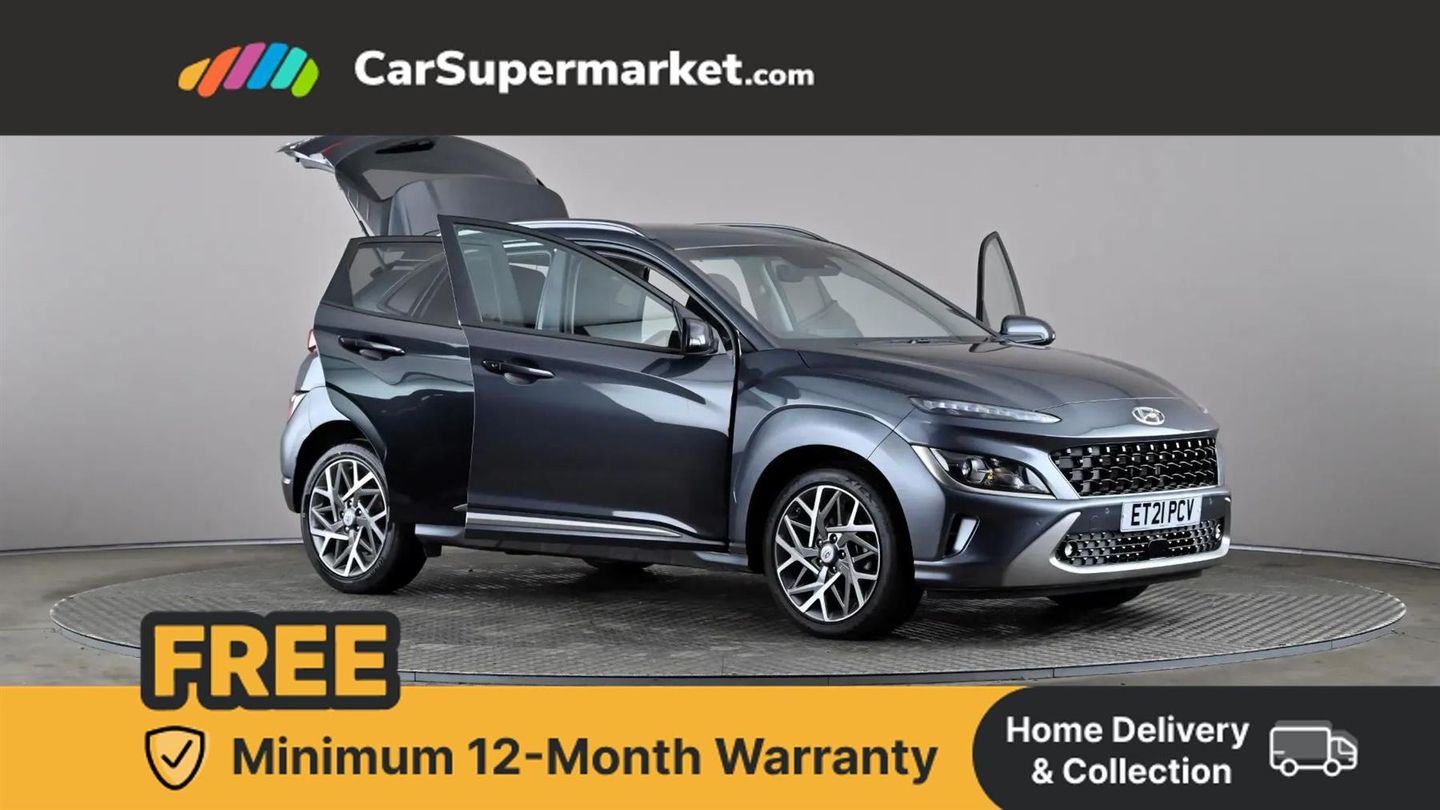 Sat Nav, Bluetooth, Apple CarPlay, Android Auto, Cruise Control, Wireless Phone Charging, Privacy Glass, Heated Front Seats, Heated Steering Wheel, Keyless Entry, 18" Alloy Wheels;This 2021 Hyundai KONA h GDi Premium offers exceptional value with its low mileage of just 25,417 miles, well below average for its age. This Euro 6 compliant hybrid petrol model boasts a 1.6 litre engine and comes with an MOT valid until July 2026, alongside a clear vehicle history check. Its last service was completed on 20th October 2025 at 25,094 miles. Inside, you'll find a host of convenient features including a wireless phone charging pad, heated front seats, and a heated steering wheel for those colder journeys. Automatic headlights with a dusk sensor and Bluetooth connectivity further enhance the driving experience.